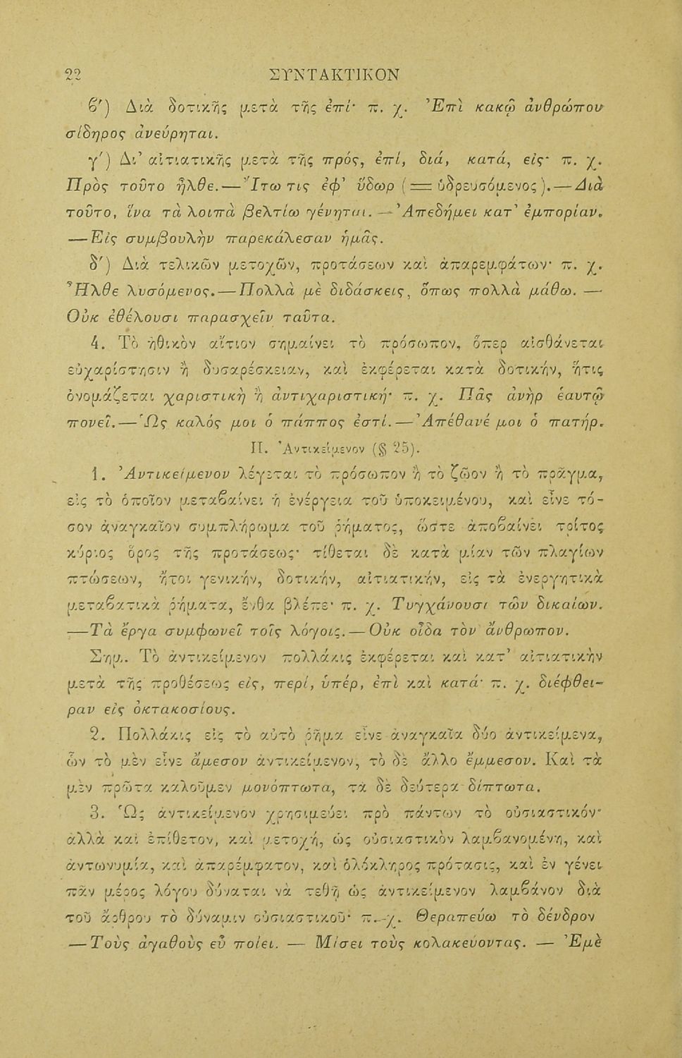 Σχολικό εγχειρίδιο Αρχαίων Ελληνικών για τους μαθητές των Ελληνικών Σχολείων και Παρθεναγωγείων που περιέχει τους συντακτικούς κανόνες.