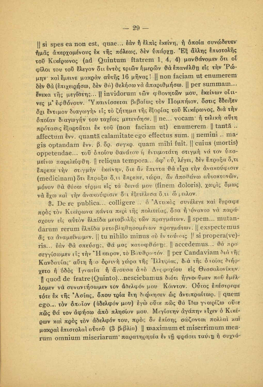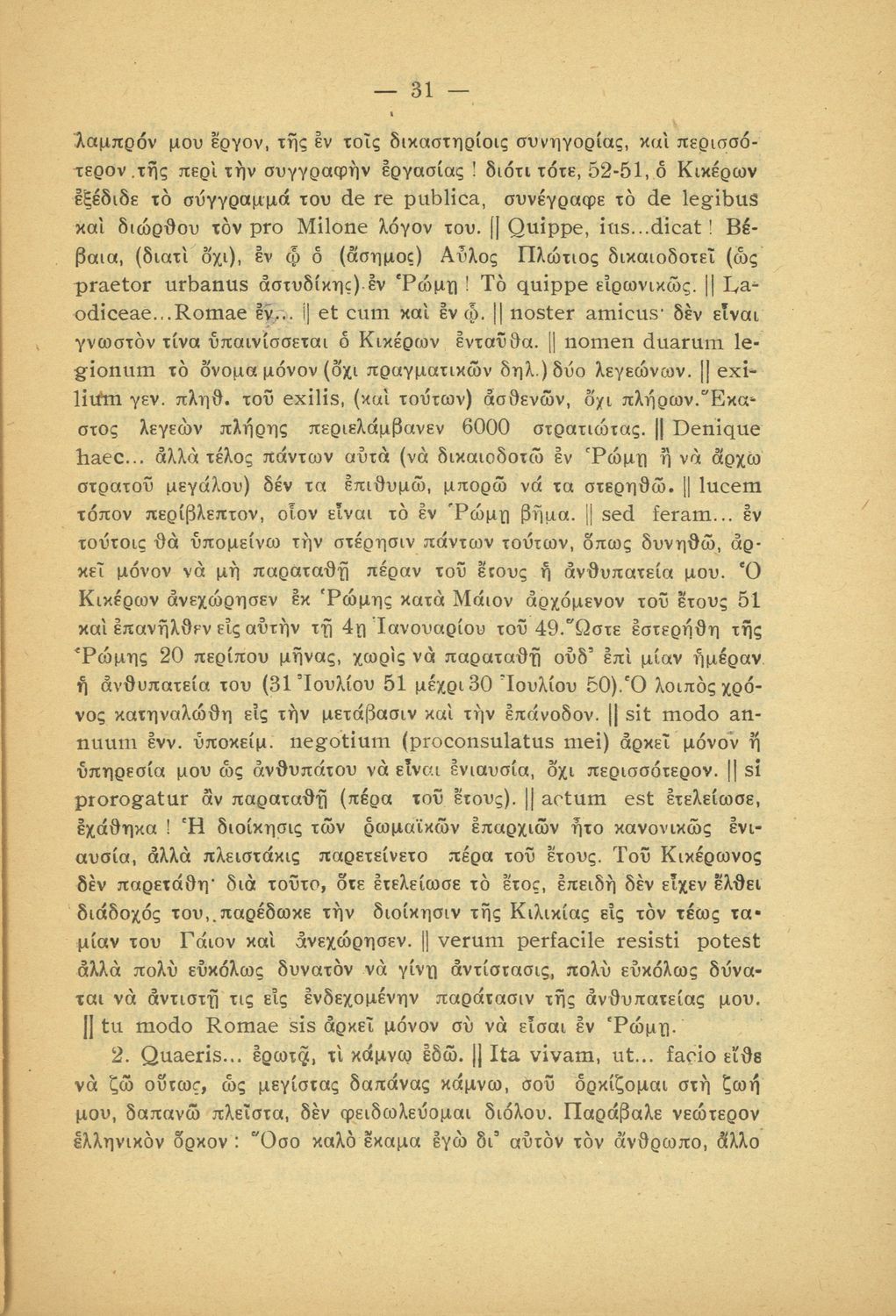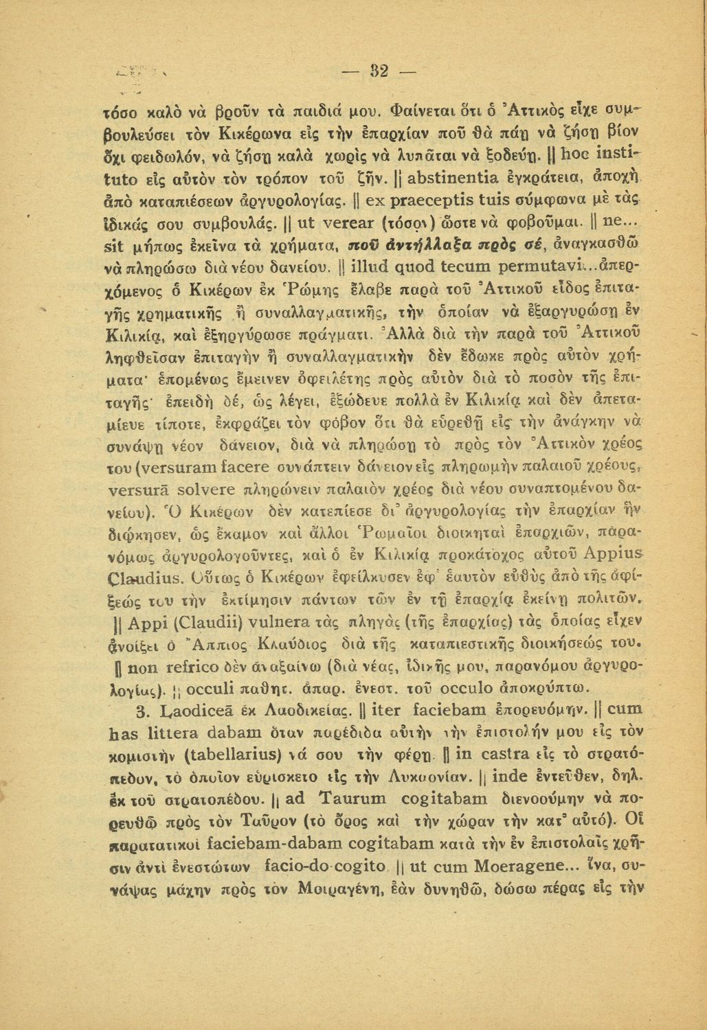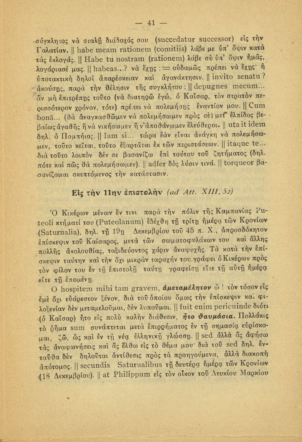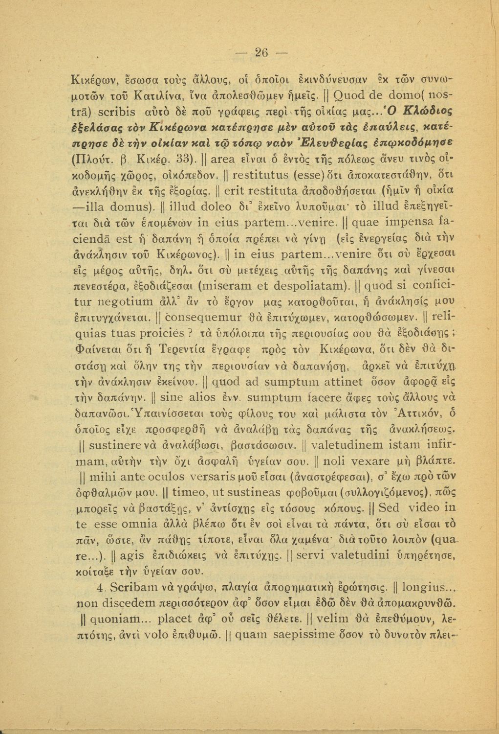 Σχολικό εγχειρίδιο Λατινικών για τη Γ΄ Γυμνασίου που περιέχει κείμενο, εισαγωγή στις επιστολές και σημειώσεις επί των επιστολών. Ο επιμελητής ήταν τακτικός καθηγητής της Λατινικής Φιλολογίας.