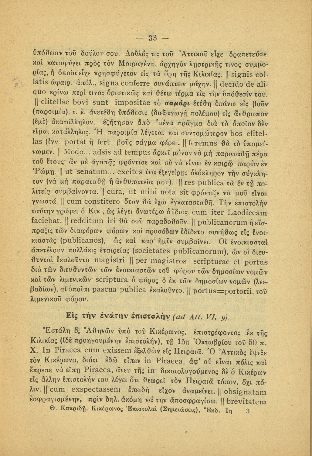 Μάρκος Τύλλιος Κικέρωνας (M. Tullius Cicero), Θεοφάνης Α. Κακριδής (σχόλια, σημειώσεις)