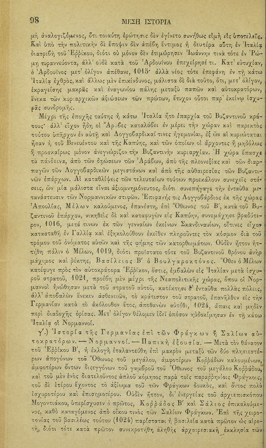 Τίτλος: Εγχειρίδιον της Γενικής Ιστορίας βιβλίον δεύτερον περιέχον την μέσην ιστορίαν