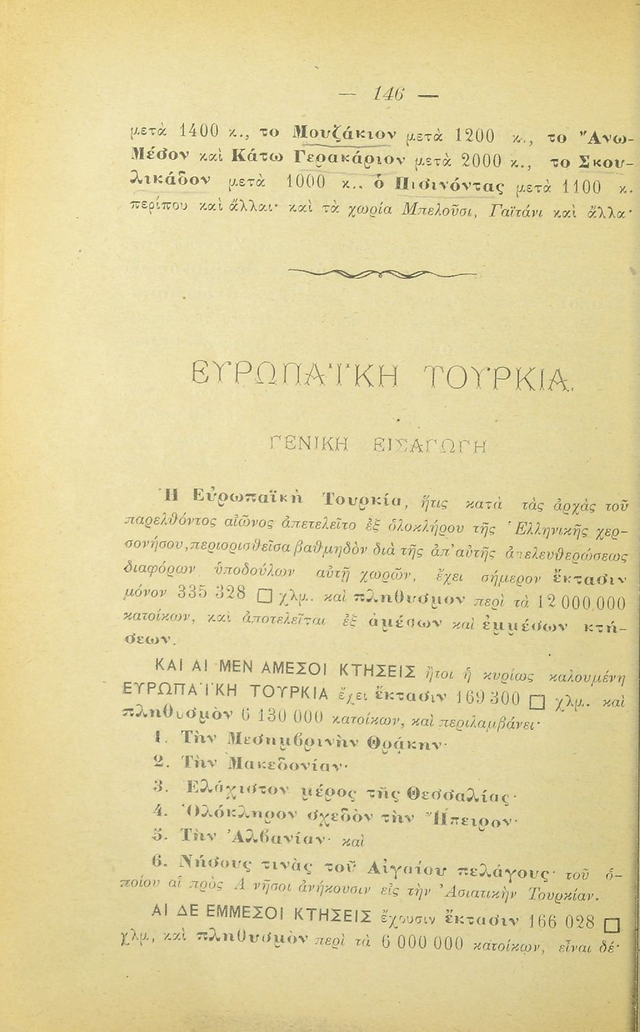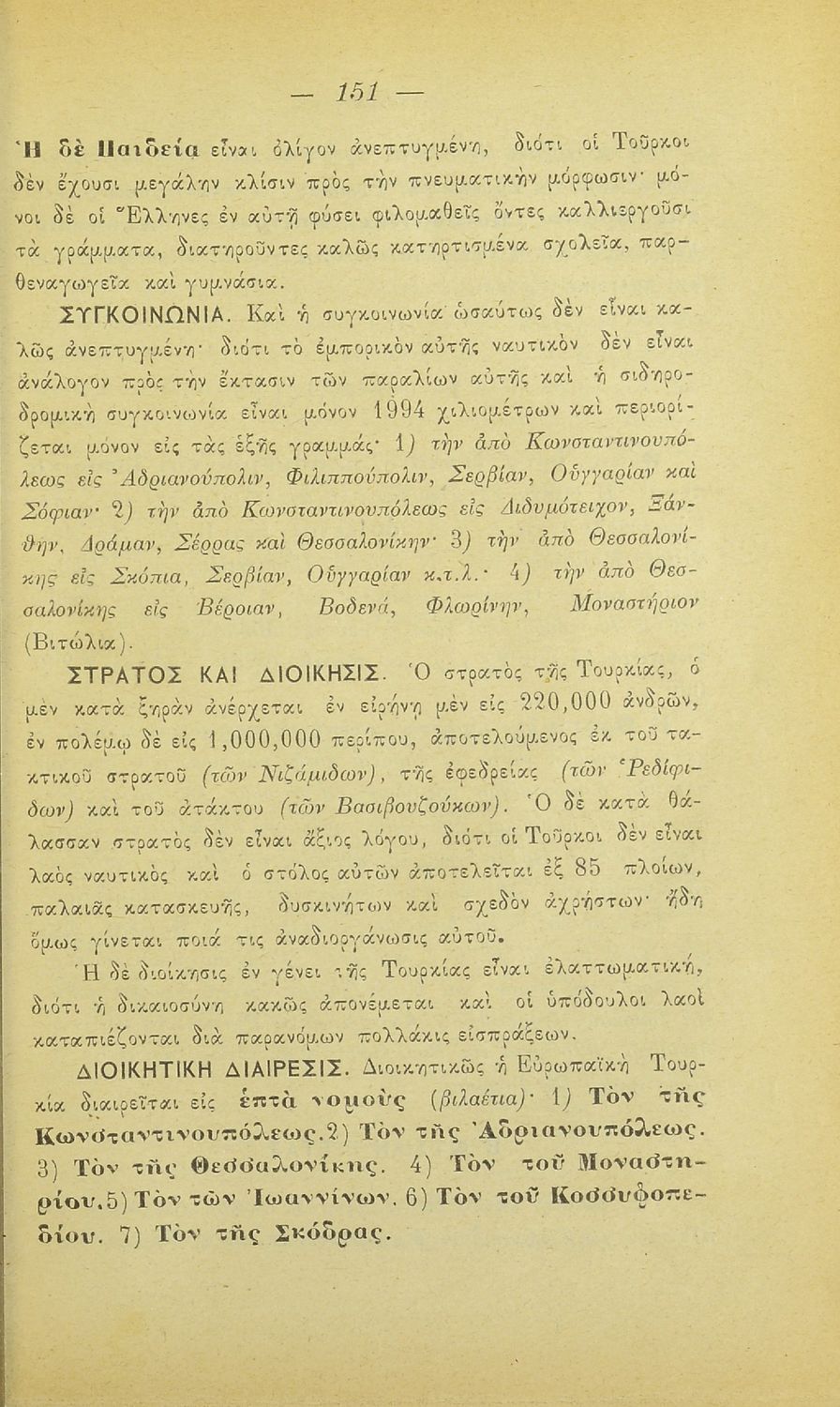 Σχολικό εγχειρίδιο Γεωγραφίας για Ελληνικά Σχολεία και Παρθεναγωγεία που περιλαμβάνει στοιχεία φυσικής, πολιτικής, πολιτισμικής και ιστορικής γεωγραφίας και εξετάζει ενδεικτικά κράτη και περιοχές από τις πέντε