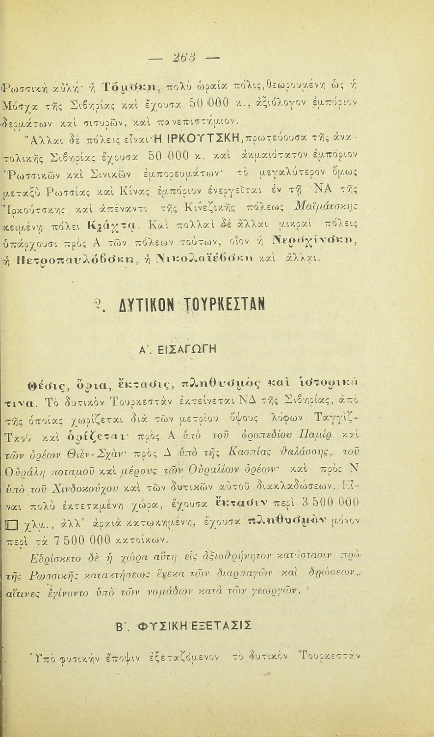 Σχολικό εγχειρίδιο Γεωγραφίας για Ελληνικά Σχολεία και Παρθεναγωγεία που περιλαμβάνει στοιχεία φυσικής, πολιτικής, πολιτισμικής και ιστορικής γεωγραφίας και εξετάζει ενδεικτικά κράτη και περιοχές από τις πέντε