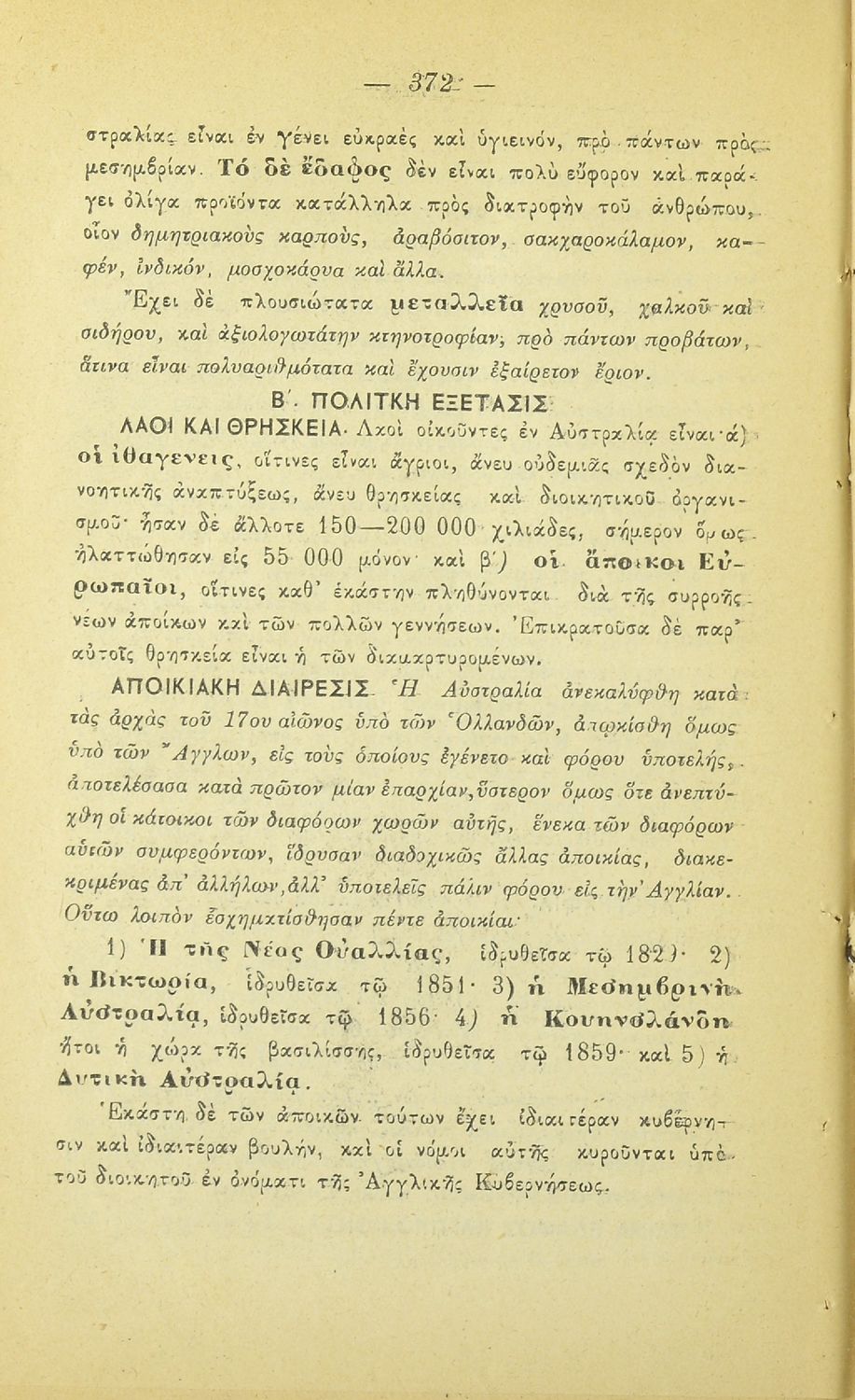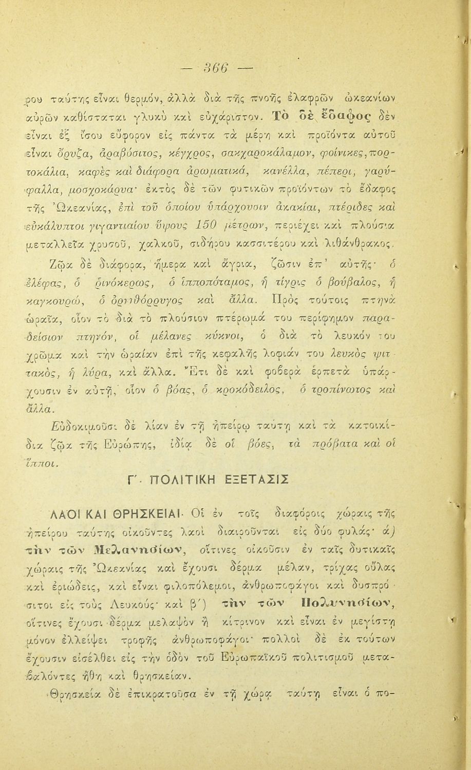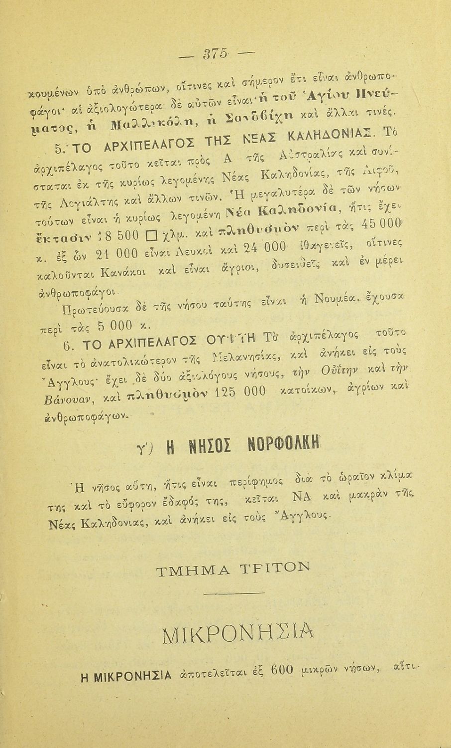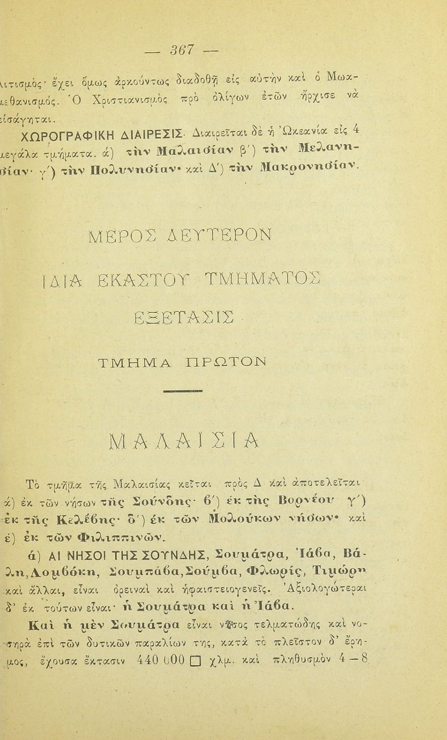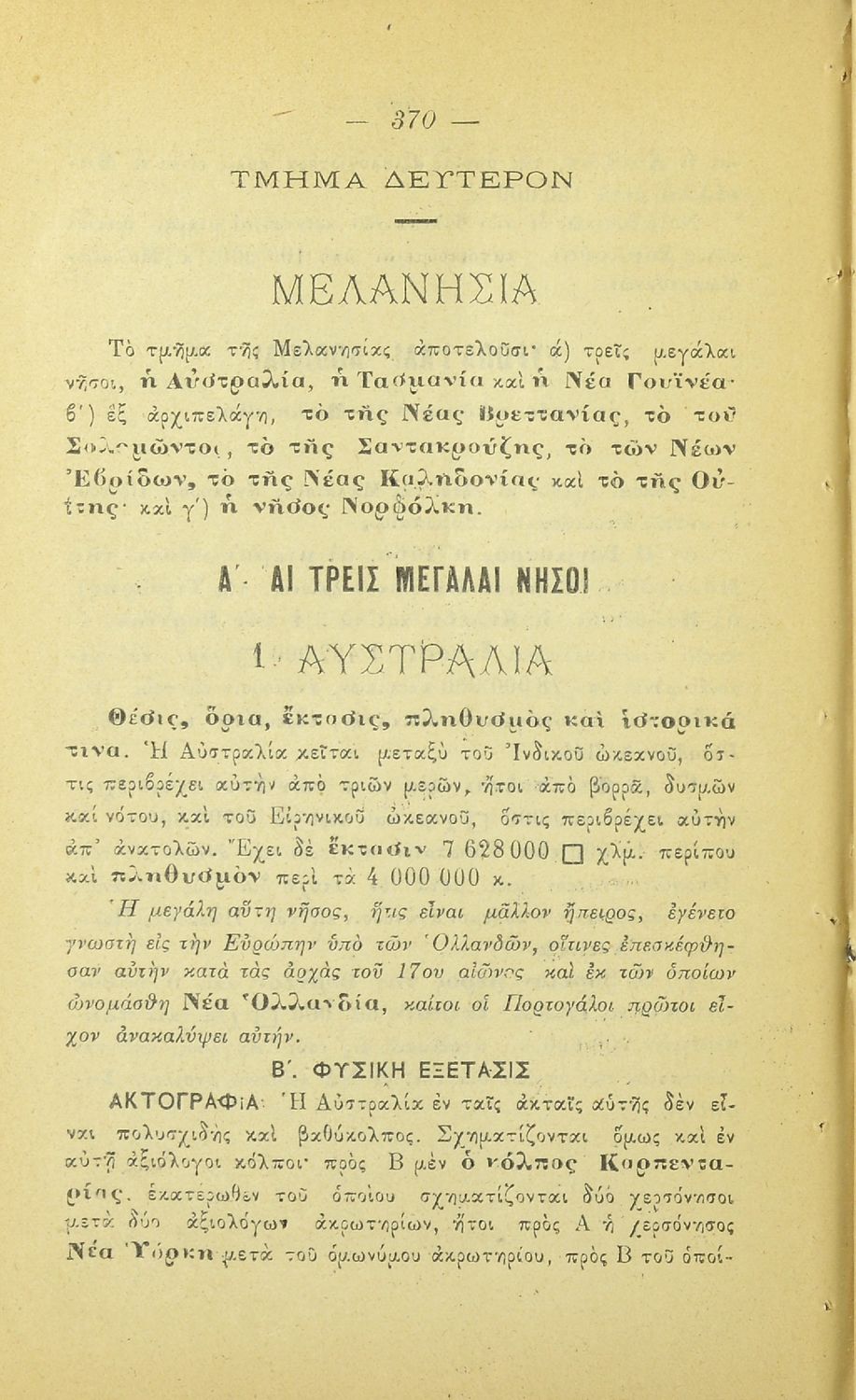 Σχολικό εγχειρίδιο Γεωγραφίας για Ελληνικά Σχολεία και Παρθεναγωγεία που περιλαμβάνει στοιχεία φυσικής, πολιτικής, πολιτισμικής και ιστορικής γεωγραφίας και εξετάζει ενδεικτικά κράτη και περιοχές από τις πέντε