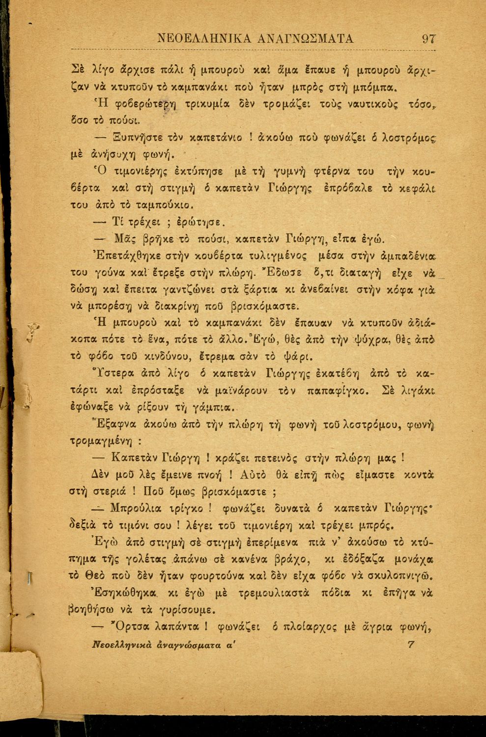 Σχολικό εγχειρίδιο Νέων Ελληνικών Γ' Ελληνικού και Α' Αστικού Σχολείου που περιλαμβάνει κείμενα Ελλήνων συγγραφέων εμπνευσμένα από την σύγχρονη ελληνική ιστορία, τη βυζαντινή ιστορία, την ελληνική φύση και τη ...