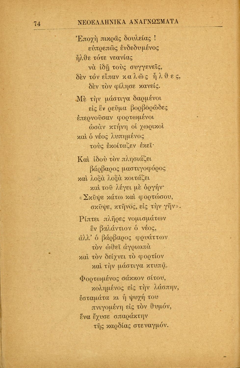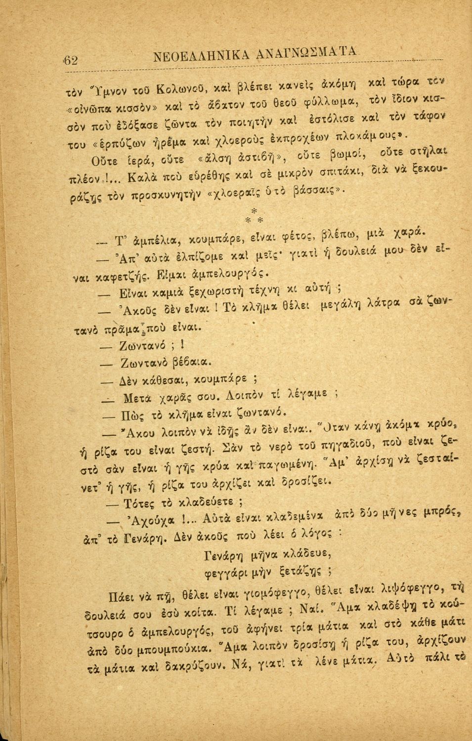 Σχολικό εγχειρίδιο Νέων Ελληνικών Γ' Ελληνικού Σχολείου και Α΄ Αστικού Σχολείου των Θηλέων που περιλαμβάνει ποιήματα και πεζά Ελλήνων συγγραφέων και δημοτικά τραγούδια εμπνευσμένα από την σύγχρονη ελληνική ...