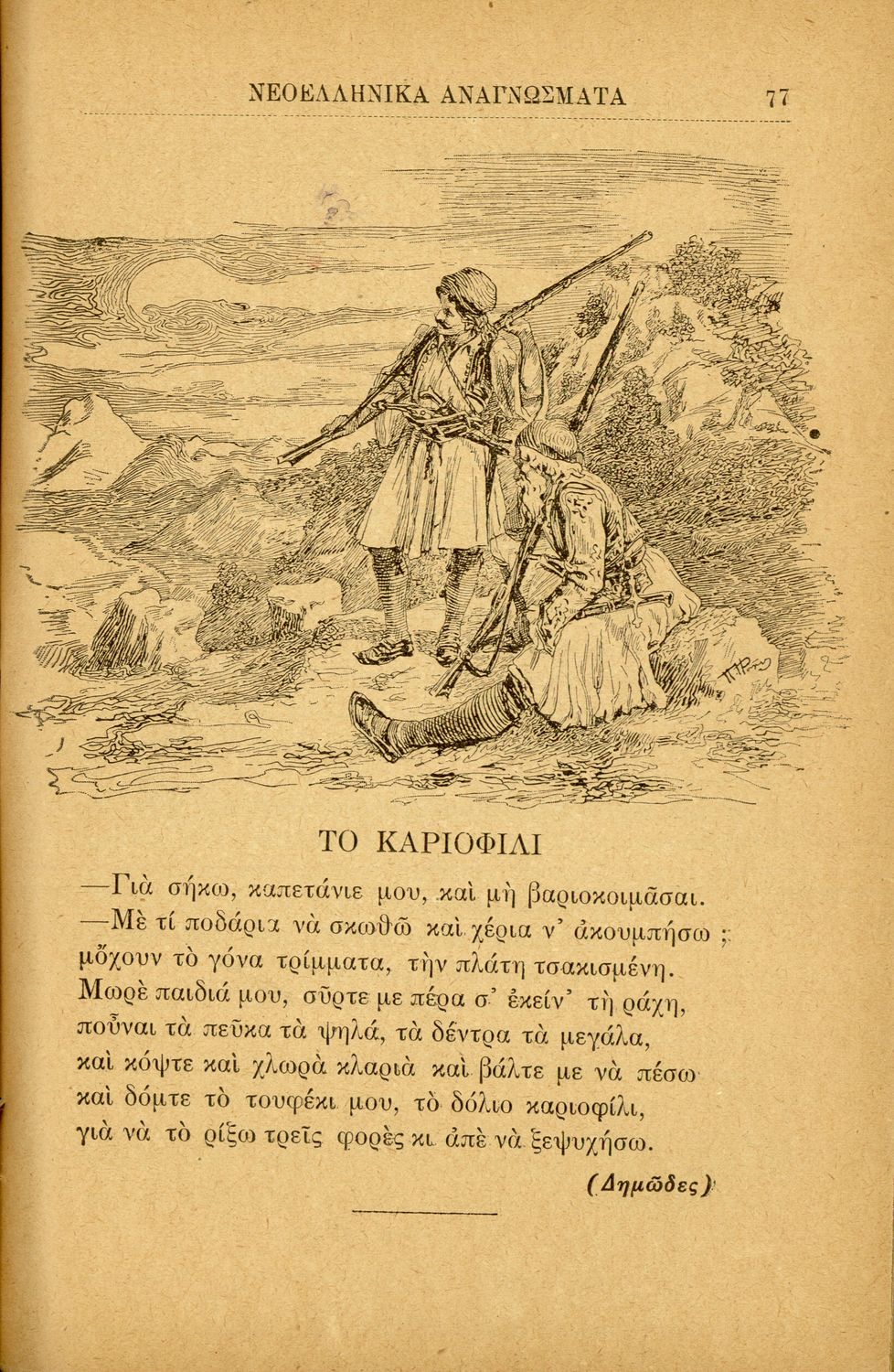 Σχολικό εγχειρίδιο Νέων Ελληνικών Γ' Ελληνικού και Α' Αστικού Σχολείου που περιλαμβάνει κείμενα Ελλήνων συγγραφέων εμπνευσμένα από την σύγχρονη ελληνική ιστορία, τη βυζαντινή ιστορία, την ελληνική φύση και τη ...