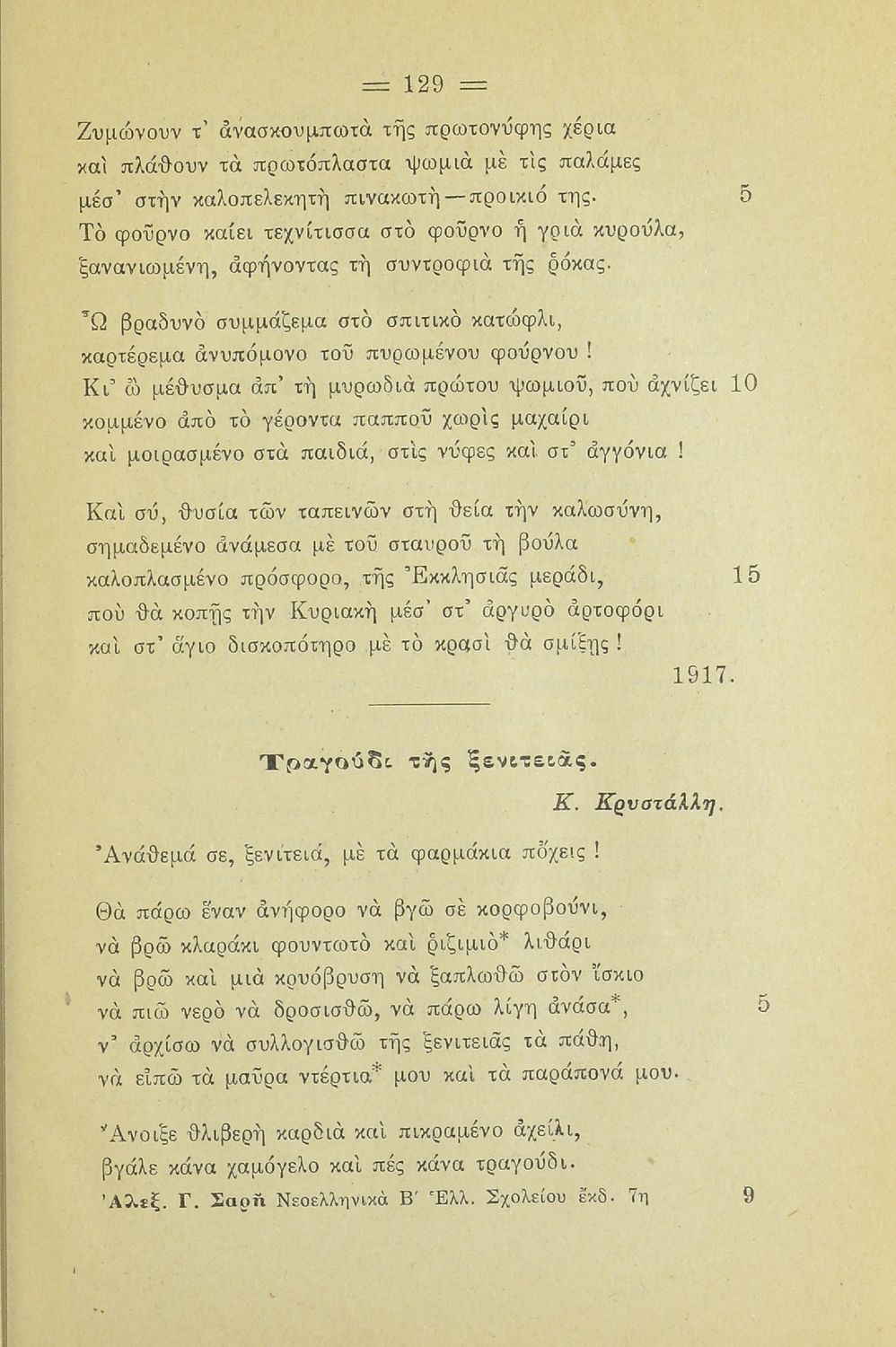 Σχολικό εγχειρίδιο Νέων Ελληνικών Β' Ελληνικού Σχολείου που περιλαμβάνει κείμενα Ελλήνων συγγραφέων με θέματα από την σύγχρονη ελληνική ιστορία, την ελληνική φύση και τη ζωή στην ύπαιθρο, την οικογενειακή ζωή και τη θρησκευτική παράδοση. Περιέχει και παράρτημα με βιογραφίες των συγγραφέων και λεξιλόγιο.
