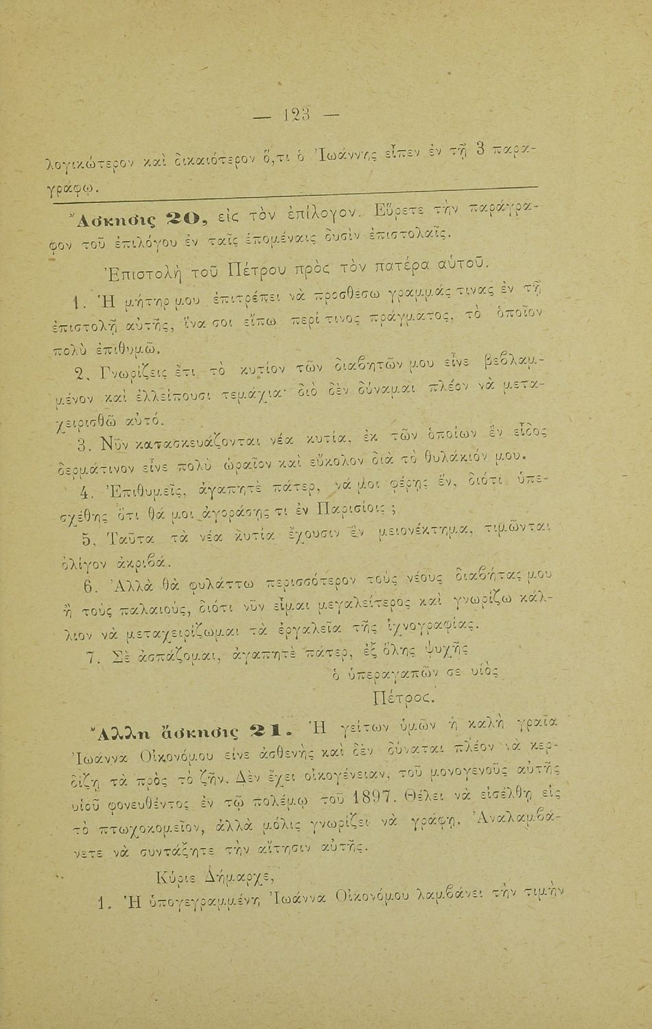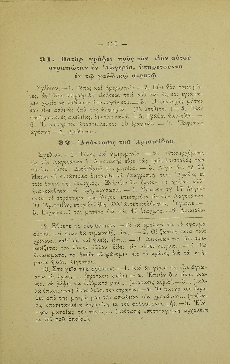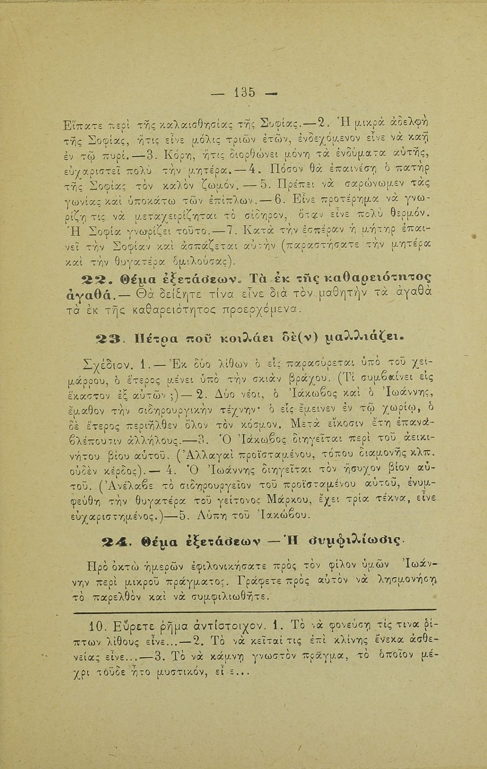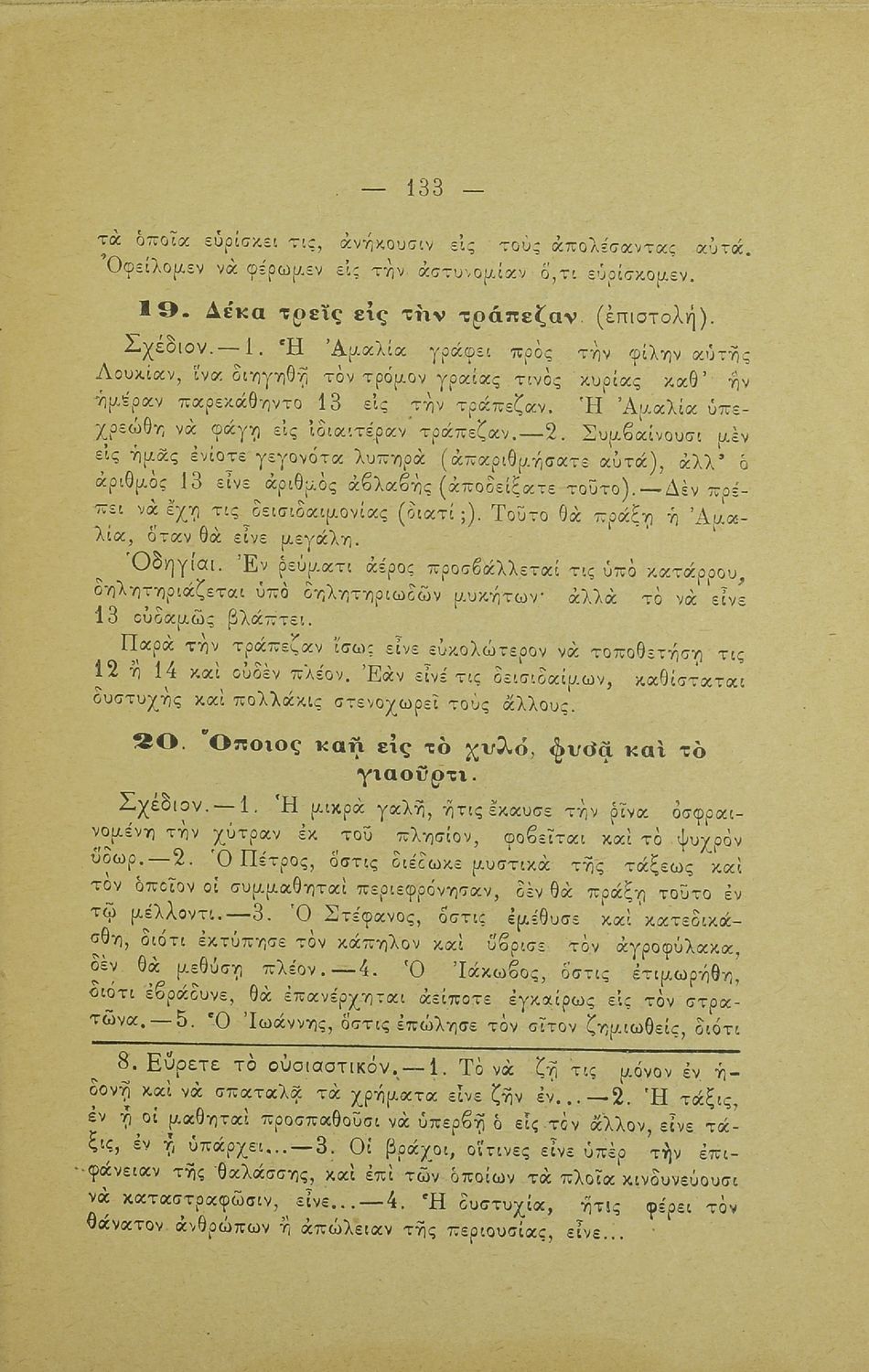 Τάξη:  Α' Ελληνικού Σχολείου / Β' Ελληνικού Σχολείου / Γ' Ελληνικού Σχολείου / Παρθεναγωγείο / Εμπορικές και Πρακτικές Σχολές