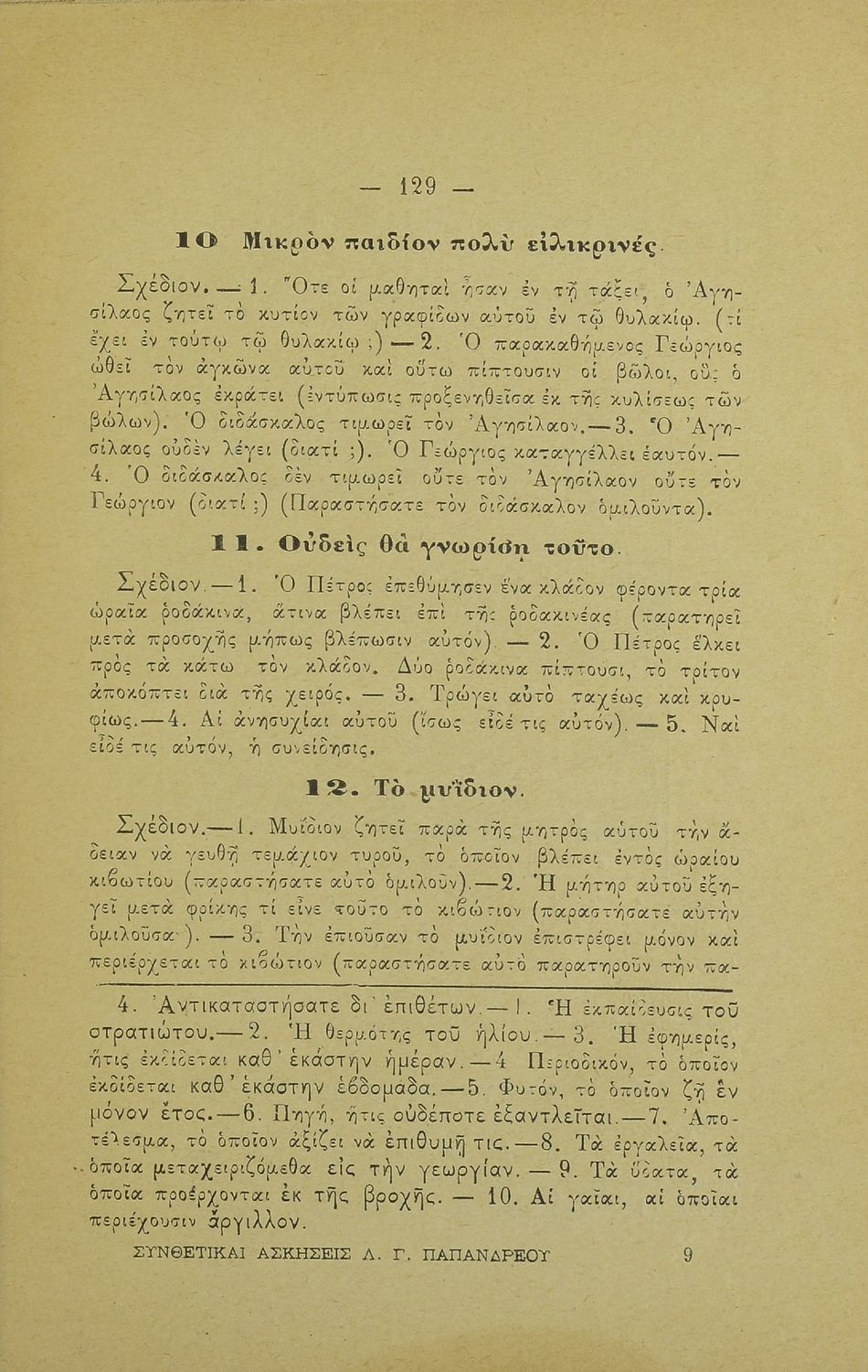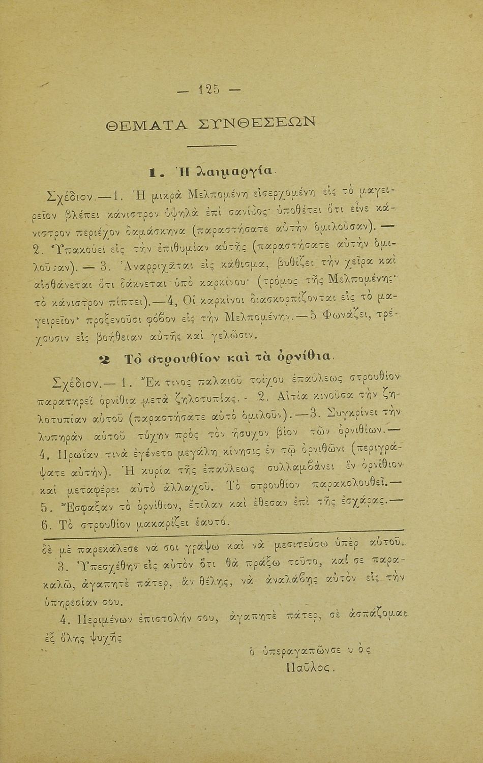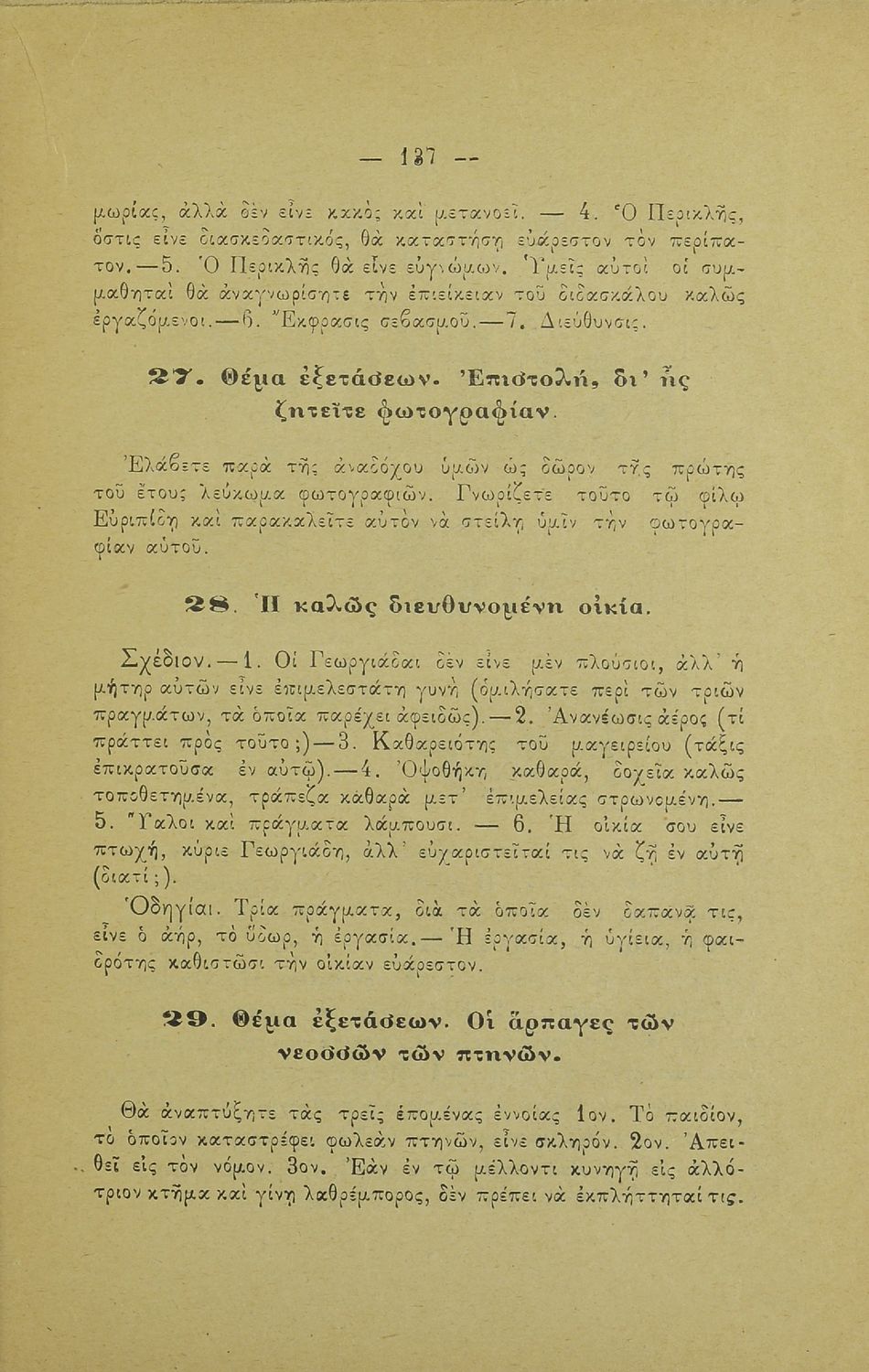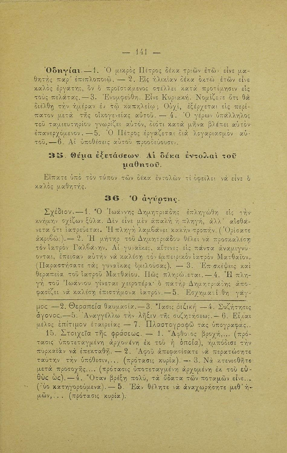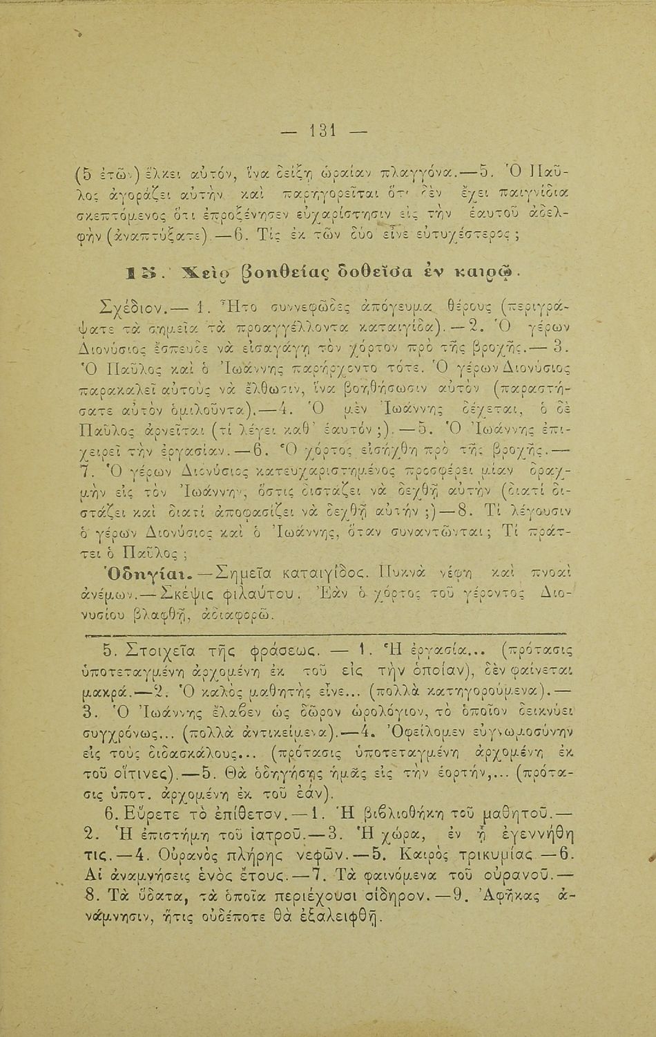 Τάξη:  Α' Ελληνικού Σχολείου / Β' Ελληνικού Σχολείου / Γ' Ελληνικού Σχολείου / Παρθεναγωγείο / Εμπορικές και Πρακτικές Σχολές