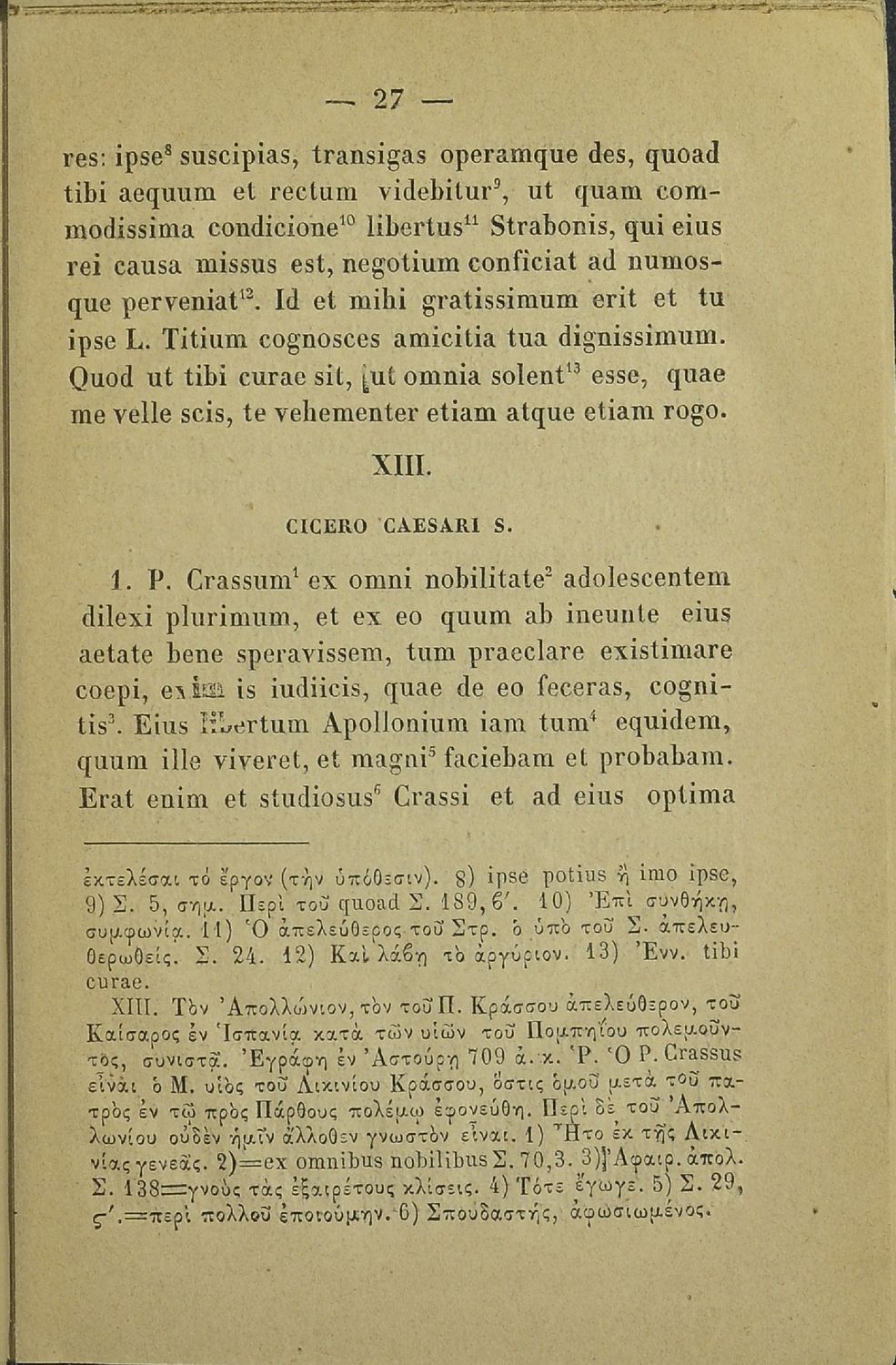 Τίτλος: Κικέρωνος επιστολαί κατ' εκλογήν προς χρήσιν των μαθητών Γυμνασίων (τόμος Β΄, τεύχος Α΄ )