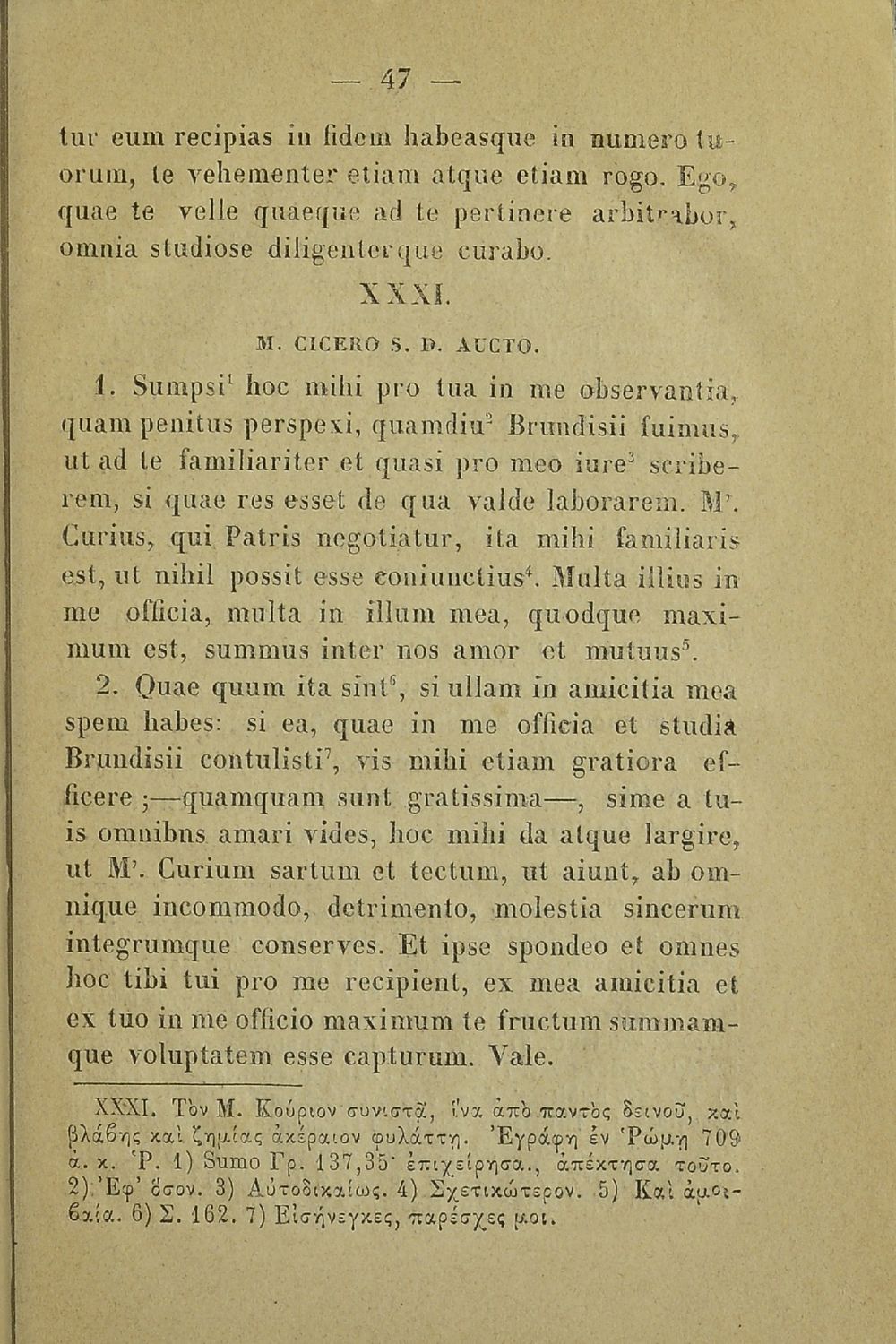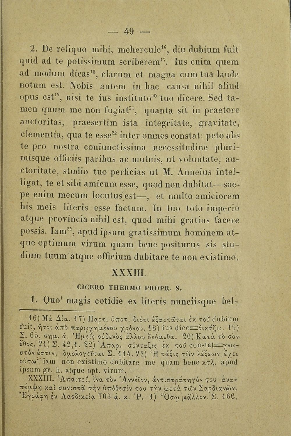 Σχολικό εγχειρίδιο Λατινικών που περιλαμβάνει αποσπάσματα από τις επιστολές του Κικέρωνα, εισαγωγή στη ζωή και το έργο του και ερμηνευτικά και πραγματολογικά σχόλια.