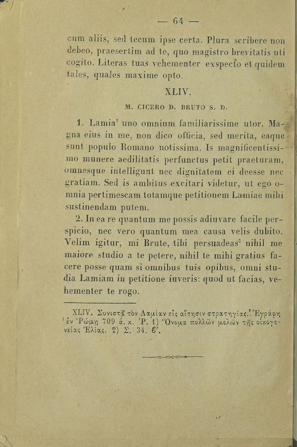 Σχολικό εγχειρίδιο Λατινικών που περιλαμβάνει αποσπάσματα από τις επιστολές του Κικέρωνα, εισαγωγή στη ζωή και το έργο του και ερμηνευτικά και πραγματολογικά σχόλια.