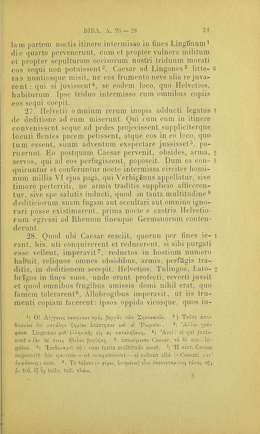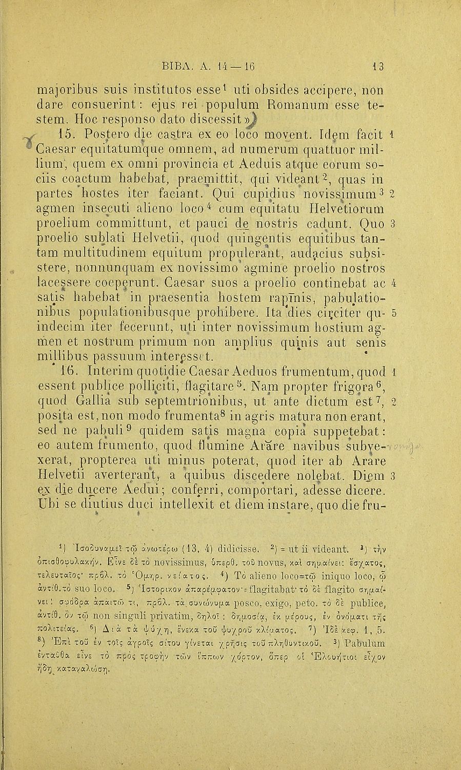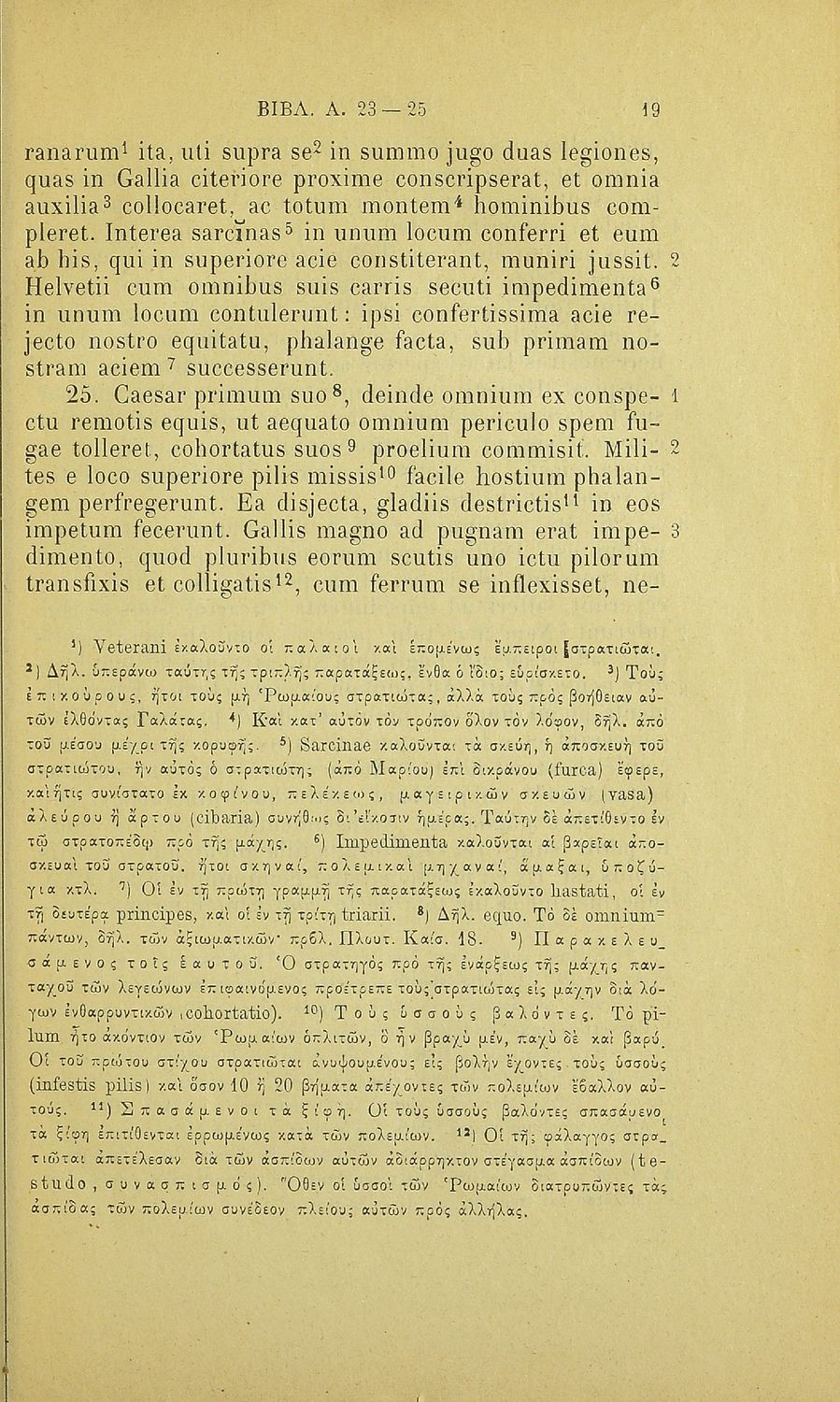Σχολικό εγχειρίδιο Λατινικών που περιέχει αποσπάσματα από τα απομνημονεύματα του Ιούλιου Καίσαρα, σύντομο βιογραφικό σημείωμα, εισαγωγή στο έργο και πραγματολογικά και γλωσσικά σχόλια.
