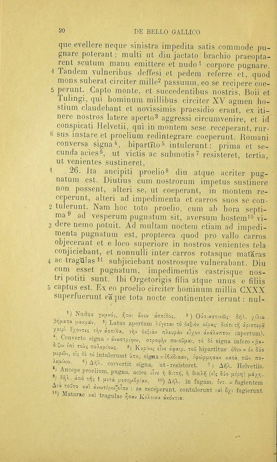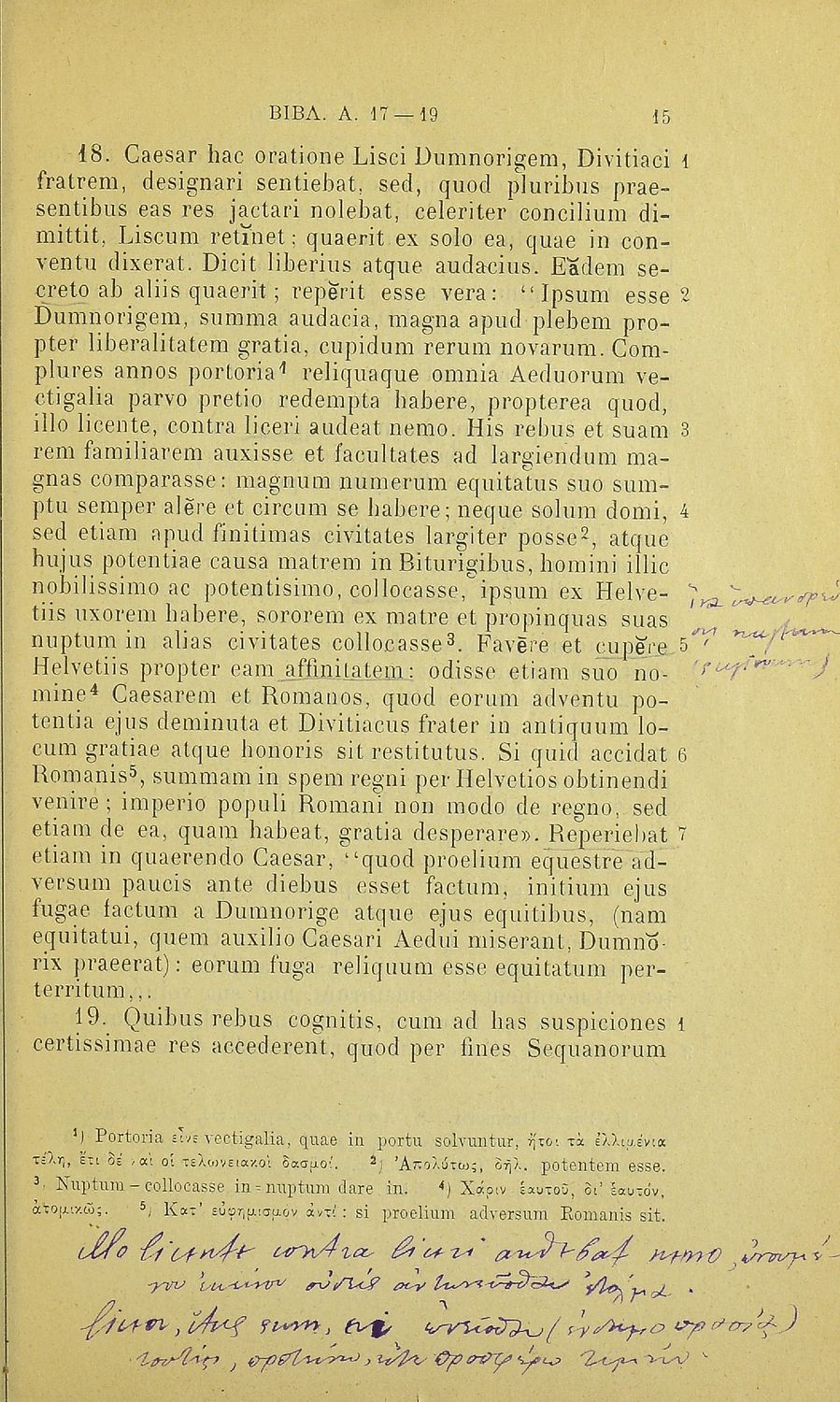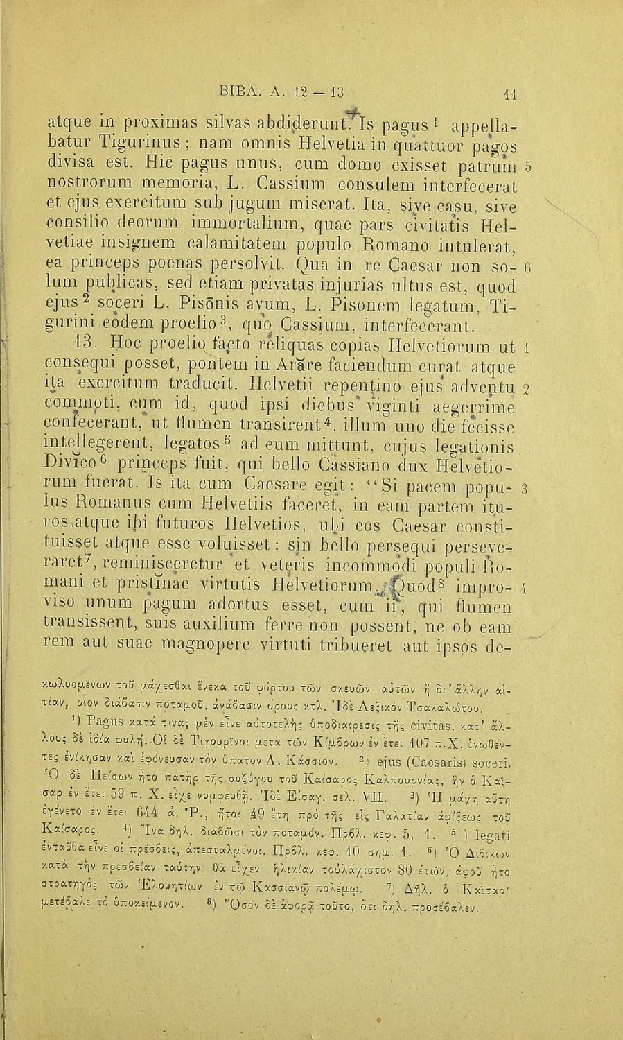 Σχολικό εγχειρίδιο Λατινικών που περιέχει αποσπάσματα από τα απομνημονεύματα του Ιούλιου Καίσαρα, σύντομο βιογραφικό σημείωμα, εισαγωγή στο έργο και πραγματολογικά και γλωσσικά σχόλια.
