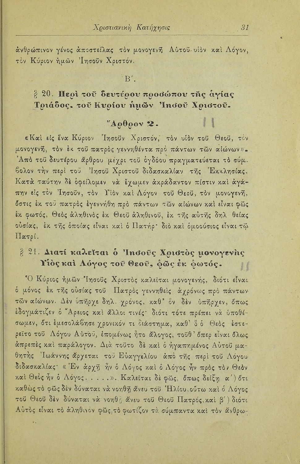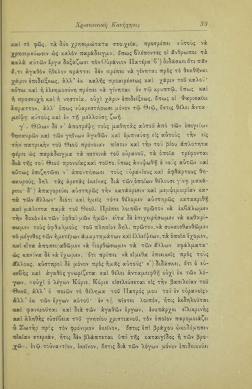 Σχολικό εγχειρίδιο Θρησκευτικών για τα Ελληνικά Σχολεία και Παρθεναγωγεία που εστιάζει σε θέματα χριστιανικής ηθικής και σε δογματικά και ηθικά ζητήματα της ορθόδοξης κατήχησης.