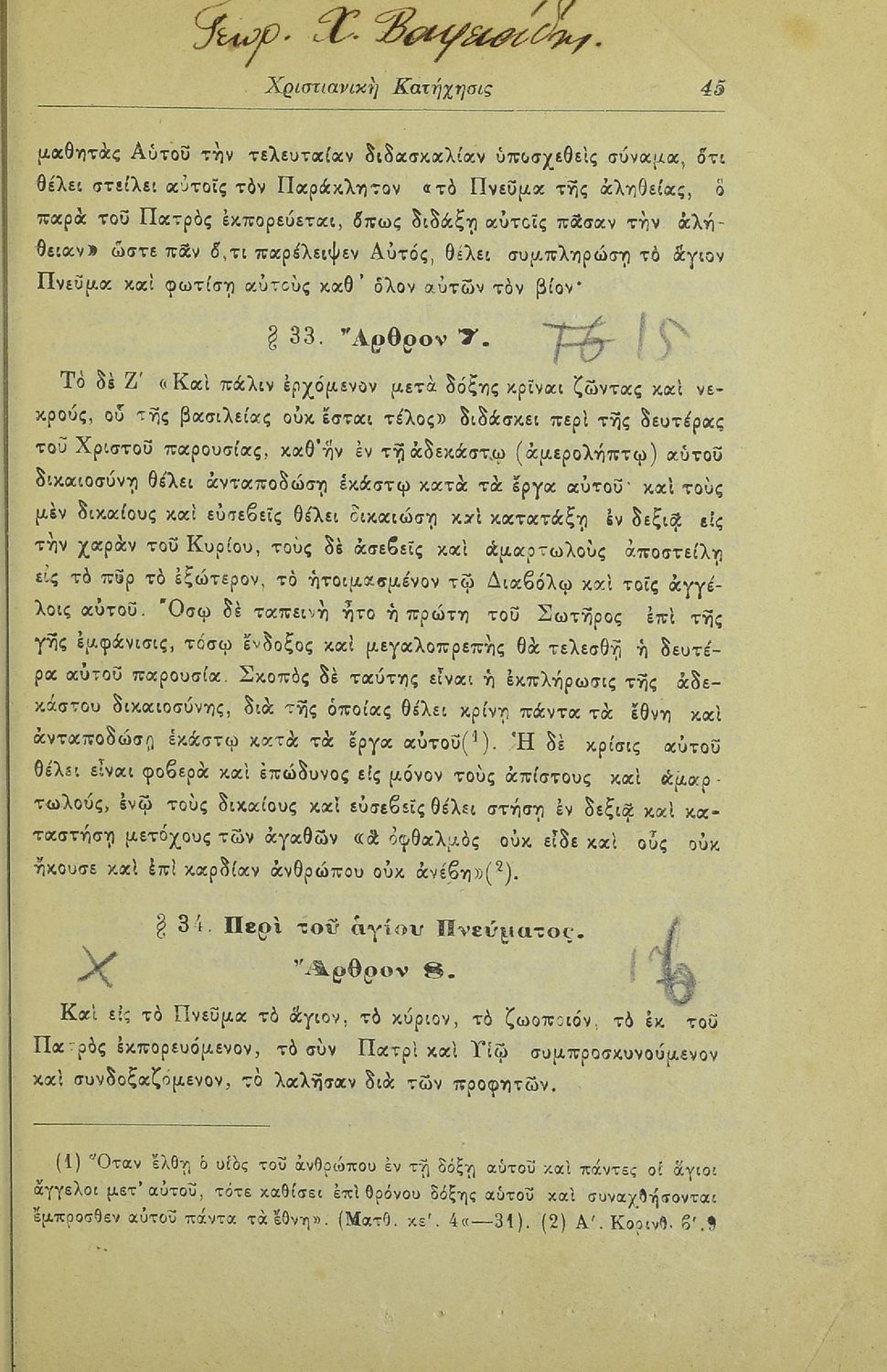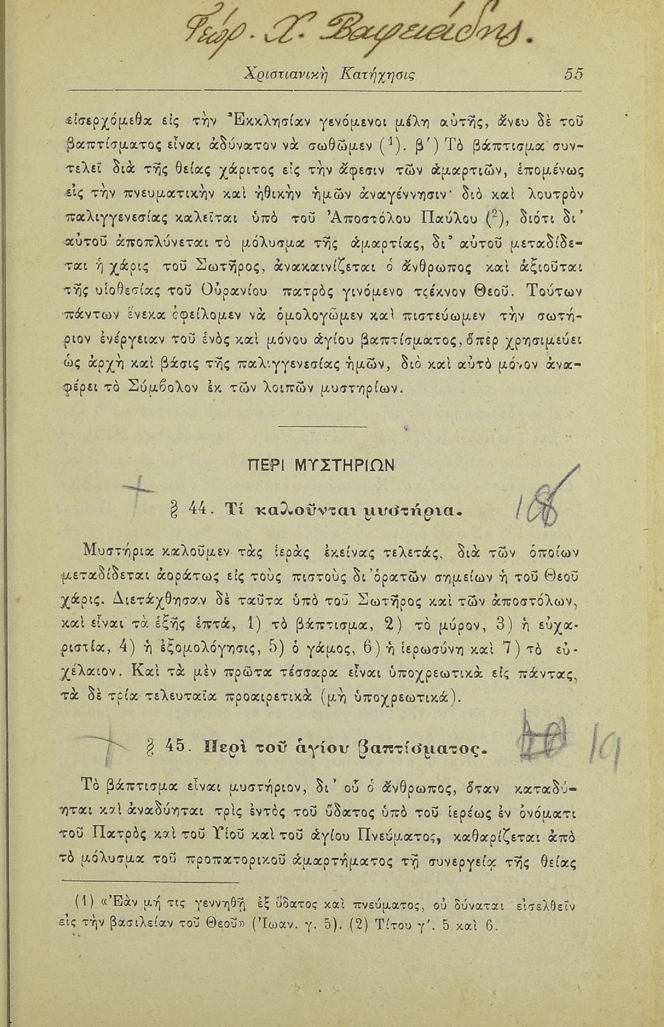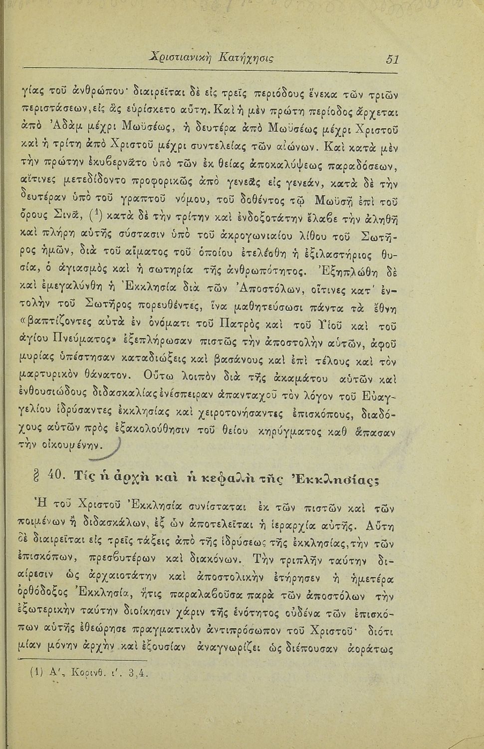 Σχολικό εγχειρίδιο Θρησκευτικών για τα Ελληνικά Σχολεία και Παρθεναγωγεία που εστιάζει σε θέματα χριστιανικής ηθικής και σε δογματικά και ηθικά ζητήματα της ορθόδοξης κατήχησης.