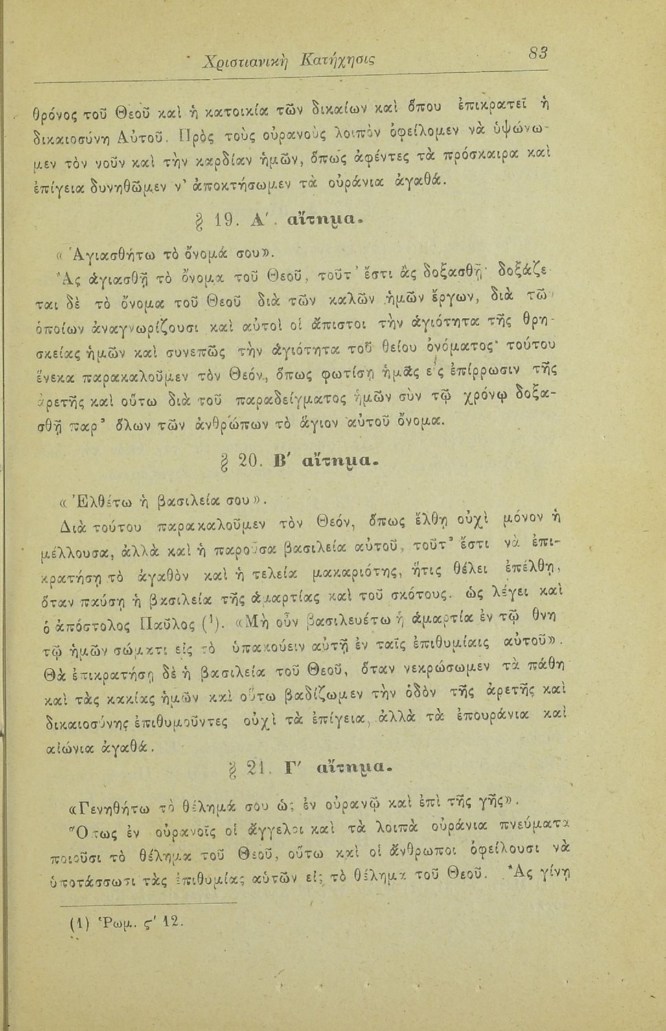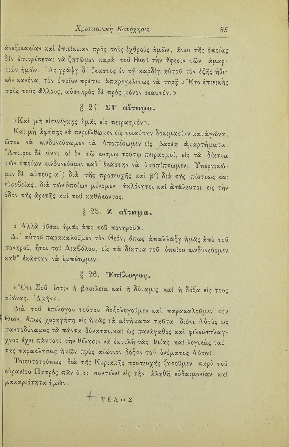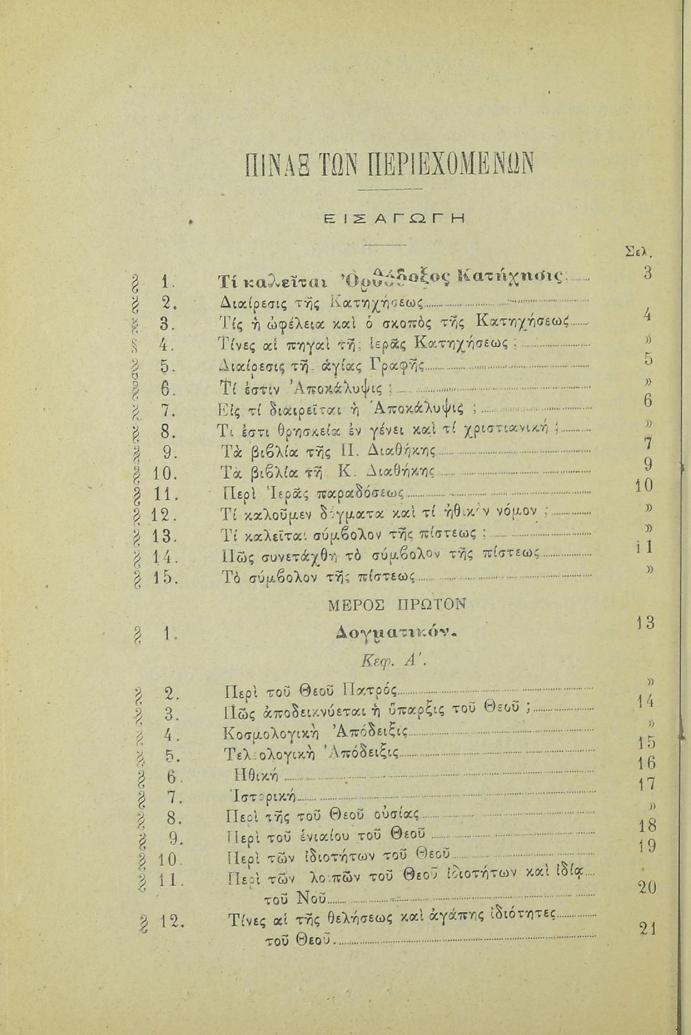 Σχολικό εγχειρίδιο Θρησκευτικών για τα Ελληνικά Σχολεία και Παρθεναγωγεία που εστιάζει σε θέματα χριστιανικής ηθικής και σε δογματικά και ηθικά ζητήματα της ορθόδοξης κατήχησης.