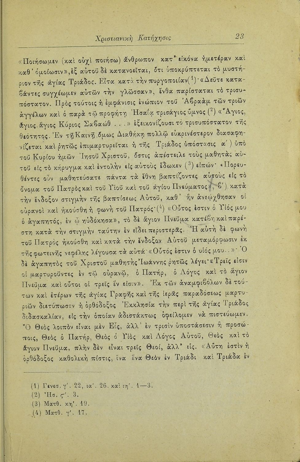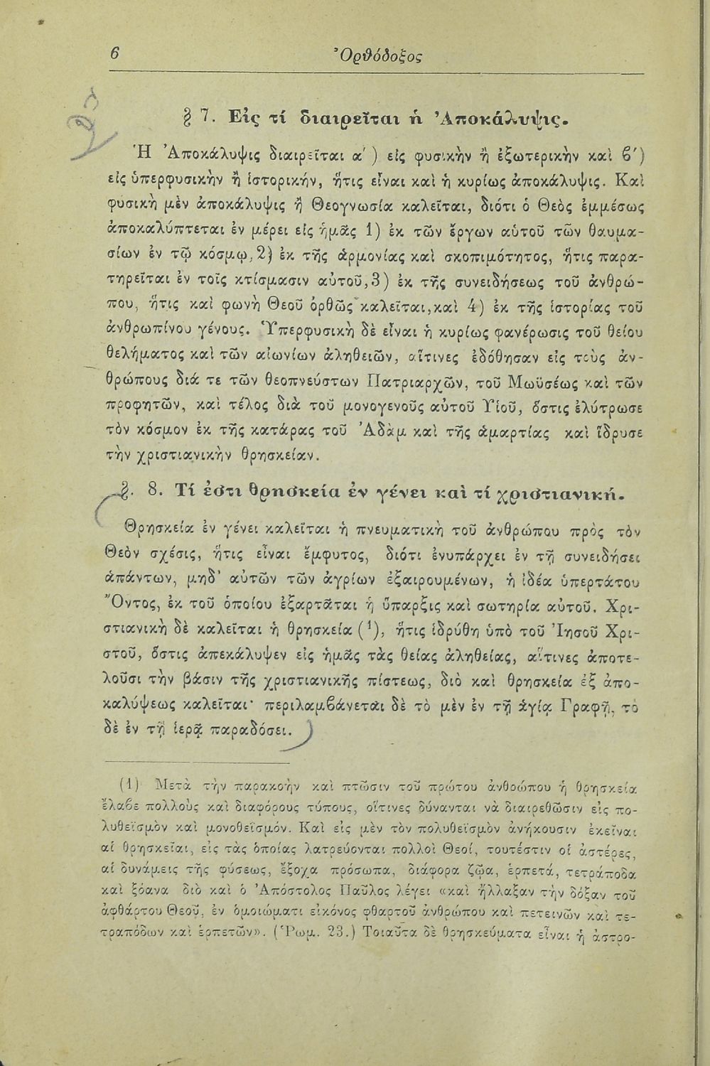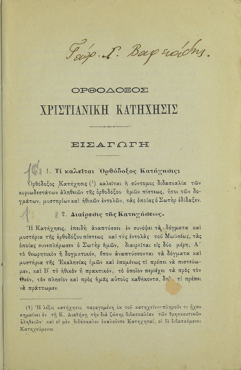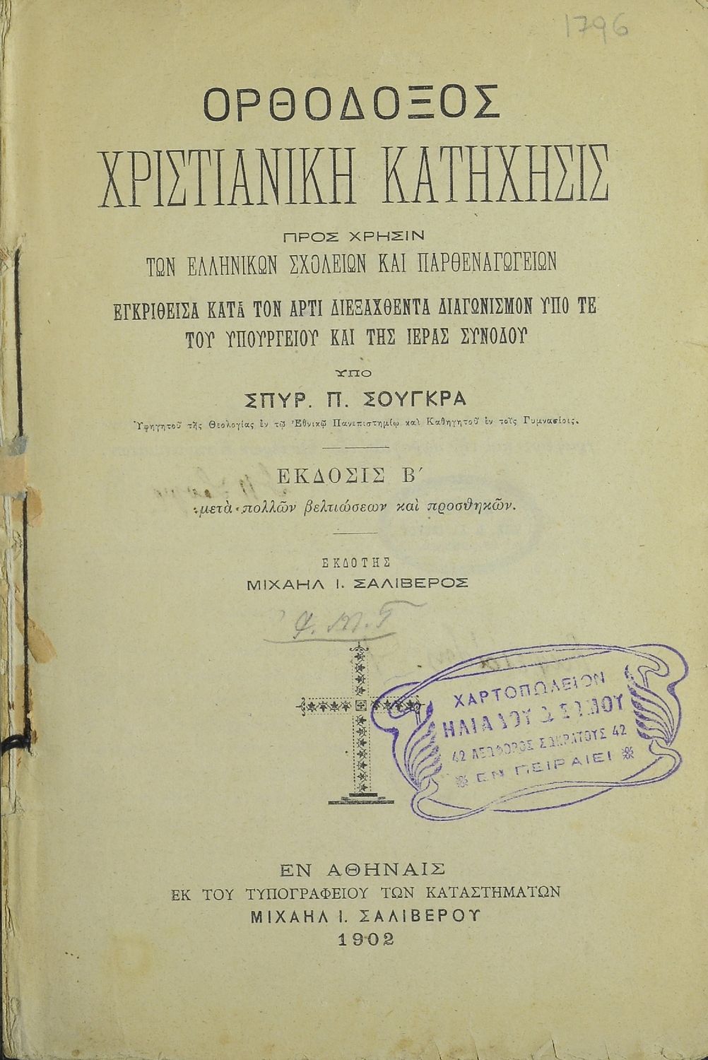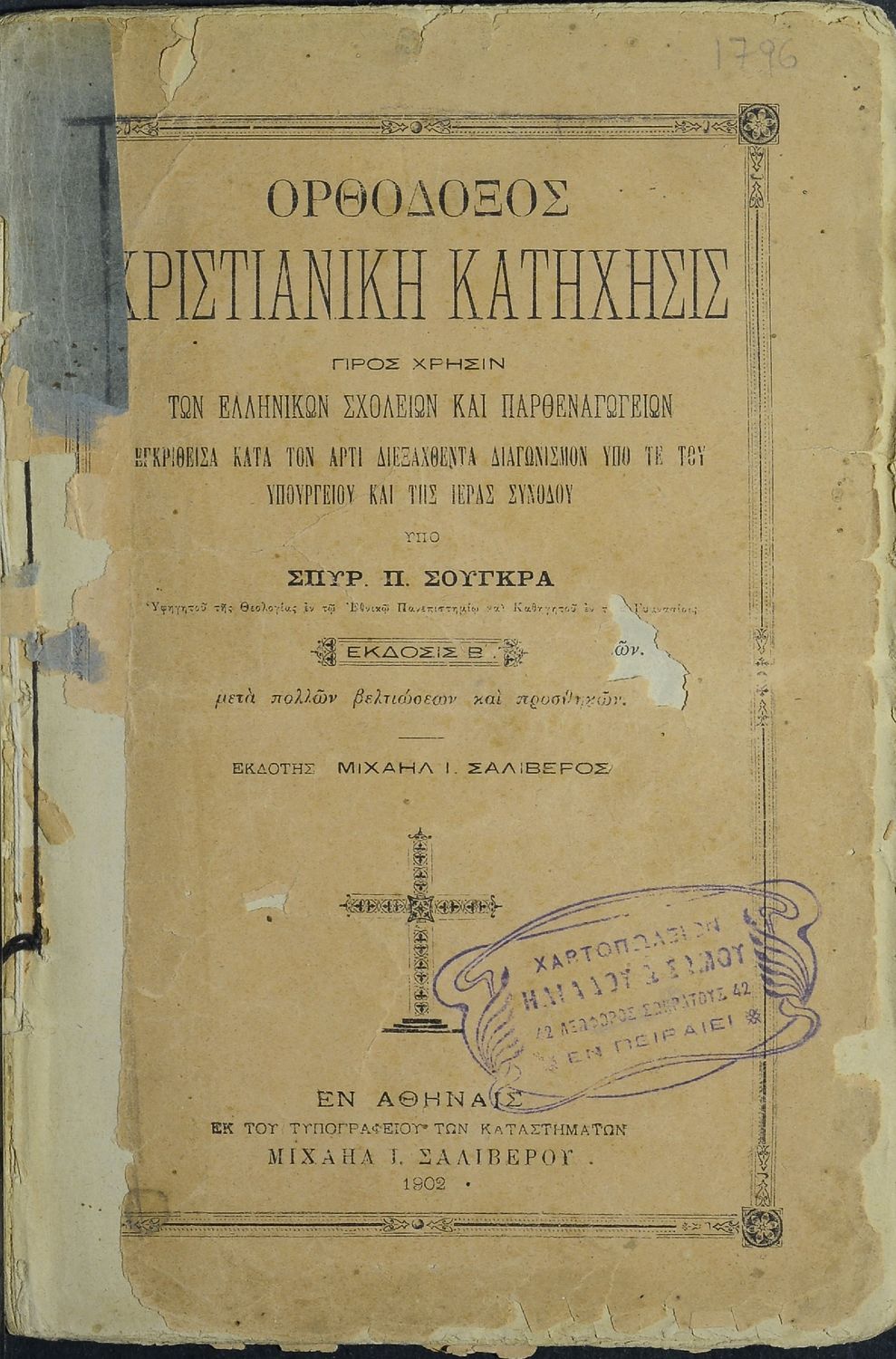 Σχολικό εγχειρίδιο Θρησκευτικών για τα Ελληνικά Σχολεία και Παρθεναγωγεία που εστιάζει σε θέματα χριστιανικής ηθικής και σε δογματικά και ηθικά ζητήματα της ορθόδοξης κατήχησης.