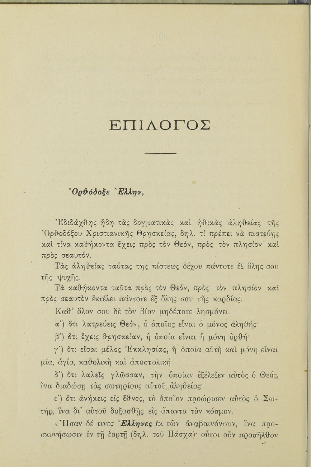 LDR 01175 2200205 4500 035 ## _a20-01797 040 ## _aΚΕΝΕΚ - Εταιρεία Σπουδών Νεοελληνικού Πολιτισμού και Παιδείας 041 ## _ael 100 ## _aΝικόλαος Α. Παπαγιαννόπουλος 110 ## _a1797 245 0# _aΟρθόδοξος κατήχησις διά την τρίτην τάξιν του Ελληνικού Σχολείου 260 ## _aΑθήνα _bΕυριπίδης Θ. Γαϊτάνος _c1912 300 ## _a80 _c19 520 ## _aΣχολικό εγχειρίδιο Θρησκευτικών για τη Γ' Ελληνικού Σχολείου που πραγματεύεται θέματα χριστιανικής ηθικής και δογματικά και ηθικά ζητήματα της ορθόδοξης κατήχησης. 521 ## _aΓ' Ελληνικού Σχολείου 522 ## _aΕλλάδα 546 ## _aΚαθαρεύουσα 563 ## _aΣκληρό Εξώφυλλο 583 ## _a12903/26-8-1910 _c1910 650 #4 _aΕορτές _aΗθικές αξίες χριστιανών _aΘεία μυστήρια _aΠροσευχές