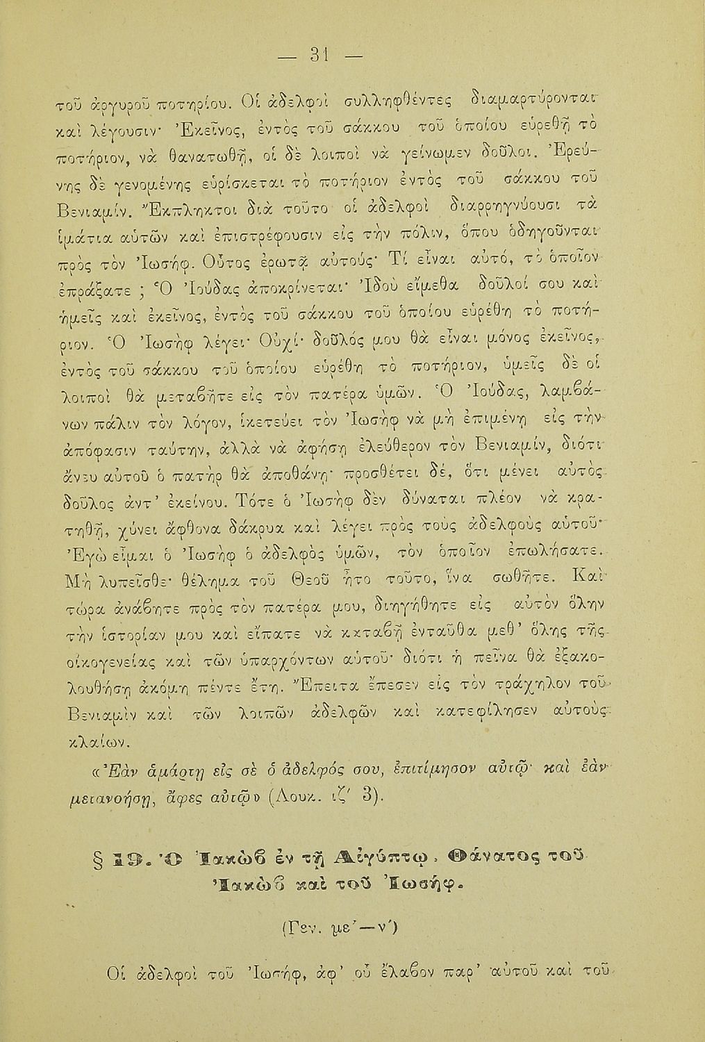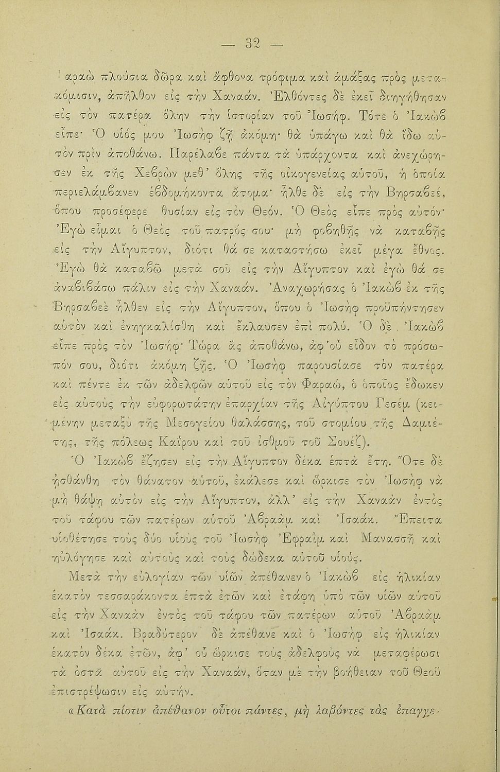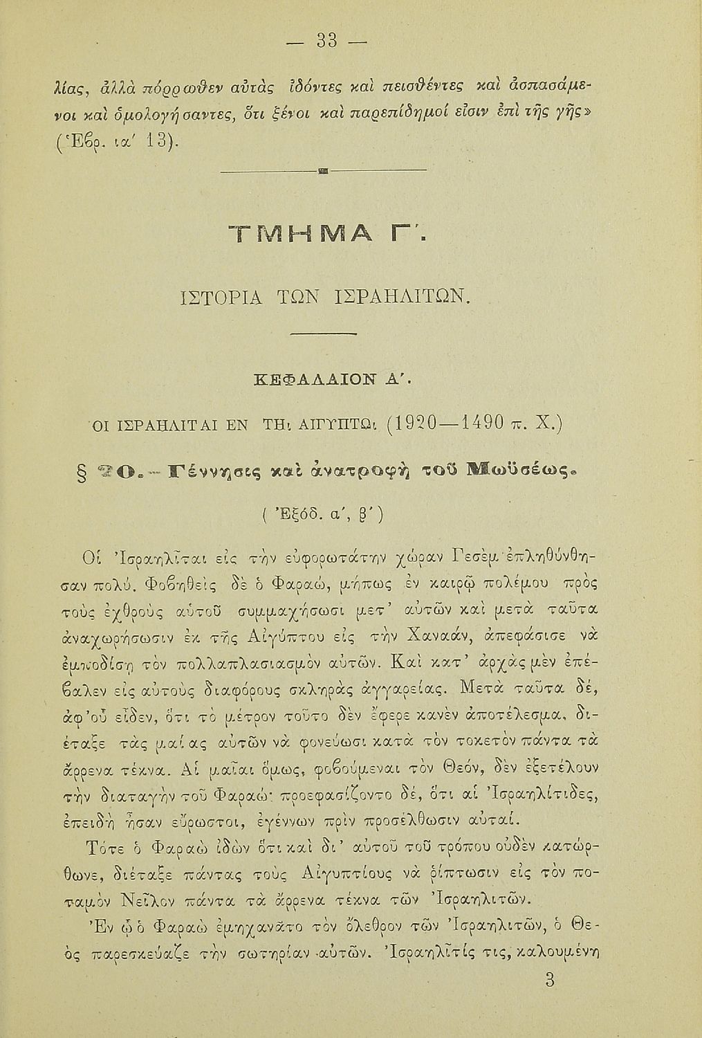 Σχολικό εγχειρίδιο Θρησκευτικών για τα Ελληνικά Σχολεία και Παρθεναγωγεία που συνιστά μία εξιστόρηση της Παλαιάς Διαθήκης από τη δημιουργία του κόσμου ως τους Μακκαβαίους.