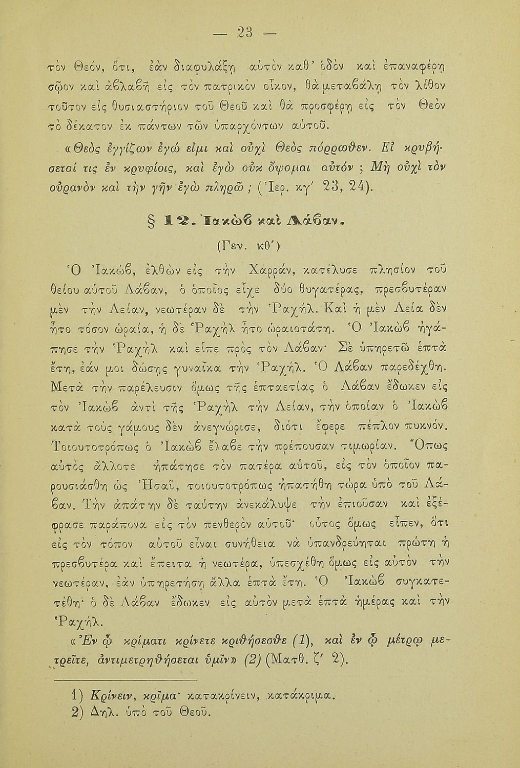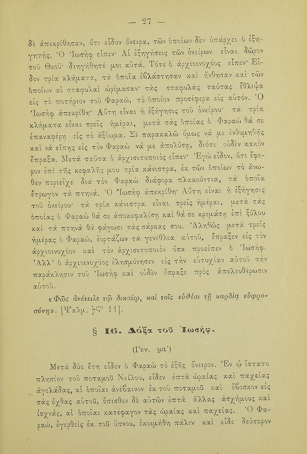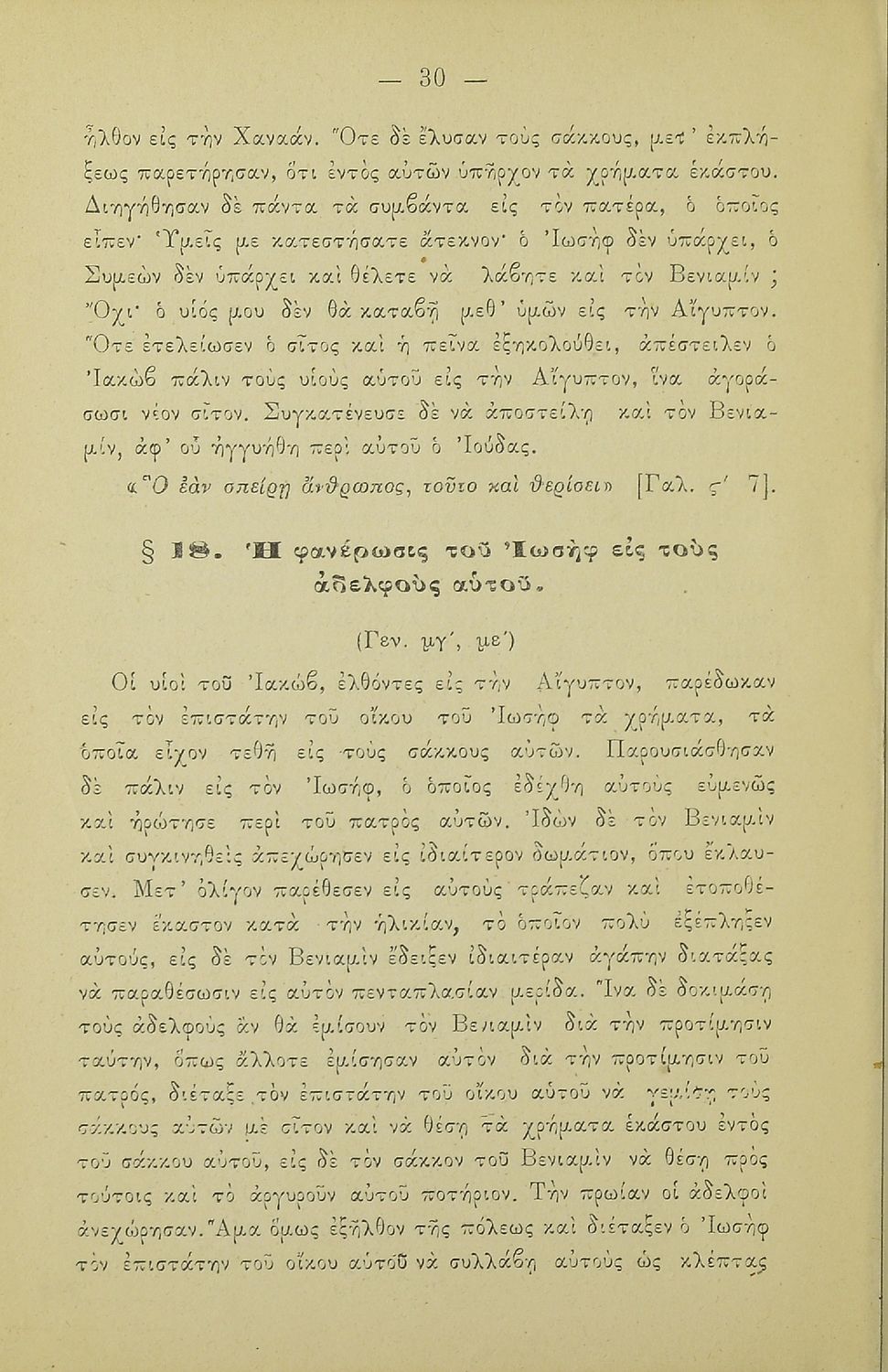 Σχολικό εγχειρίδιο Θρησκευτικών για τα Ελληνικά Σχολεία και Παρθεναγωγεία που συνιστά μία εξιστόρηση της Παλαιάς Διαθήκης από τη δημιουργία του κόσμου ως τους Μακκαβαίους.