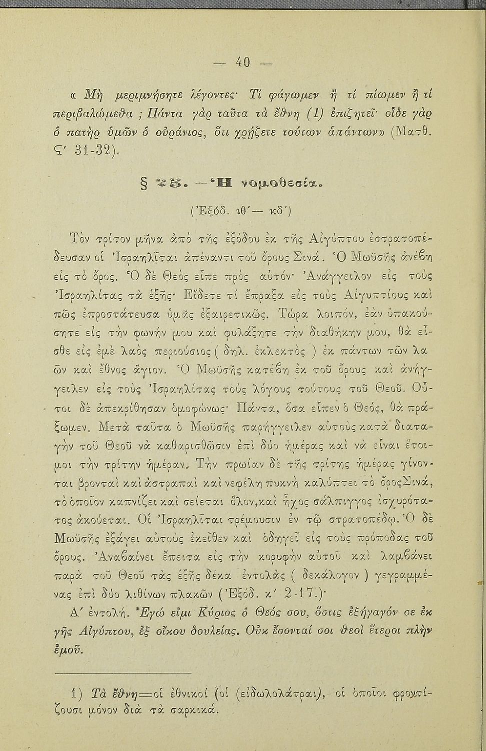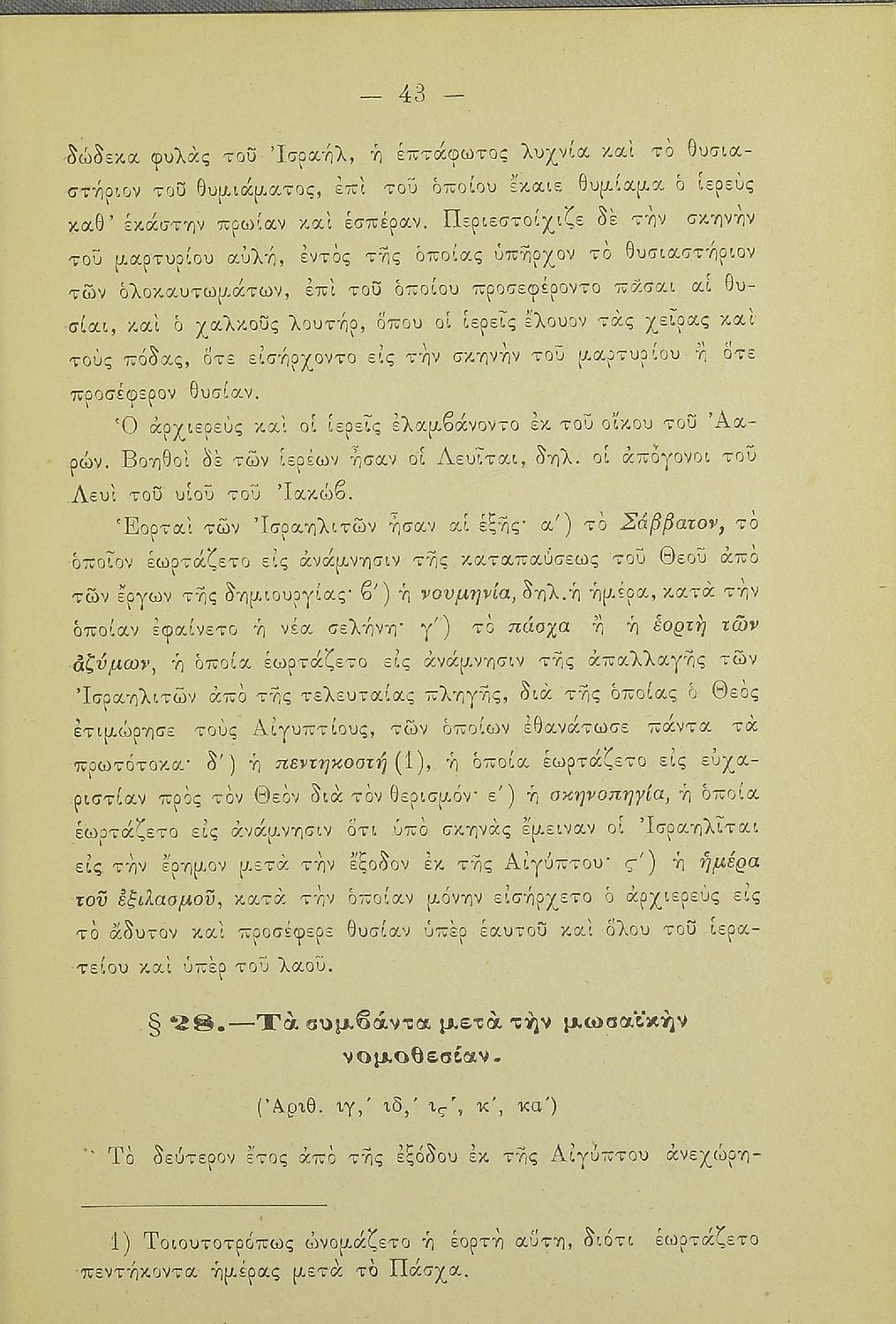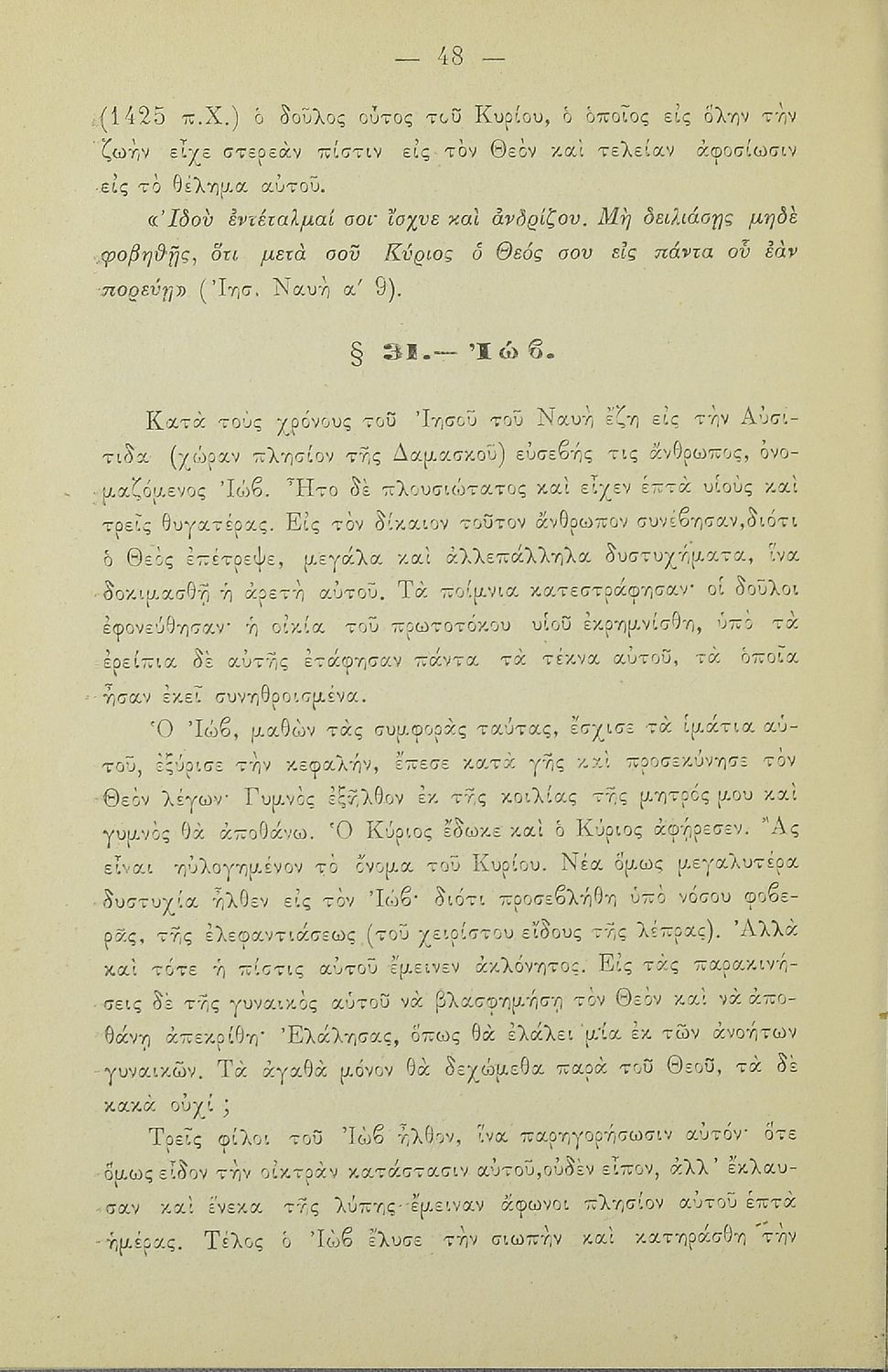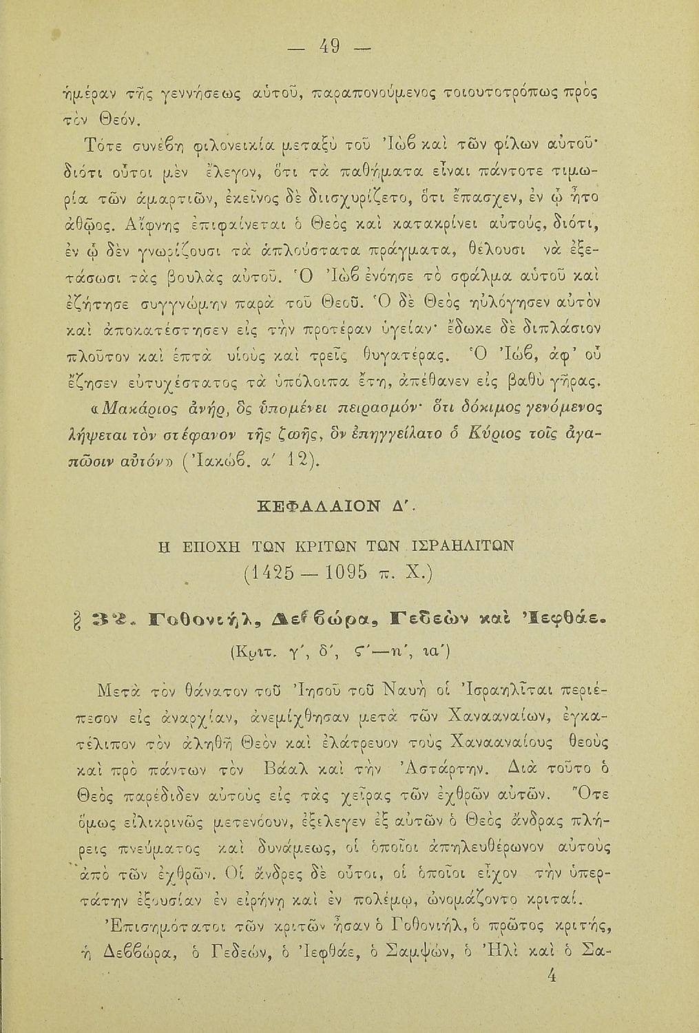 Σχολικό εγχειρίδιο Θρησκευτικών για τα Ελληνικά Σχολεία και Παρθεναγωγεία που περιλαμβάνει την ιστορία της Παλαιάς Διαθήκης από την δημιουργία του κόσμου μέχρι τους Μακκαβαίους και τον Ιωάννη τον Βαπτιστή.
