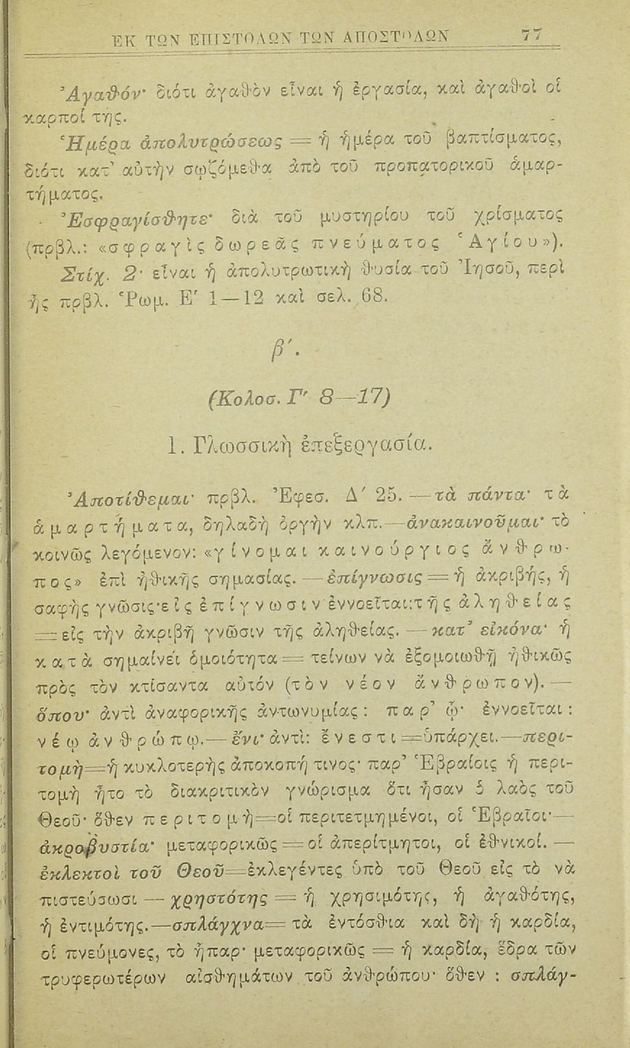 520 ## _aΣχολικό εγχειρίδιο Θρησκευτικών Β΄ Γυμνασίου που περιλαμβάνει περικοπές από τις πράξεις και τις επιστολές των Αποστόλων και πραγματολογικά, ερμηνευτικά και γλωσσικά σχόλια.