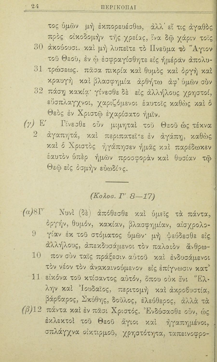 LDR 01137 2200193 4500 035 ## _a20-01803 040 ## _aΚΕΝΕΚ - Εταιρεία Σπουδών Νεοελληνικού Πολιτισμού και Παιδείας 041 ## _ael 100 ## _aΔημ. Ι. Κουϊμουτσόπουλος 110 ## _a1803 245 0# _aΠερικοπαί εκ των πράξεων και των επιστολών των αποστόλων προς χρήσιν της Β΄ τάξεως των Γυμνασίων 260 ## _aΑθήνα _bΜιχαήλ Ι. Σαλίβερος _c1917 300 ## _a112 _c17 520 ## _aΣχολικό εγχειρίδιο Θρησκευτικών Β΄ Γυμνασίου που περιλαμβάνει περικοπές από τις πράξεις και τις επιστολές των Αποστόλων και πραγματολογικά, ερμηνευτικά και γλωσσικά σχόλια. 521 ## _aΒ' Γυμνασίου 522 ## _aΕλλάδα 546 ## _aΚαθαρεύουσα 563 ## _aΜαλακό Εξώφυλλο 650 #4 _aΑπόστολοι _aΕπιστολές _aΠερικοπές