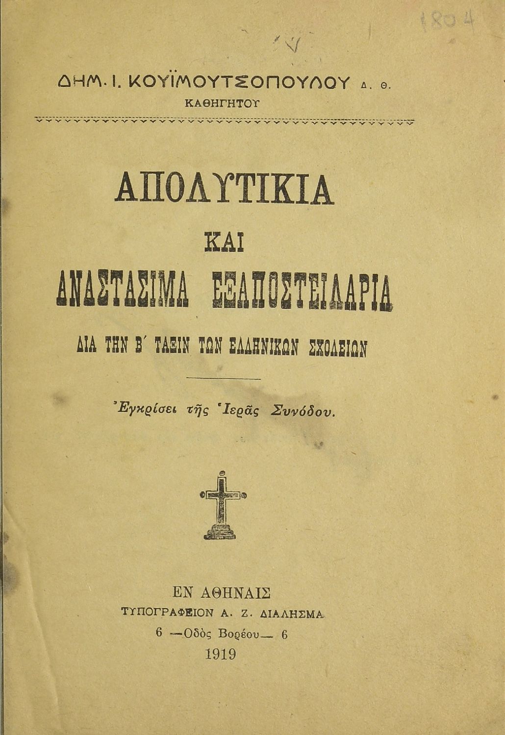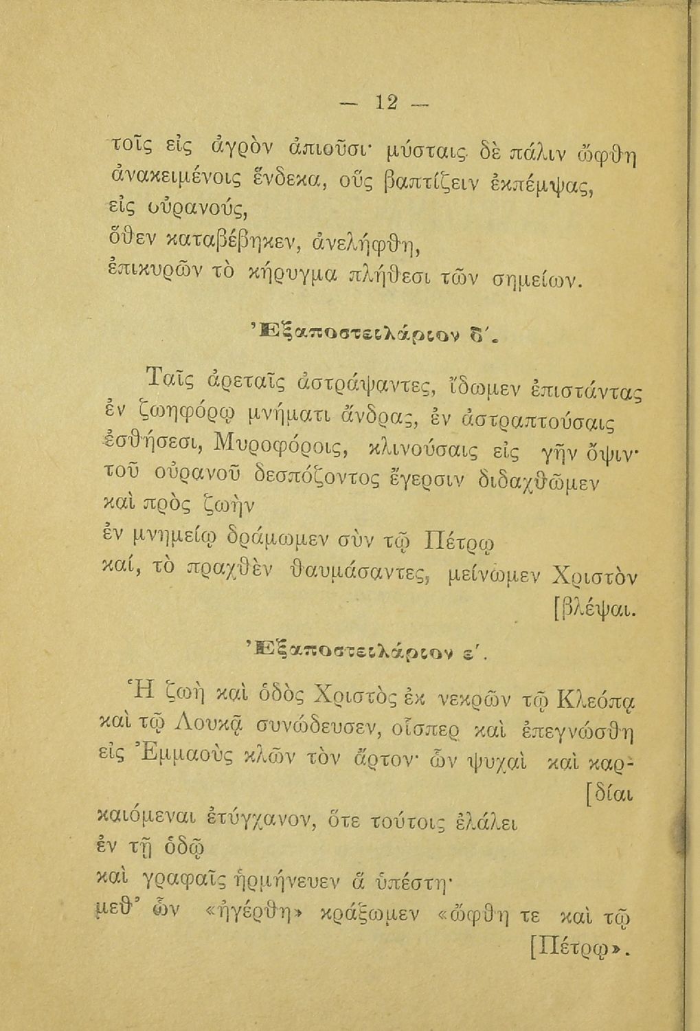 Τίτλος: Απολυτίκια και αναστάσιμα εξαποστειλάρια δια την Β΄ τάξιν των Ελληνικών Σχολείων