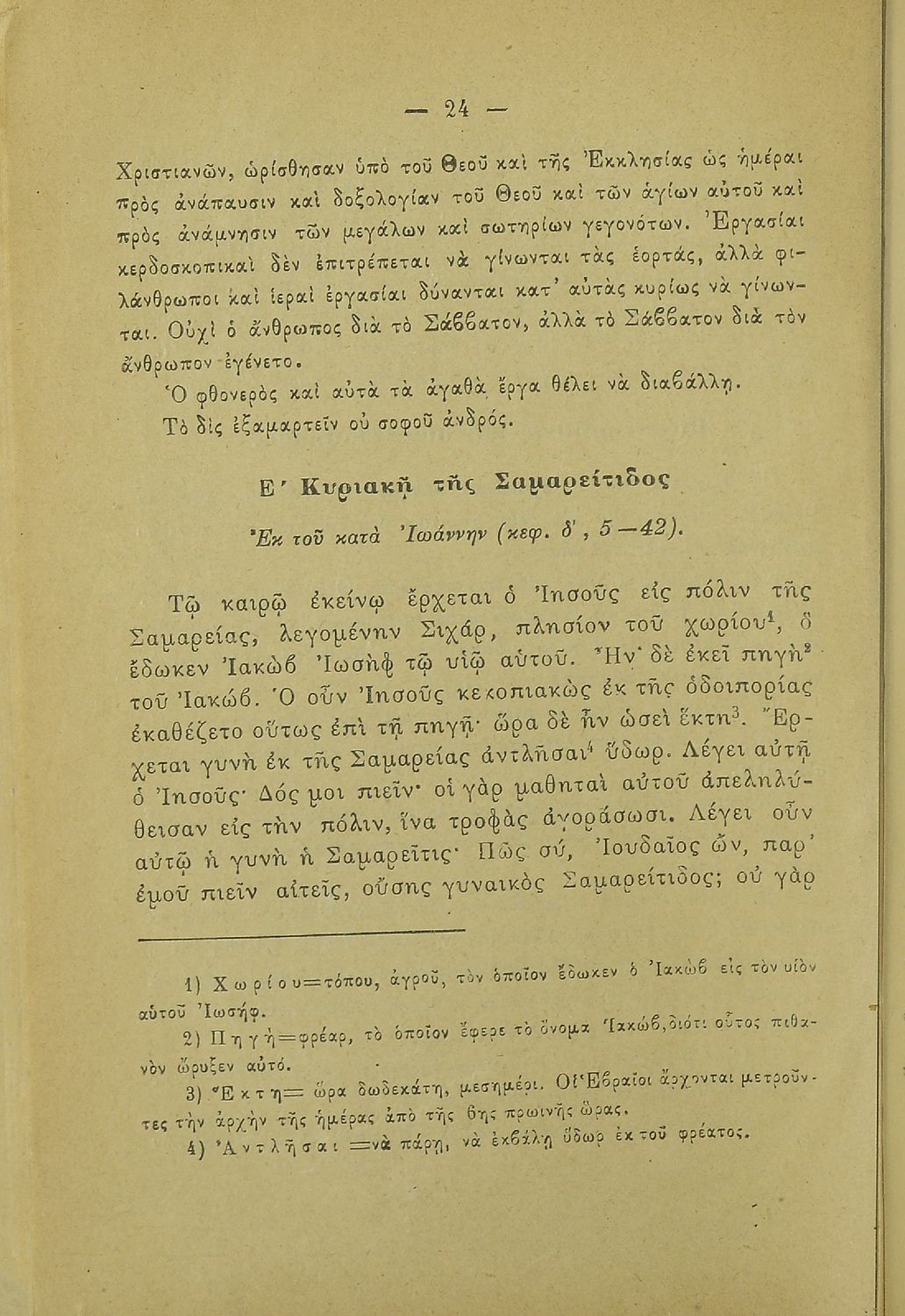 Σχολικό εγχειρίδιο Θρησκευτικών για τα Γυμνάσια, τα Διδασκαλεία και τα Παρθεναγωγεία που περιλαμβάνει αποσπάσματα από τις πράξεις των Αποστόλων, περικοπές ύμνων και ψαλμωδιών και επιστολές του Αποστόλου Παύλου.