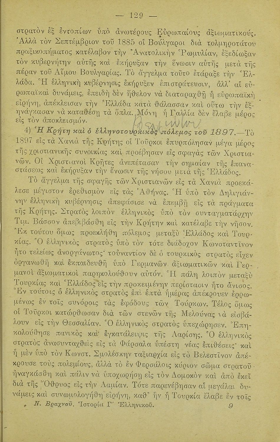 LDR 01652 2200217 4500 035 ## _a20-01808 040 ## _aΚΕΝΕΚ - Εταιρεία Σπουδών Νεοελληνικού Πολιτισμού και Παιδείας 041 ## _ael 100 ## _aΝικόλαος Ι. Βραχνός 110 ## _a1808 245 0# _aΕλληνική ιστορία από της Αλώσεως της Κωνσταντινουπόλεως υπό των Φράγκων μέχρι των καθ' ημάς χρόνων διά την τρίτην τάξιν των Ελληνικών Σχολείων και των αντιστοίχων των λοιπών σχολείων της Μέσης Εκπαιδεύσεως 250 ## _a4η Έκδοση 260 ## _aΑθήνα _bΠρομηθέας _c1922 300 ## _a160 _bΣκίτσα (ασπρόμαυρα) _c19 520 ## _aΣχολικό εγχειρίδιο Ιστορίας Γ' Ελληνικού Σχολείου που περιλαμβάνει τα γεγονότα από την άλωση της Κωνσταντινούπολης από τους Φράγκους μέχρι και τους Βαλκανικούς Πολέμους και τον Α΄ Παγκόσμιο Πόλεμο. 521 ## _aΓ' Ελληνικού Σχολείου 522 ## _aΕλλάδα 546 ## _aΚαθαρεύουσα 563 ## _aΜαλακό Εξώφυλλο 583 ## _a163/ 23-2-1918 _c1918 650 #4 _aΒαλκανικοί Πόλεμοι _aΒενιζέλος _aΓαλλική Επανάσταση _aΓεώργιος Α΄ _aΕλληνική Επανάσταση _aΚαποδίστριας _aΌθωνας _aΦιλελληνισμός