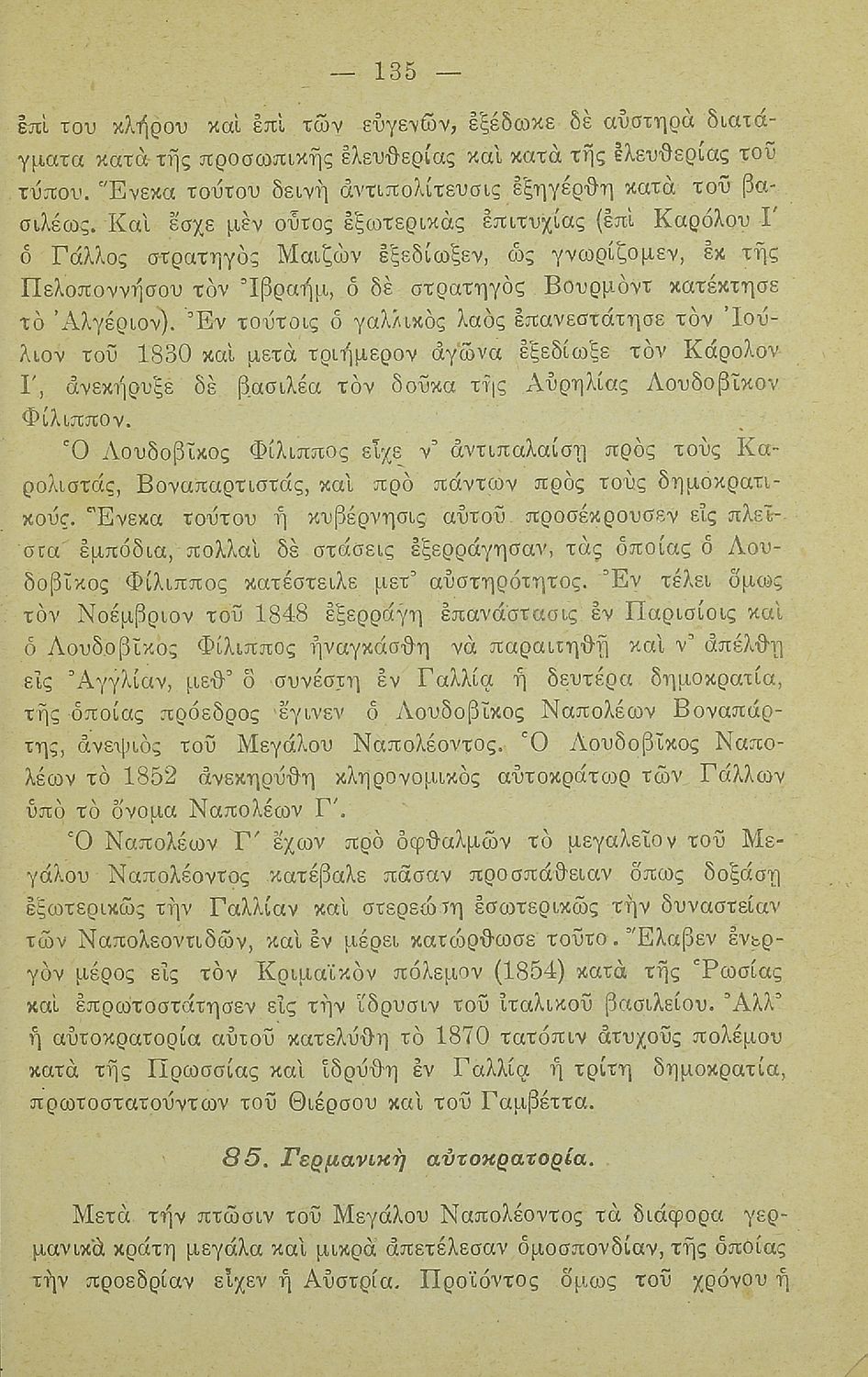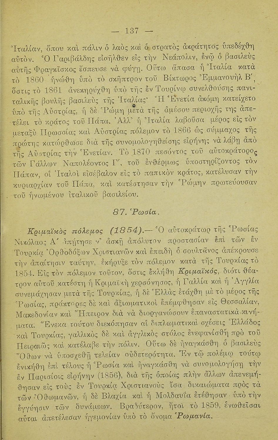 Βαθμίδα εκπαίδευσης: Δευτεροβάθμια Τάξη: Γ' Ελληνικού Σχολείου Μάθημα: Ιστορία Γλώσσα: Καθαρεύουσα Παρουσίαση περιεχομένου: Σχολικό εγχειρίδιο Ιστορίας Γ' Ελληνικού Σχολείου που περιλαμβάνει τα γεγονότα από την άλωση της Κωνσταντινούπολης από τους Φράγκους μέχρι και τους Βαλκανικούς Πολέμους και τον Α΄ Παγκόσμιο Πόλεμο. |