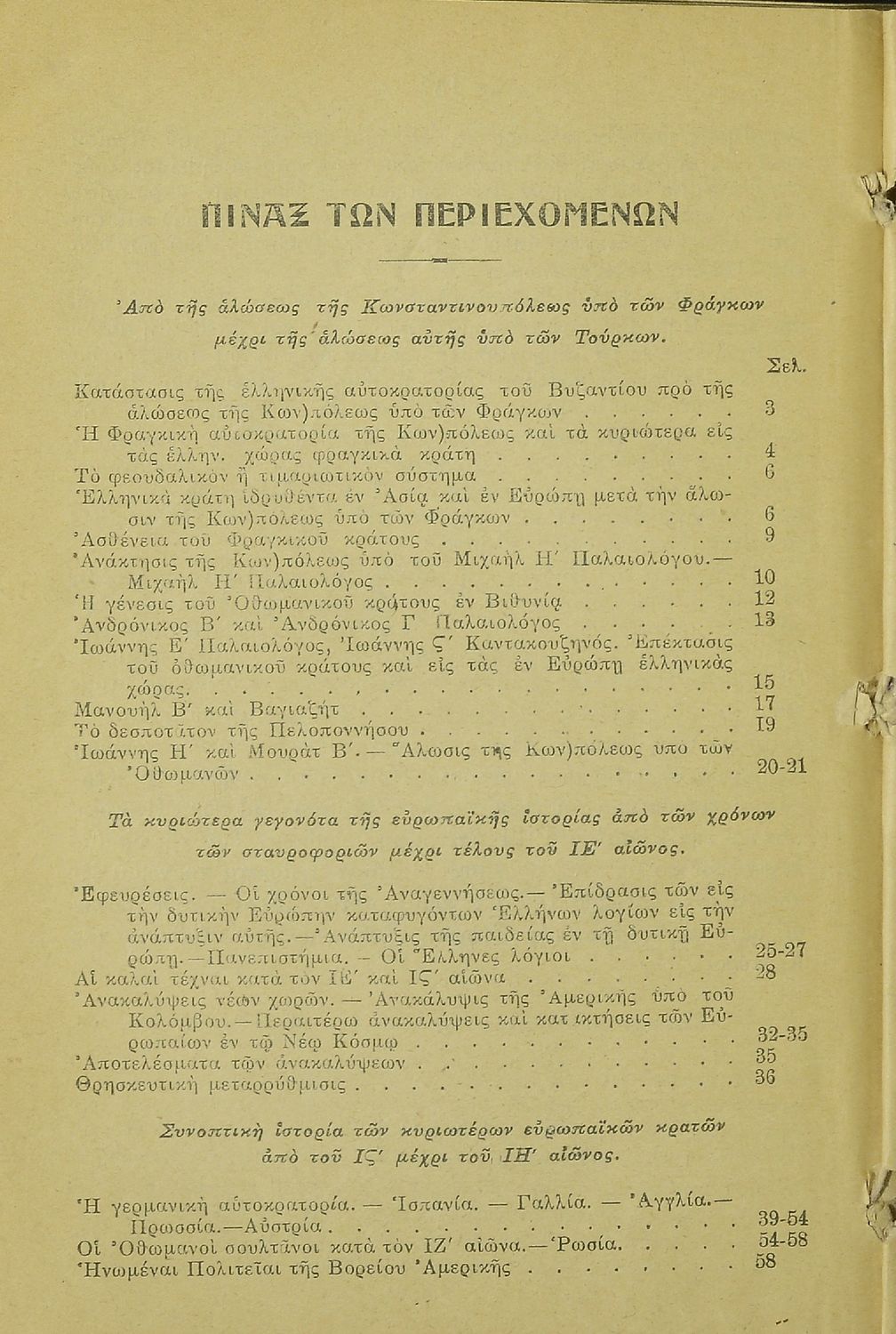 Ελληνική ιστορία από της Αλώσεως της Κωνσταντινουπόλεως υπό των Φράγκων μέχρι των καθ' ημάς χρόνων διά την τρίτην τάξιν των Ελληνικών Σχολείων και των αντιστοίχων των λοιπών σχολείων της Μέσης Εκπαιδεύσεως