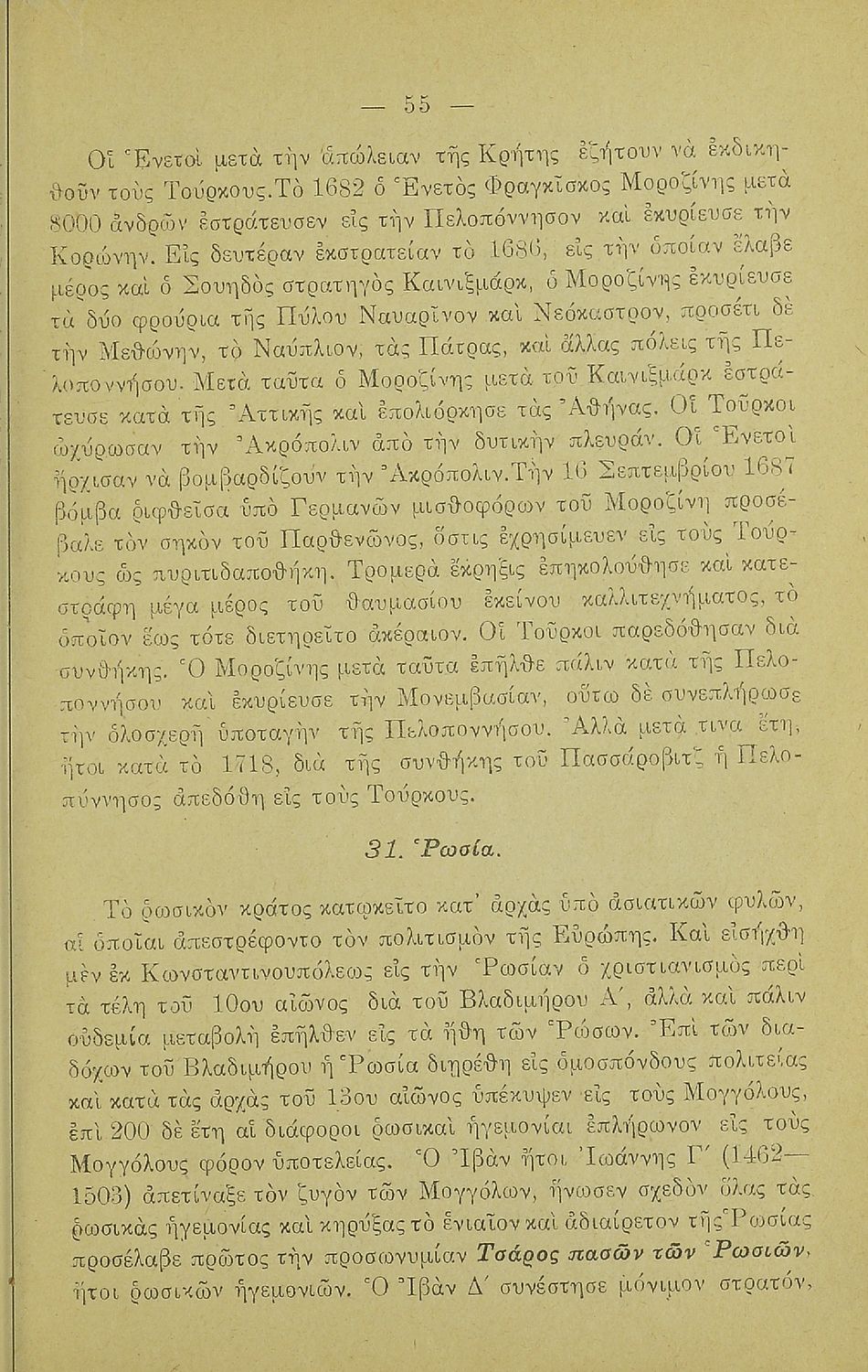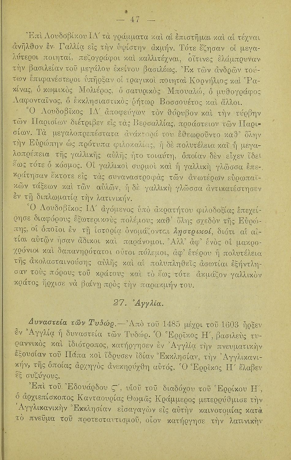 Βαθμίδα εκπαίδευσης: Δευτεροβάθμια Τάξη: Γ' Ελληνικού Σχολείου Μάθημα: Ιστορία Γλώσσα: Καθαρεύουσα Παρουσίαση περιεχομένου: Σχολικό εγχειρίδιο Ιστορίας Γ' Ελληνικού Σχολείου που περιλαμβάνει τα γεγονότα από την άλωση της Κωνσταντινούπολης από τους Φράγκους μέχρι και τους Βαλκανικούς Πολέμους και τον Α΄ Παγκόσμιο Πόλεμο. |