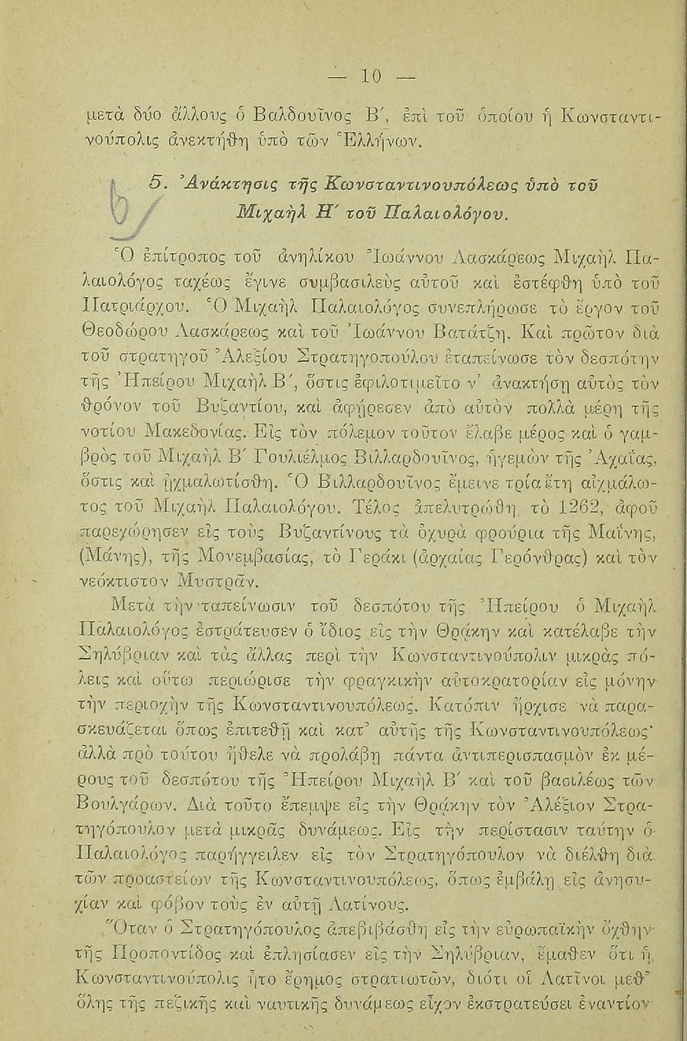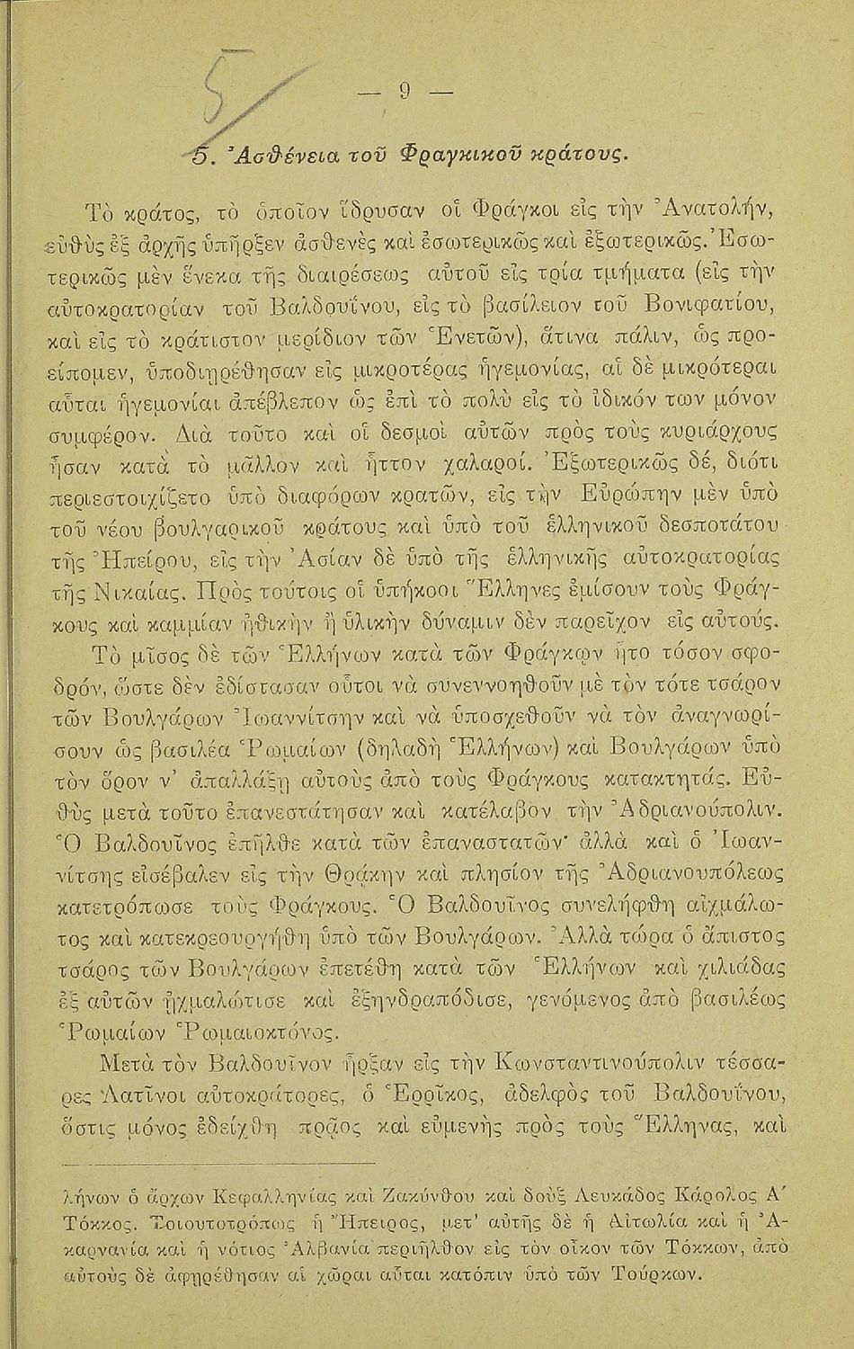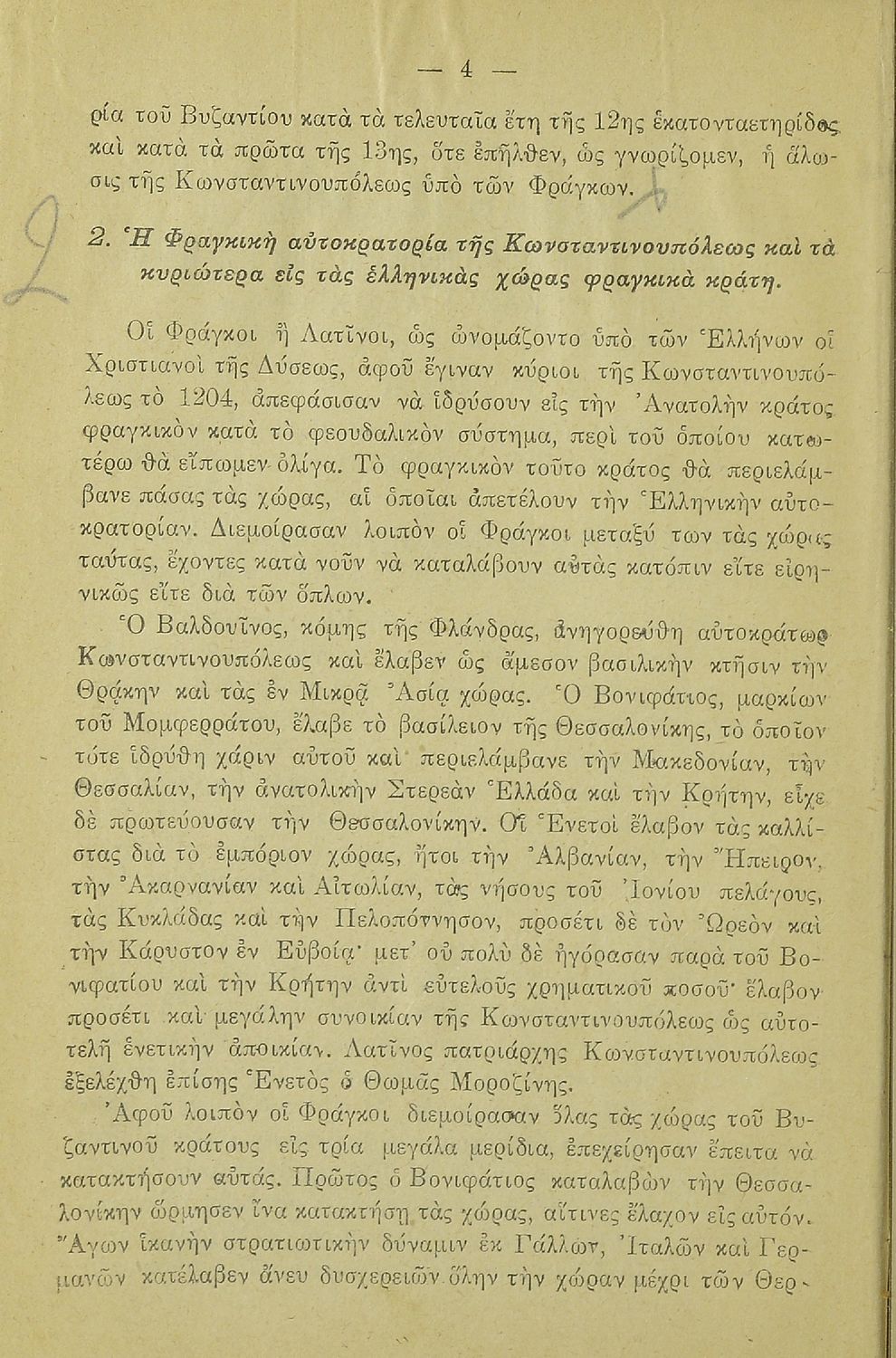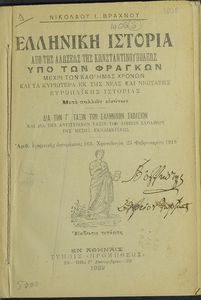 Βαθμίδα εκπαίδευσης: Δευτεροβάθμια Τάξη: Γ' Ελληνικού Σχολείου Μάθημα: Ιστορία Γλώσσα: Καθαρεύουσα Παρουσίαση περιεχομένου: Σχολικό εγχειρίδιο Ιστορίας Γ' Ελληνικού Σχολείου που περιλαμβάνει τα γεγονότα από την άλωση της Κωνσταντινούπολης από τους Φράγκους μέχρι και τους Βαλκανικούς Πολέμους και τον Α΄ Παγκόσμιο Πόλεμο. |