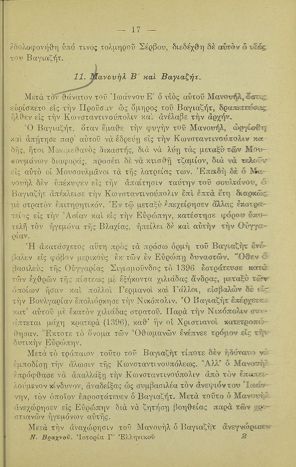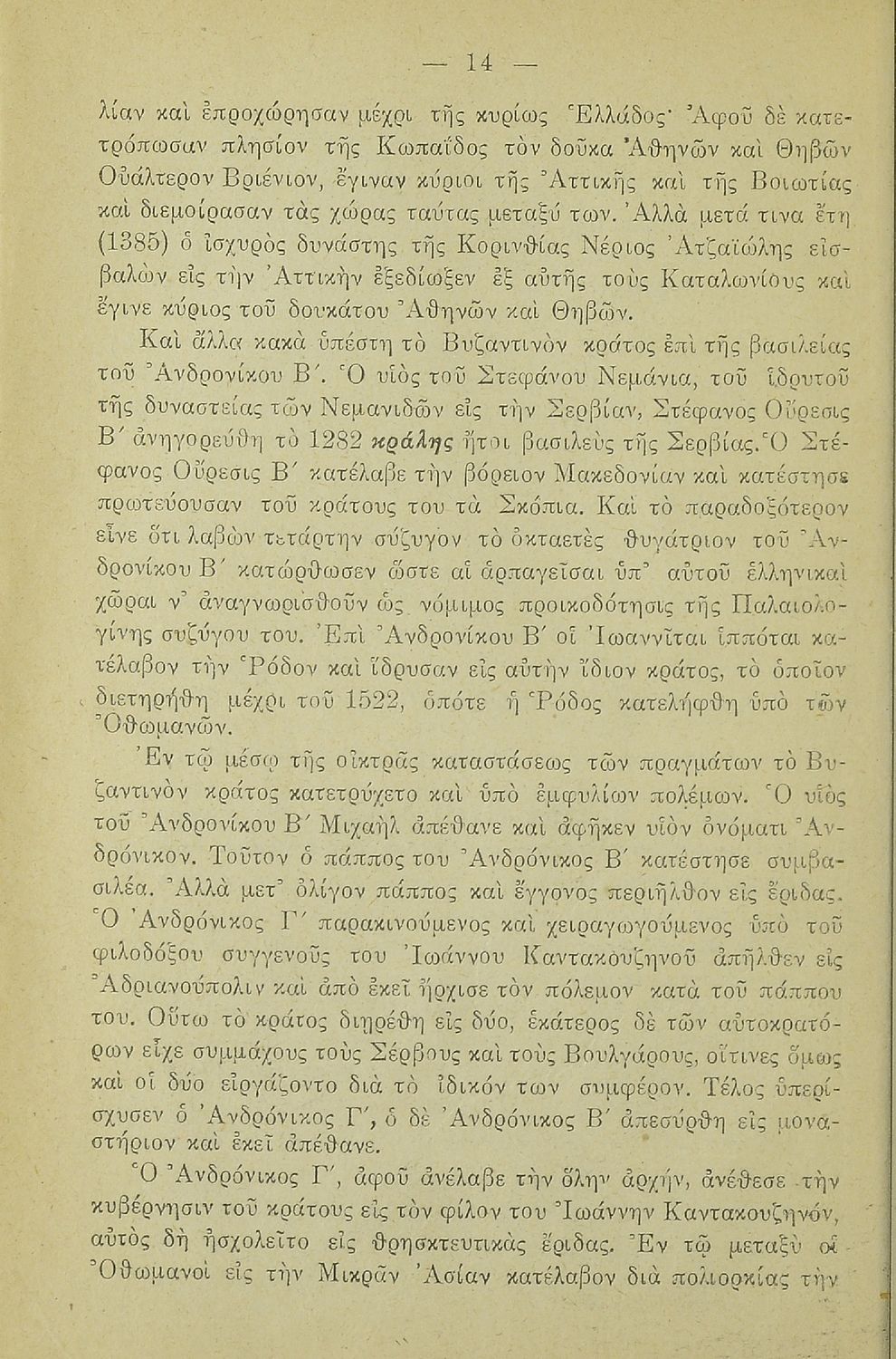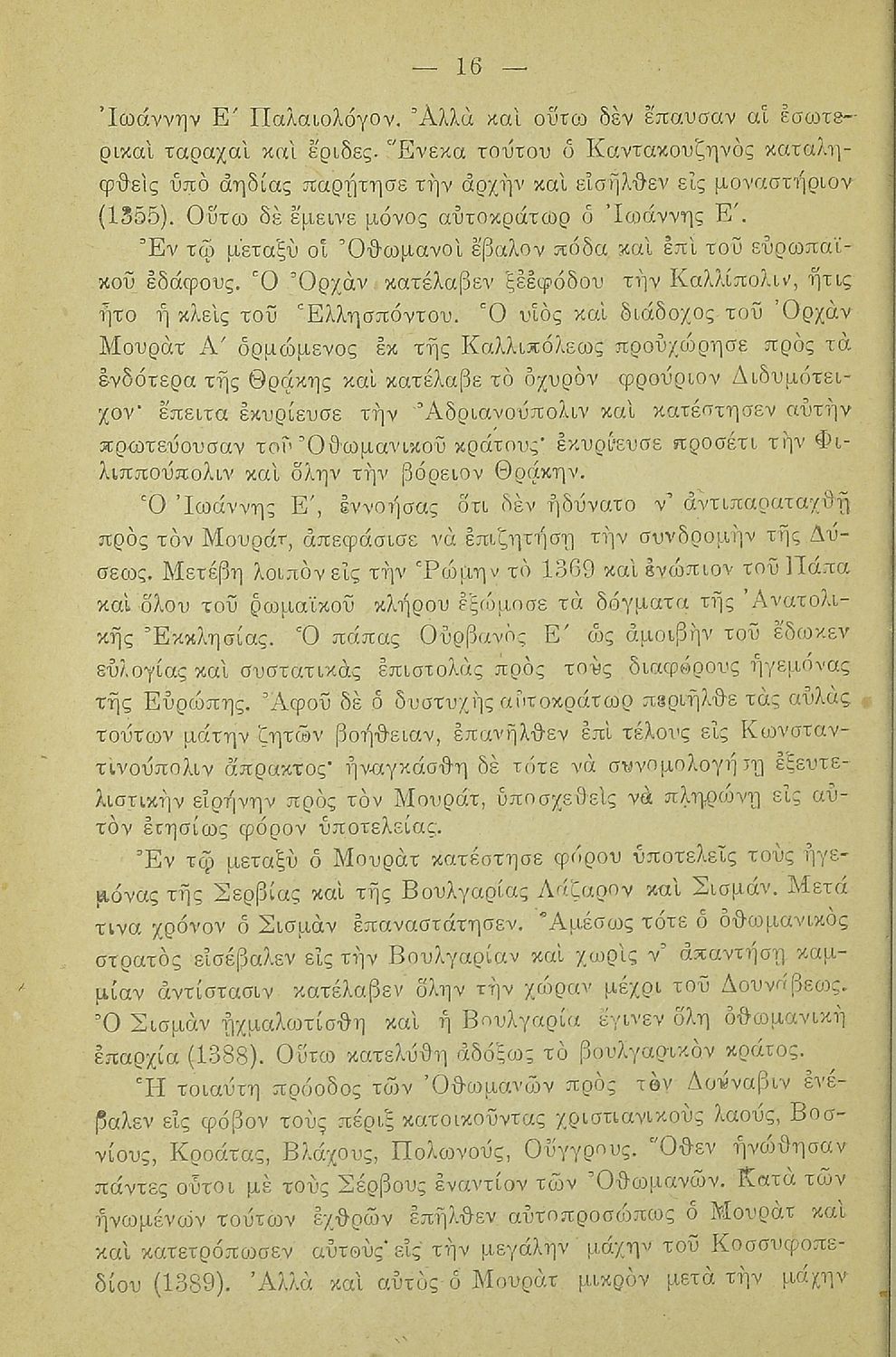 Βαθμίδα εκπαίδευσης: Δευτεροβάθμια Τάξη: Γ' Ελληνικού Σχολείου Μάθημα: Ιστορία Γλώσσα: Καθαρεύουσα Παρουσίαση περιεχομένου: Σχολικό εγχειρίδιο Ιστορίας Γ' Ελληνικού Σχολείου που περιλαμβάνει τα γεγονότα από την άλωση της Κωνσταντινούπολης από τους Φράγκους μέχρι και τους Βαλκανικούς Πολέμους και τον Α΄ Παγκόσμιο Πόλεμο. |
