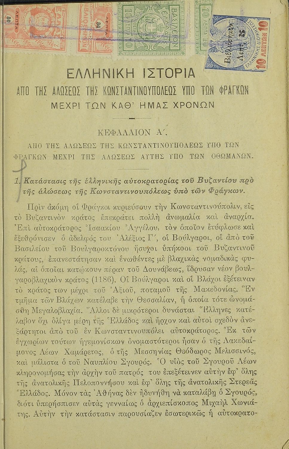 Σχολικό εγχειρίδιο Ιστορίας Γ' Ελληνικού Σχολείου που περιλαμβάνει τα γεγονότα από την άλωση της Κωνσταντινούπολης από τους Φράγκους μέχρι και τους Βαλκανικούς Πολέμους και τον Α΄ Παγκόσμιο Πόλεμο.