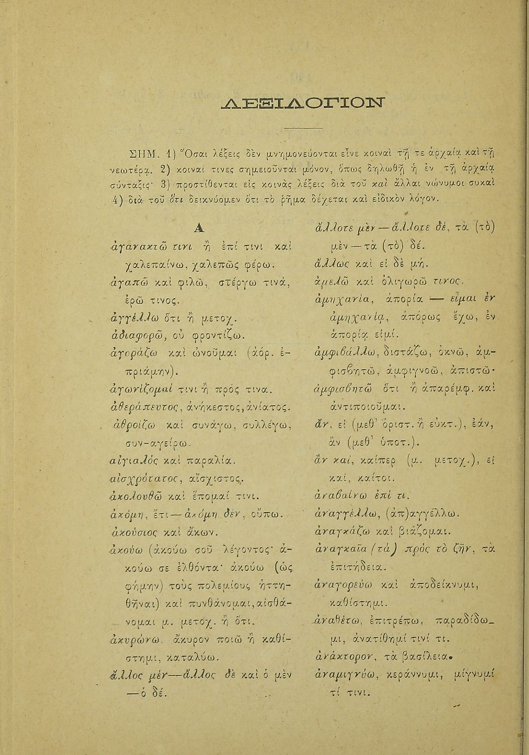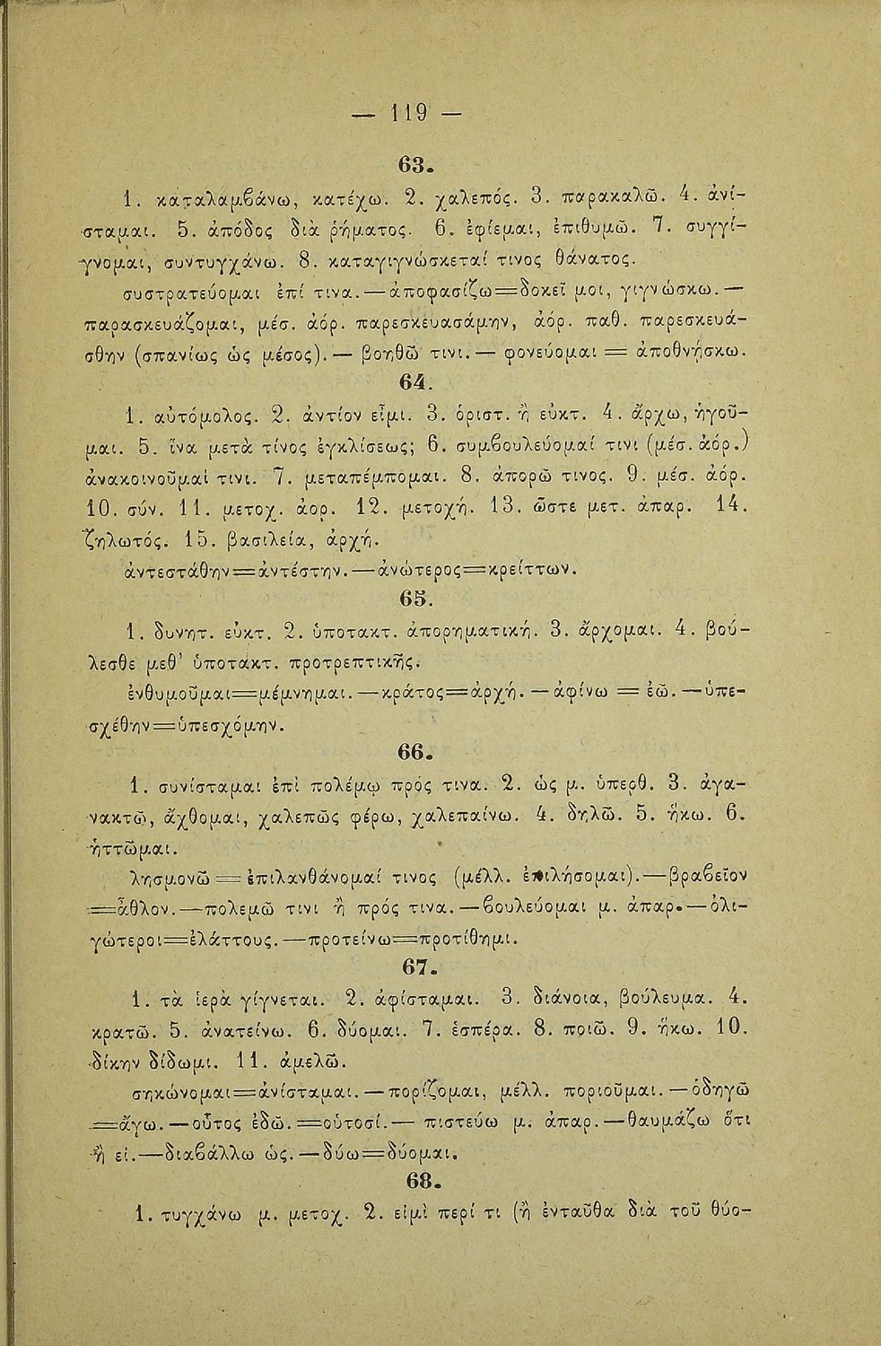 Σχολικό εγχειρίδιο Αρχαίων Ελληνικών για τις Β΄, Γ΄ και Δ΄ Γυμνασίου που περιλαμβάνει τους βασικούς κανόνες γραμματικής και συντακτικού και κείμενα για τη διδασκαλία τους.