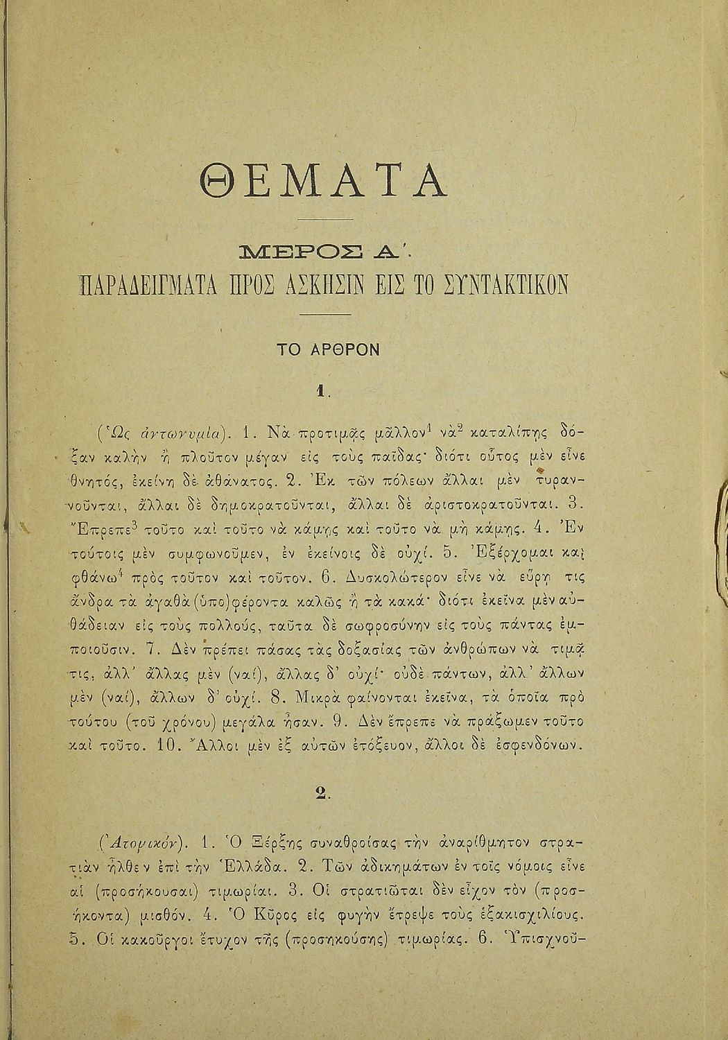 Θέματα εκ της νεωτέρας ελληνικής εις την αρχαίαν προς χρήσιν των μαθητών της Β΄, Γ΄, Δ΄ τάξεως των Γυμνασίων