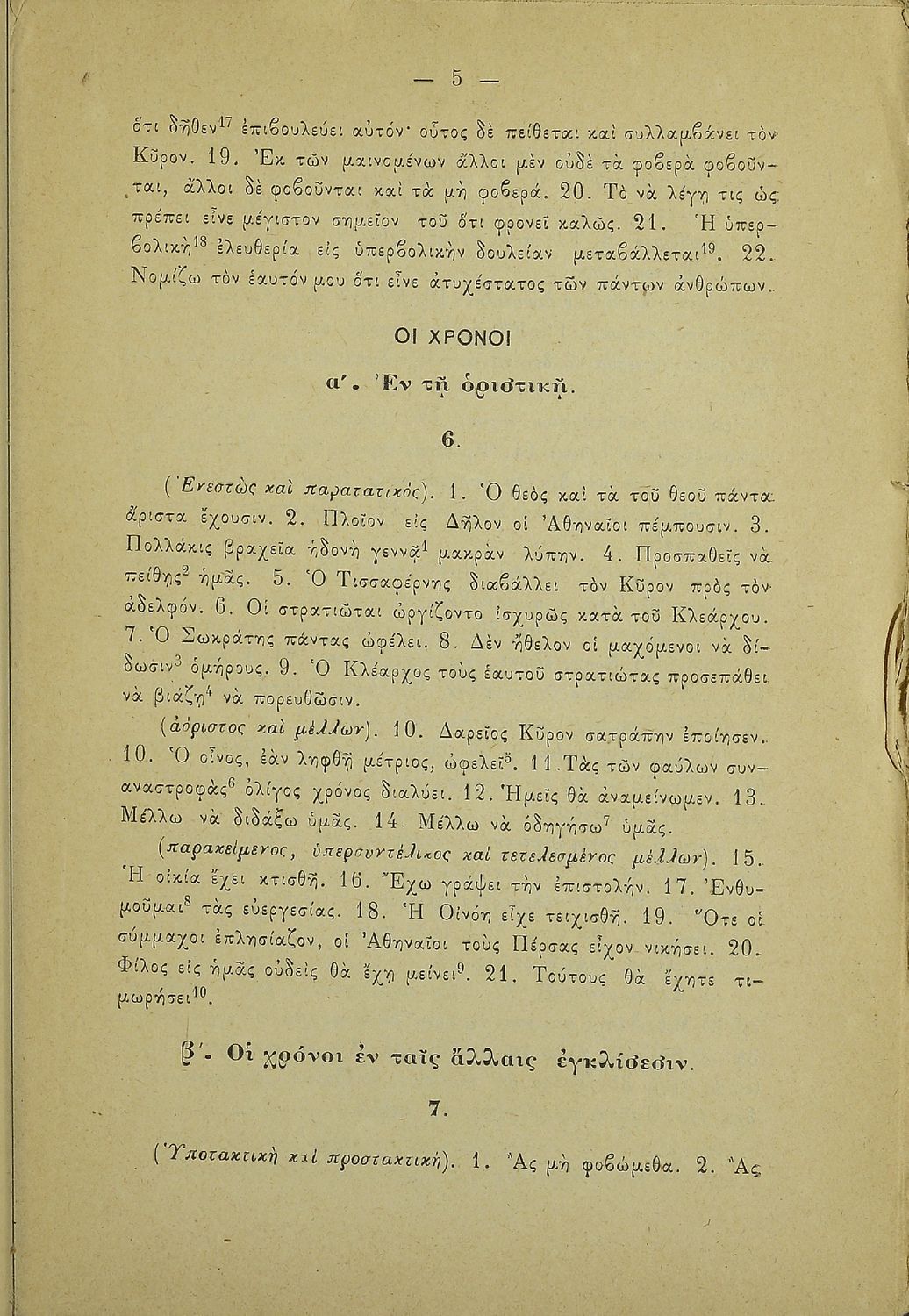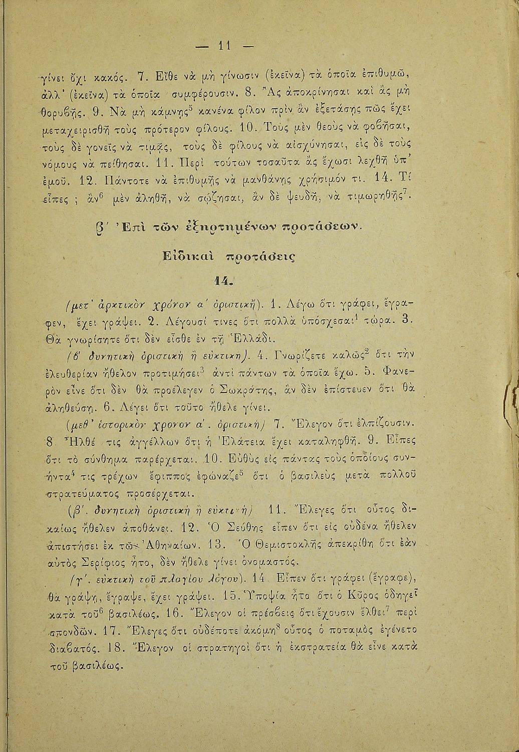 Σχολικό εγχειρίδιο Αρχαίων Ελληνικών για τις Β΄, Γ΄ και Δ΄ Γυμνασίου που περιλαμβάνει τους βασικούς κανόνες γραμματικής και συντακτικού και κείμενα για τη διδασκαλία τους.