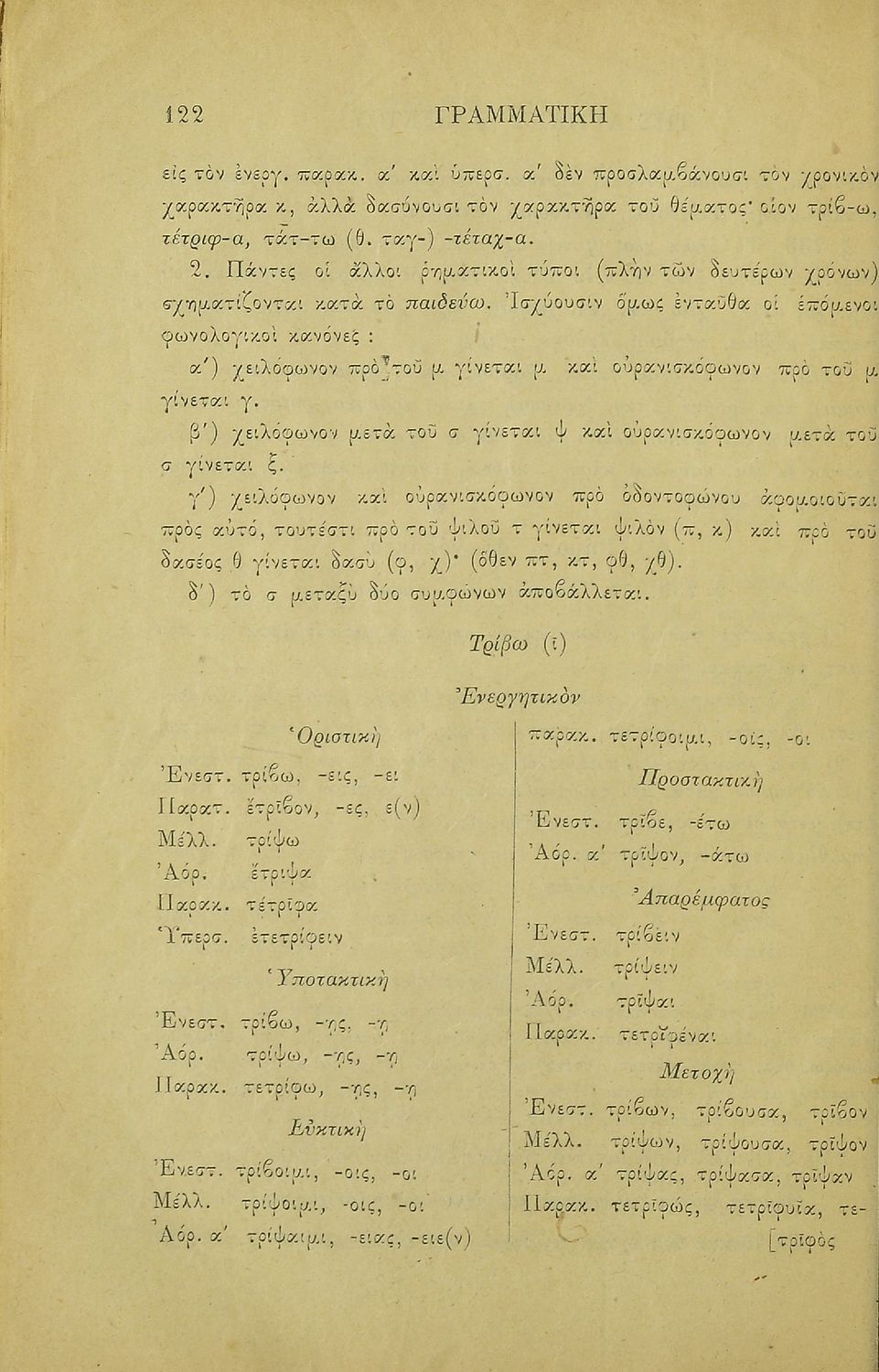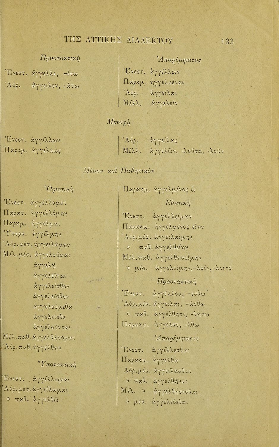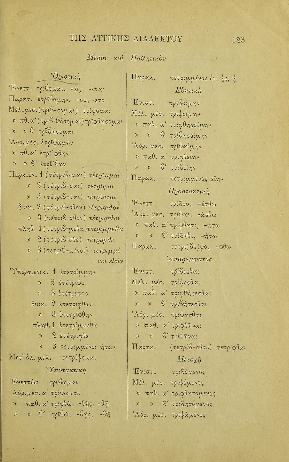 Σχολικό εγχειρίδιο Αρχαίων Ελληνικών για τα Ελληνικά Σχολεία και Παρθεναγωγεία που περιλαμβάνει κανόνες της γραμματικής της αρχαίας ελληνικής και είναι χωρισμένη στο φθογγολογικό και στο τυπολογικό μέρος.