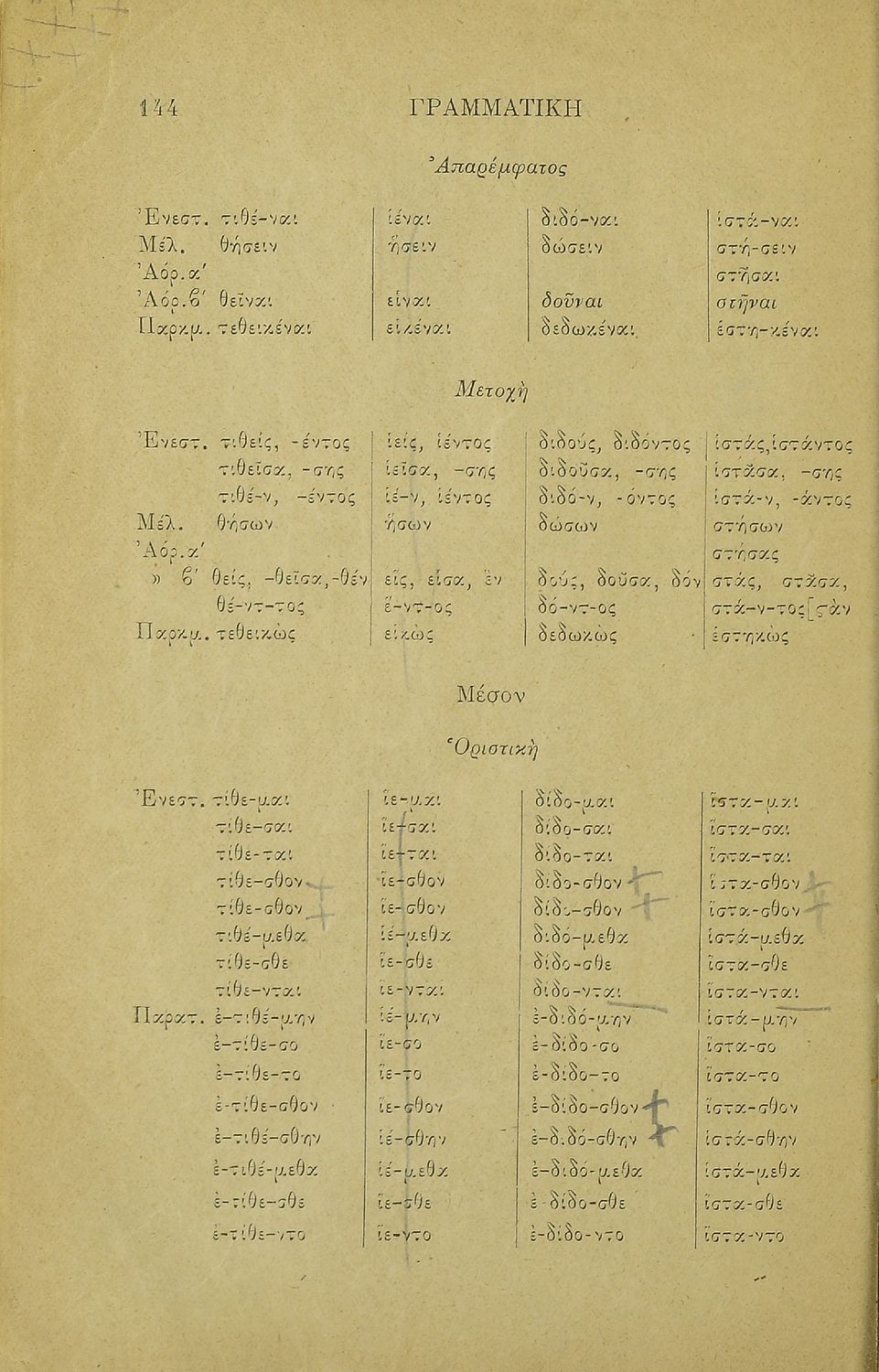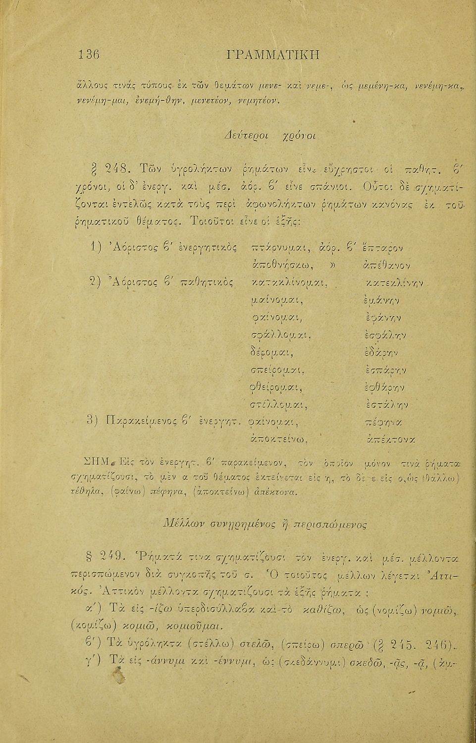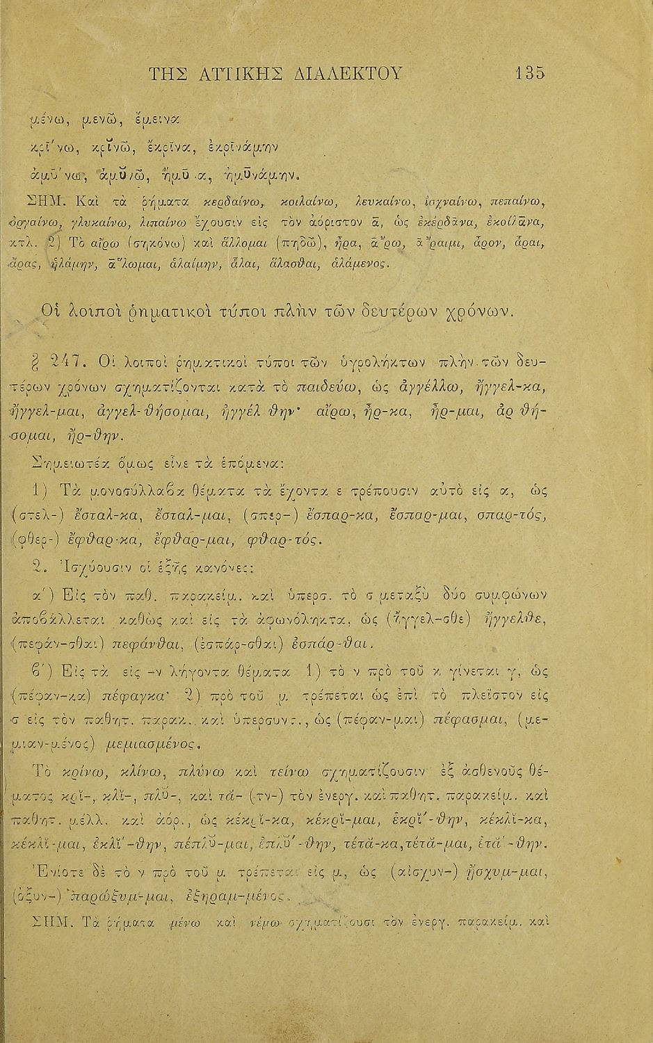 Σχολικό εγχειρίδιο Αρχαίων Ελληνικών για τα Ελληνικά Σχολεία και Παρθεναγωγεία που περιλαμβάνει κανόνες της γραμματικής της αρχαίας ελληνικής και είναι χωρισμένη στο φθογγολογικό και στο τυπολογικό μέρος.