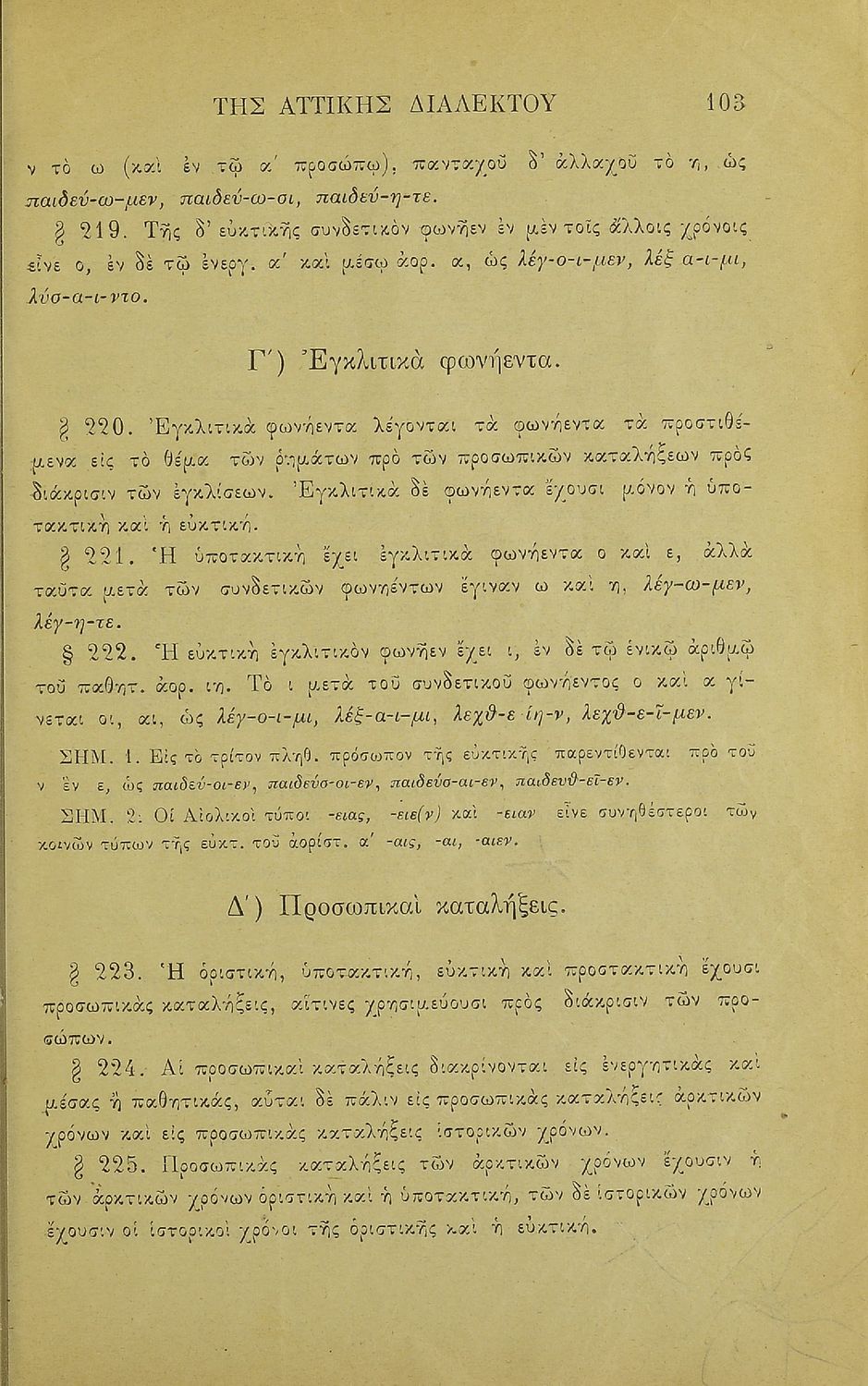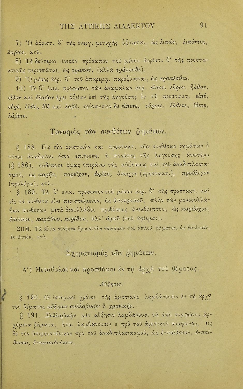 Σχολικό εγχειρίδιο Αρχαίων Ελληνικών για τα Ελληνικά Σχολεία, Παρθεναγωγεία και Γυμνάσια που περιέχει τους κανόνες γραμματικής και είναι χωρισμένο σε φθογγολογικό, τυπολογικό και ετυμολογικό μέρος.