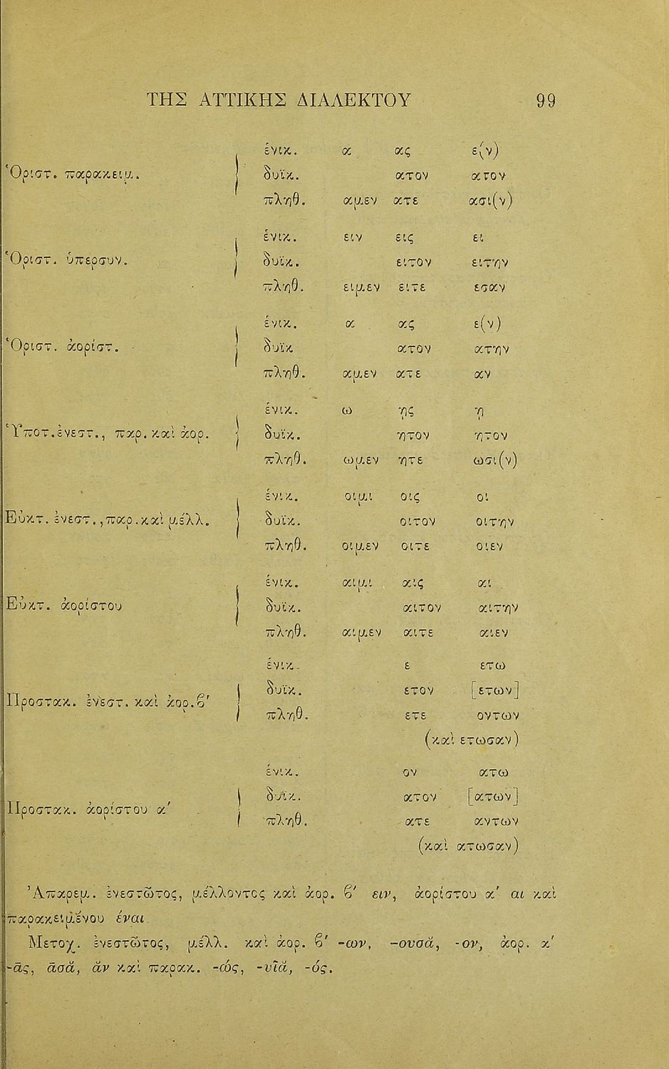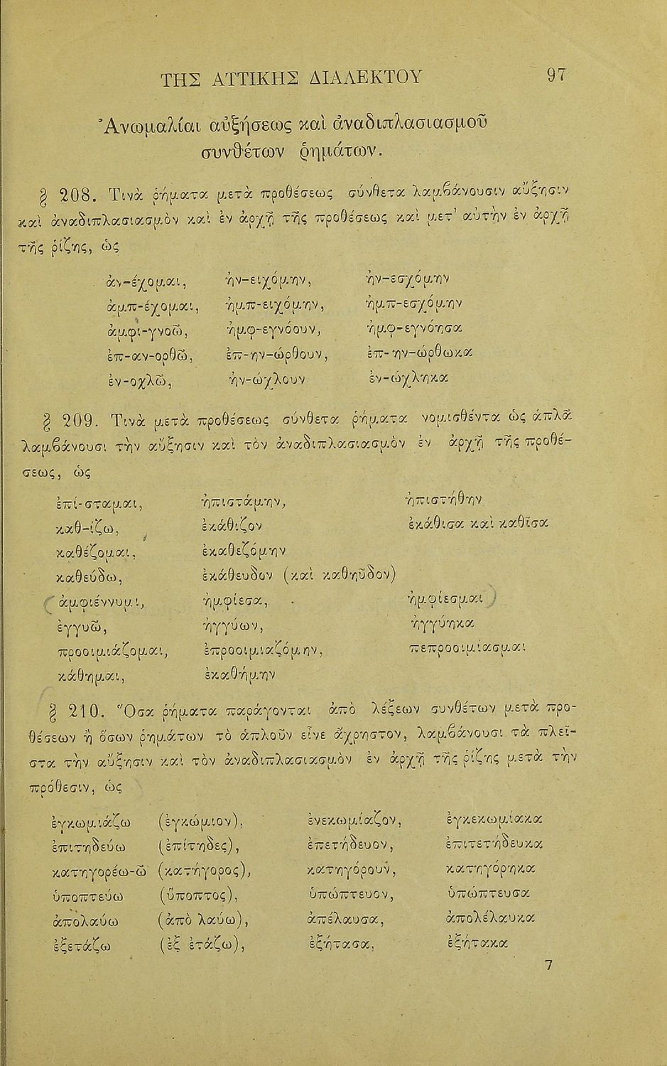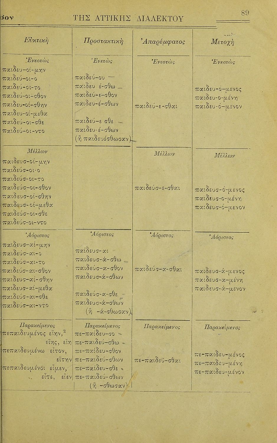 Μαθητικό βοήθημα Αρχαίων Ελληνικών για τα Γυμνάσια, Παρθεναγωγεία και Ελληνικά σχολεία το οποίο περιέχει κατάλογο ανωμάλων ρημάτων της Αττικής διαλέκτου.