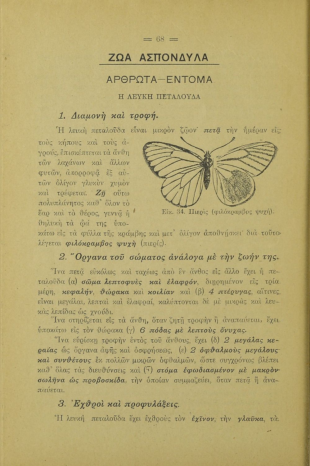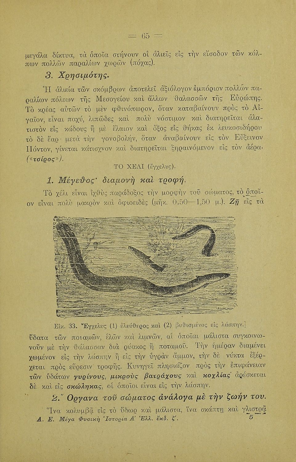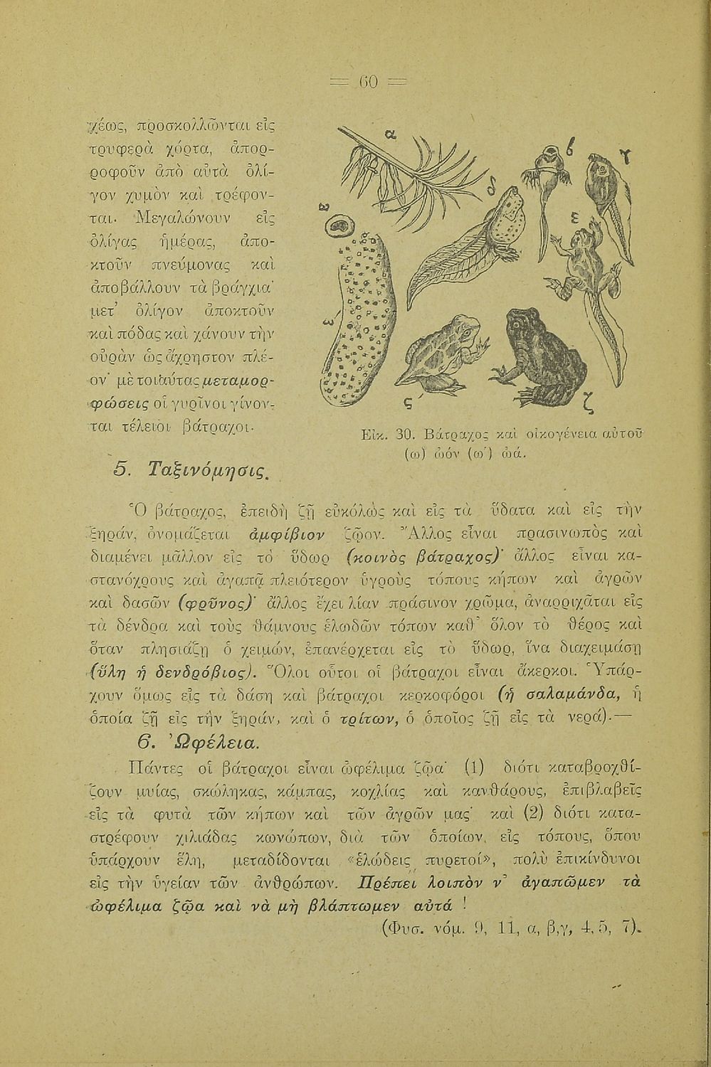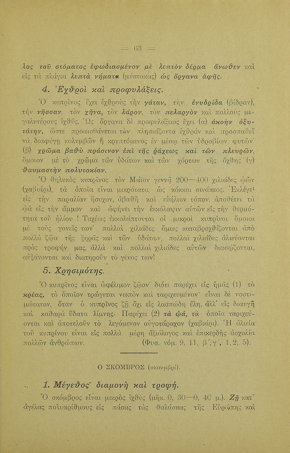 Σχολικό εγχειρίδιο Γεωγραφίας για την Α΄ Ελληνικών Σχολείων. Βιβλίο Φυσικής Ιστορίας με ζώα και φυτά που αναφέρονται οι χρήσεις τους, οι εχθροί και οι προφυλάξεις.