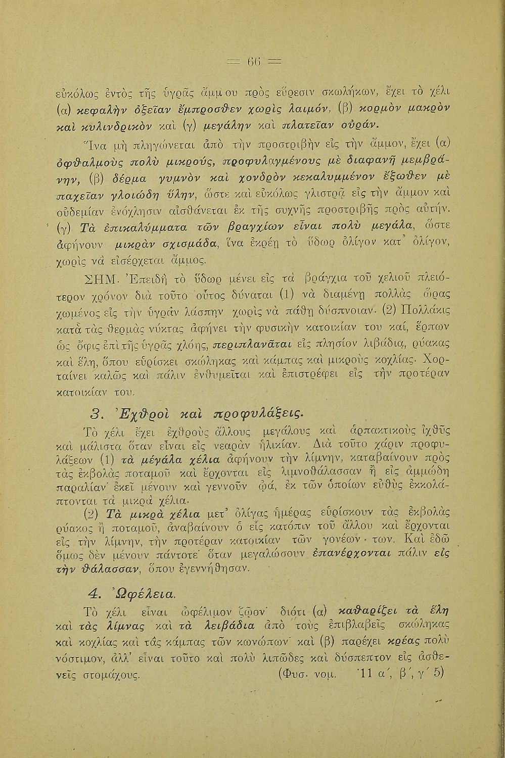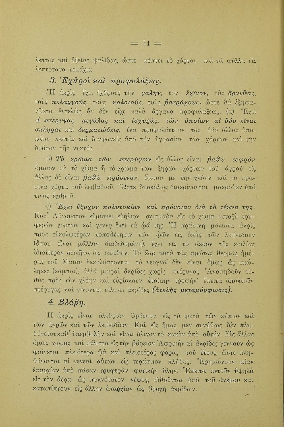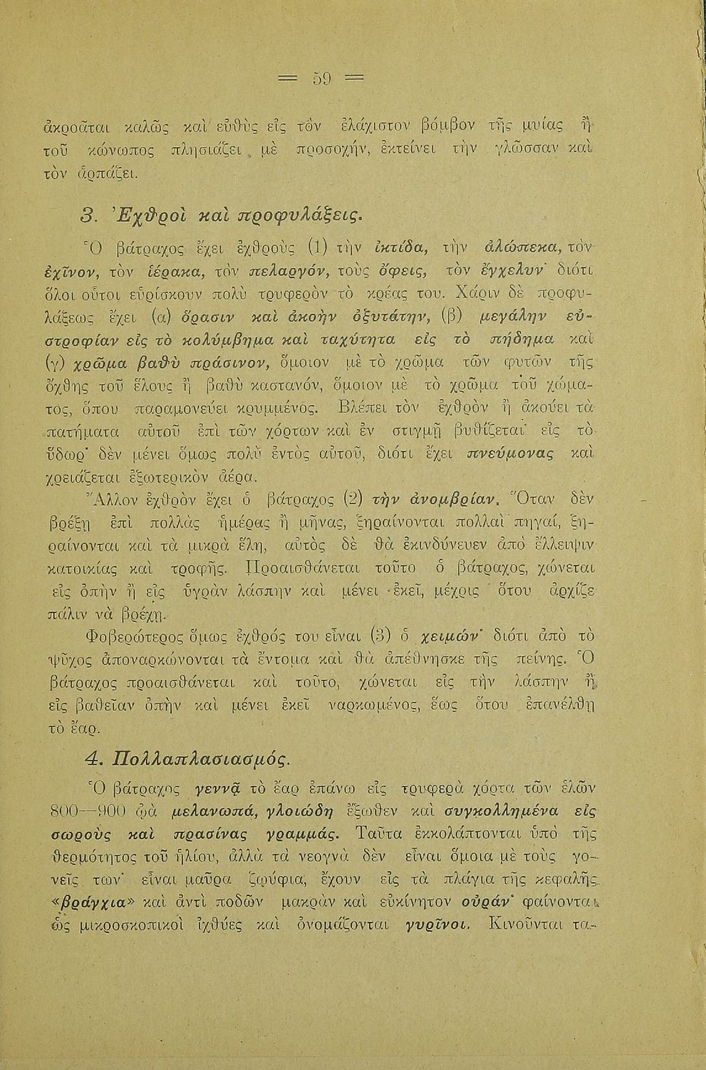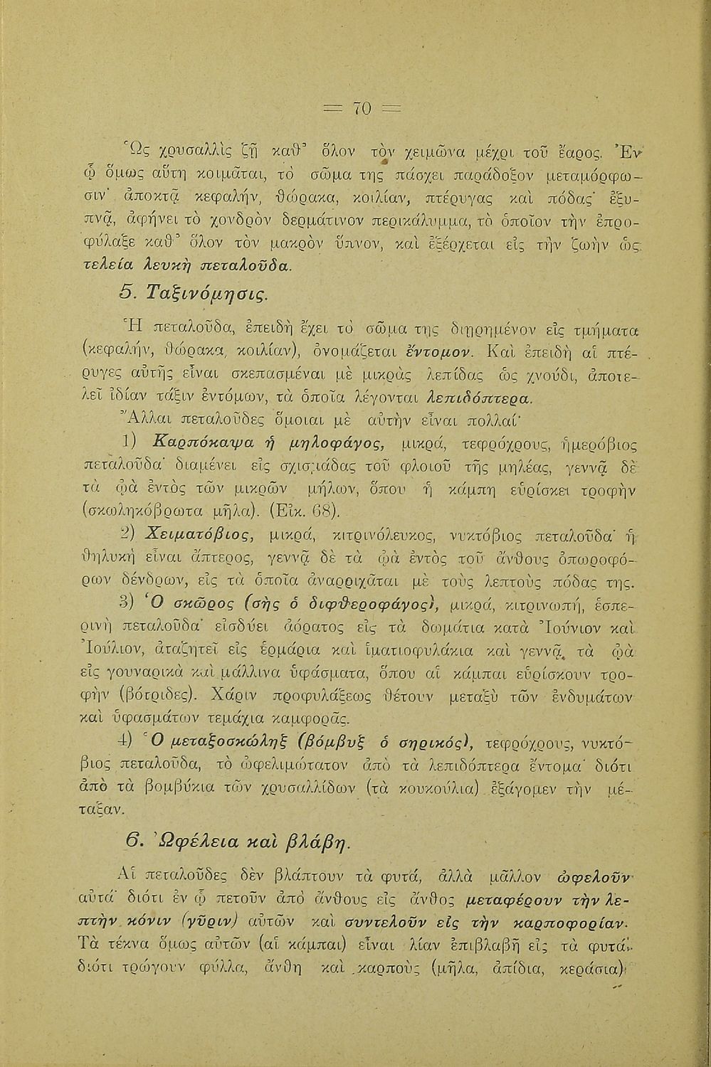 Σχολικό εγχειρίδιο Γεωγραφίας για την Α΄ Ελληνικών Σχολείων. Βιβλίο Φυσικής Ιστορίας με ζώα και φυτά που αναφέρονται οι χρήσεις τους, οι εχθροί και οι προφυλάξεις.