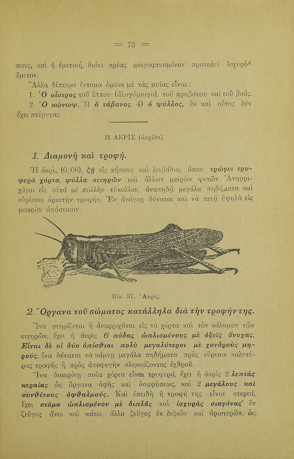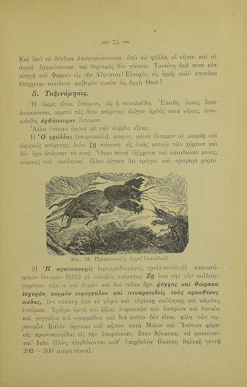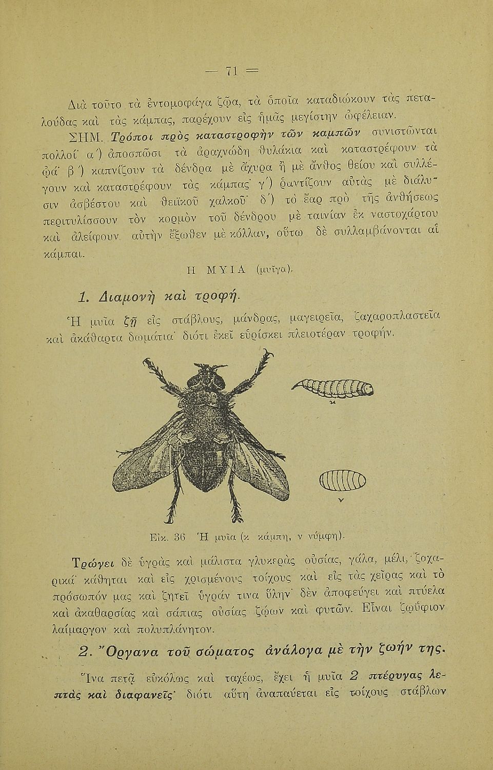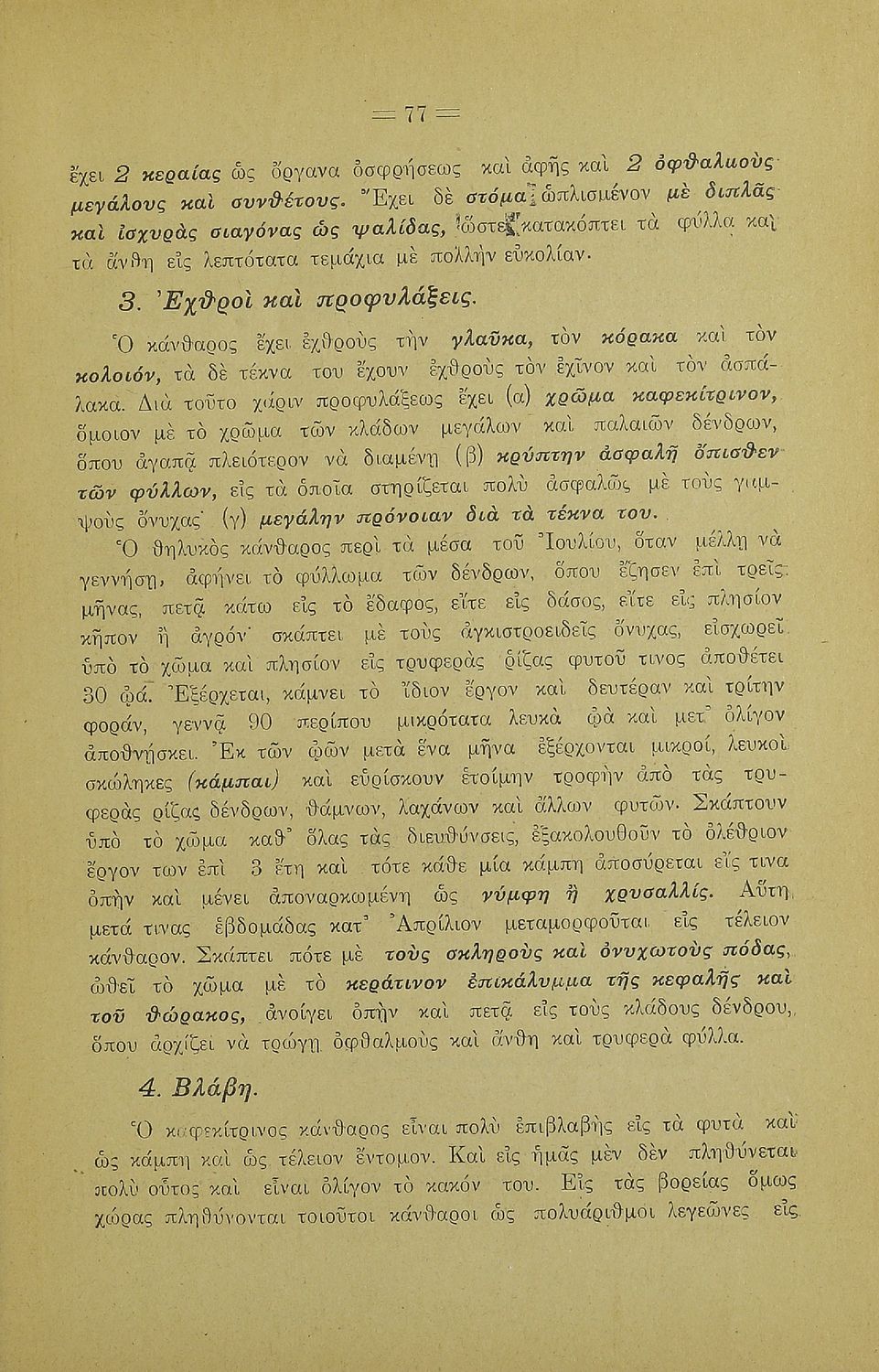 Σχολικό εγχειρίδιο Γεωγραφίας για την Α΄ Ελληνικών Σχολείων. Βιβλίο Φυσικής Ιστορίας με ζώα και φυτά που αναφέρονται οι χρήσεις τους, οι εχθροί και οι προφυλάξεις.