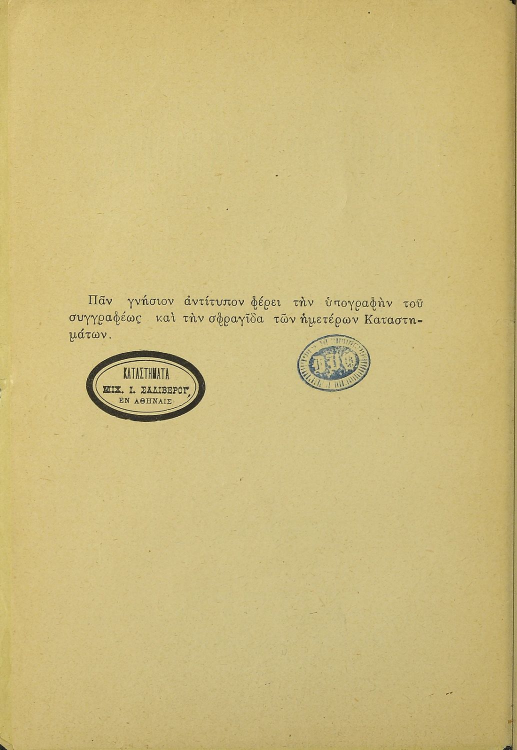 Εκδότης: Μιχαήλ Ι. Σαλίβερος Έτος έκδοσης: 1901 Τόπος έκδοσης: Αθήνα Έκδοση: 6η |