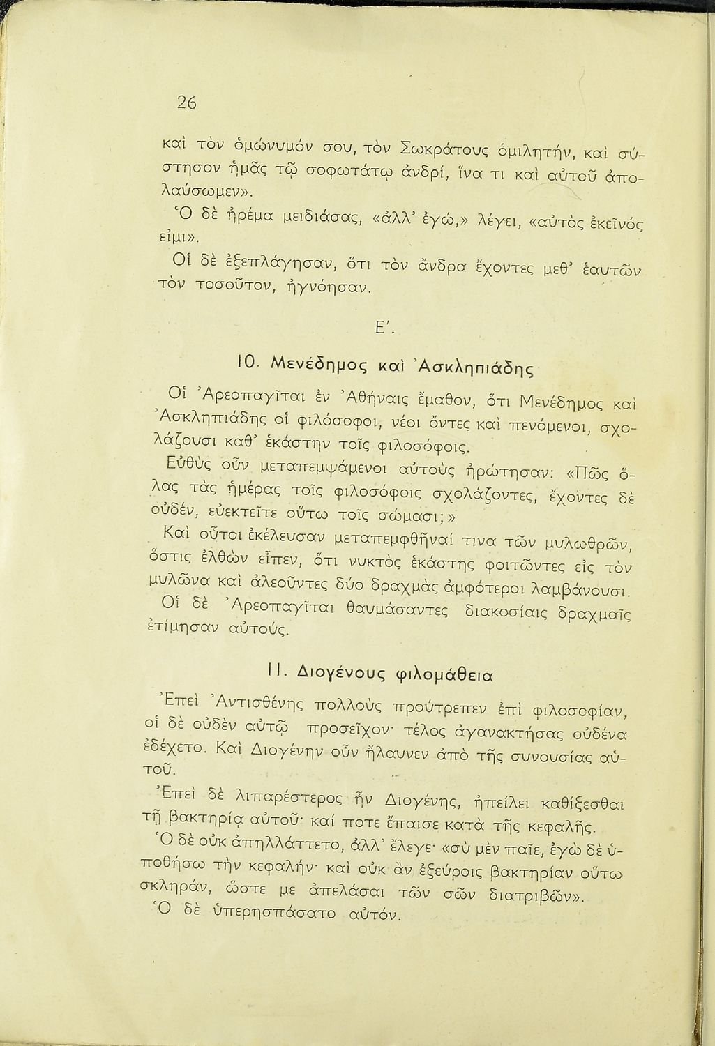 Σχολικό εγχειρίδιο Αρχαίων Ελληνικών Α΄ Γυμνασίου και Πρακτικού Λυκείου που περιλαμβάνει εισαγωγή στη ζωή και το έργο των Απολλόδωρου και Αιλιανού, αποσπάσματα από τη Βιβλιοθήκη του Απολλόδωρου και την Ποικίλη