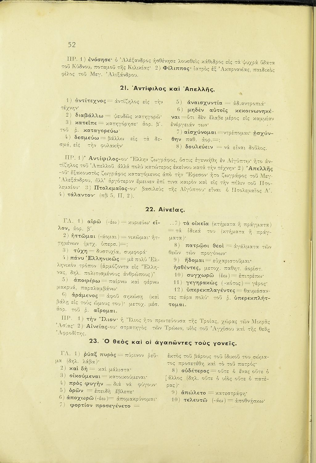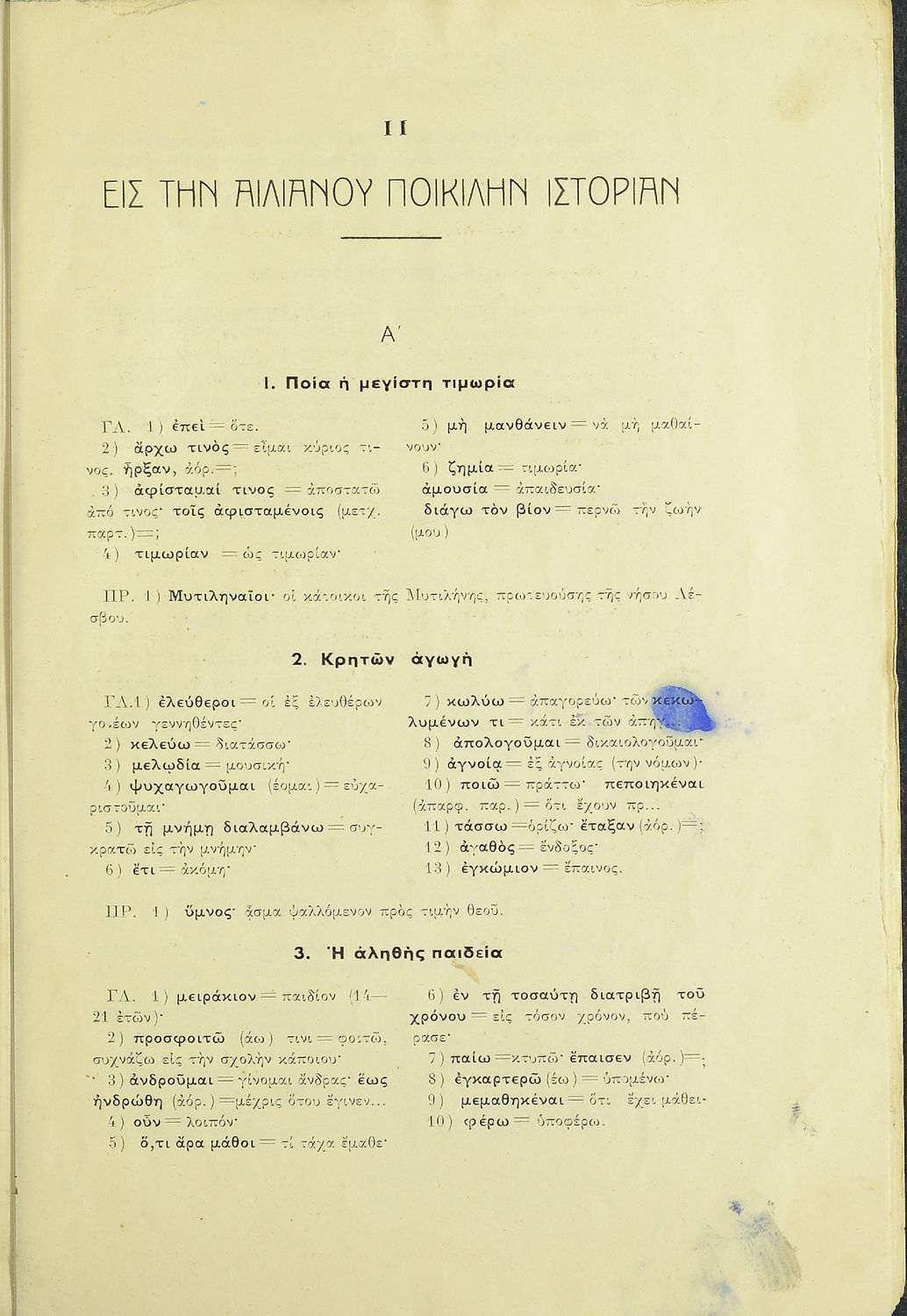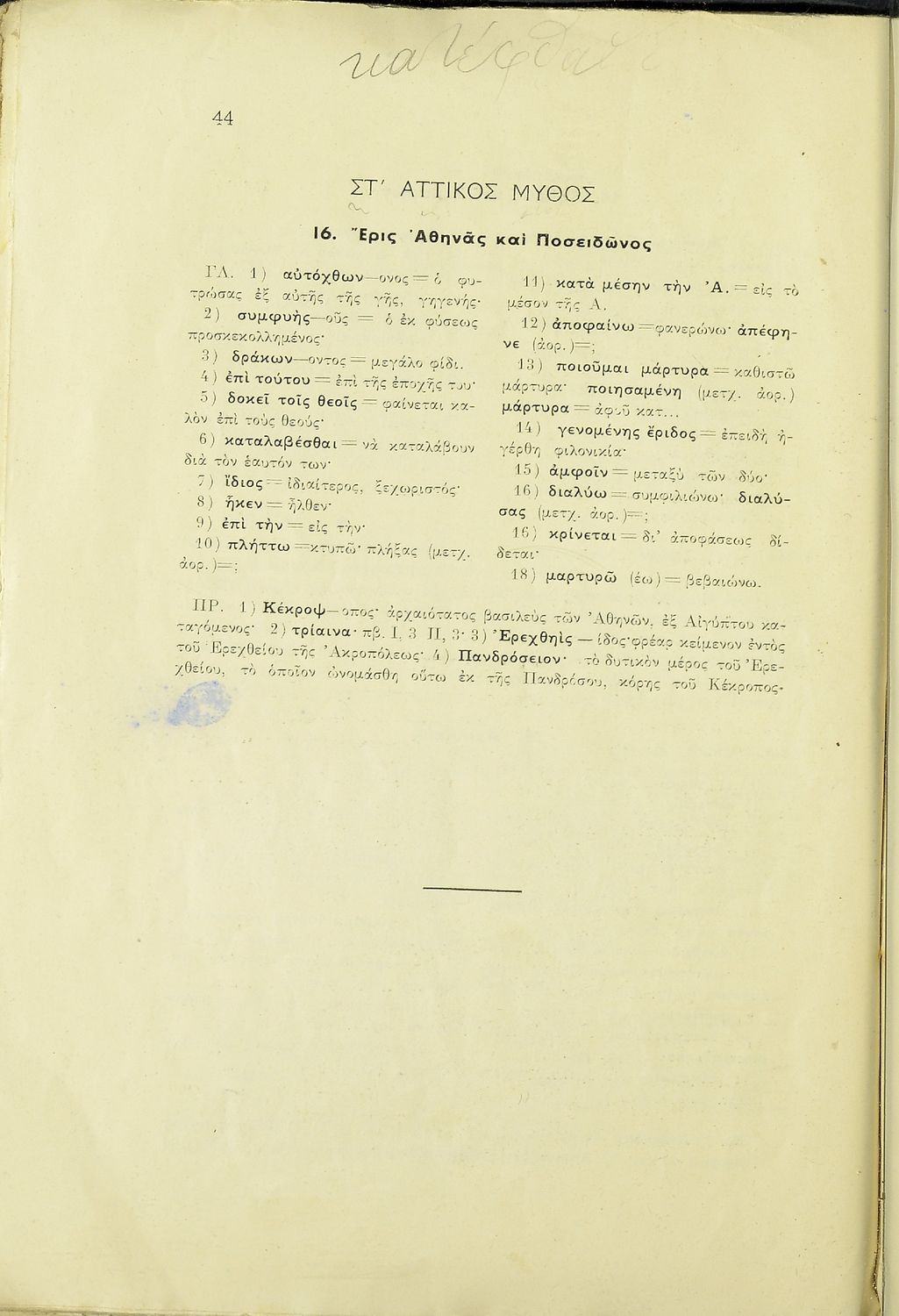 Βαθμίδα εκπαίδευσης: Δευτεροβάθμια Τάξη: Α' Γυμνασίου Μάθημα: Αρχαία Ελληνικά Γλώσσα: Καθαρεύουσα Παρουσίαση περιεχομένου: Σχολικό εγχειρίδιο Αρχαίων Ελληνικών Α΄ Γυμνασίου που περιλαμβάνει εισαγωγή στη ζωή και το έργο των Απολλόδωρου και Αιλιανού, αποσπάσματα από τη Βιβλιοθήκη του Απολλόδωρου και την Ποικίλη Ιστορία του Αιλιανού και ερμηνευτικές παρατηρήσεις και σχόλια. |